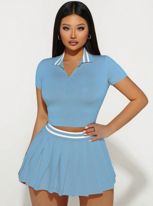 This Women's Summer Skirt & Turndown Collar Short-Sleeve Top Two-Piece Set Design Made Of High Quality polyester And Spandex Material. It Is Stretchy, Durable And Comfortable. It Come With The Top And Skirt Matching Set. Women’s Skirt Suit Sets Is a Great Alternative To One Piece Outfit. It Can Either Be Worn Together Or Individually, So You Can Combine Them Endlessly. Grab Different Two Piece Skirt Set retail On Our Website a Women's Clothing Store Online At Really affordable price And Enjoy fast delivery worldwide.