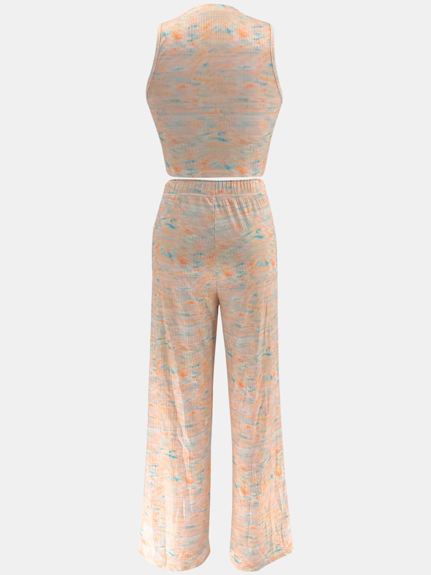 This Women's Summer Sleeveless Printed Tank Top Wide-Leg Trousers Two-Piece Set Design Made Of High Quality polyester And Spandex Material. It Is Stretchy, Durable And Comfortable. It Is a Must-Have Outfit For All Seasons. retail Two Piece Pant Sets Can Solve Your cloth selection Troubles. Explore More 2 Piece Pants Set On BamBam retail Women Clothing Online Store.