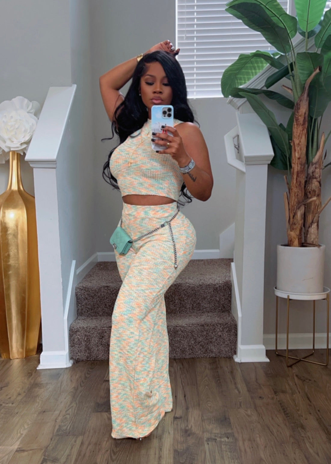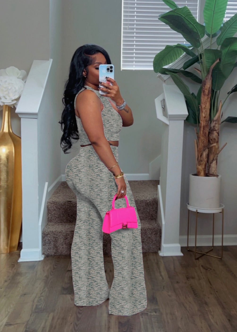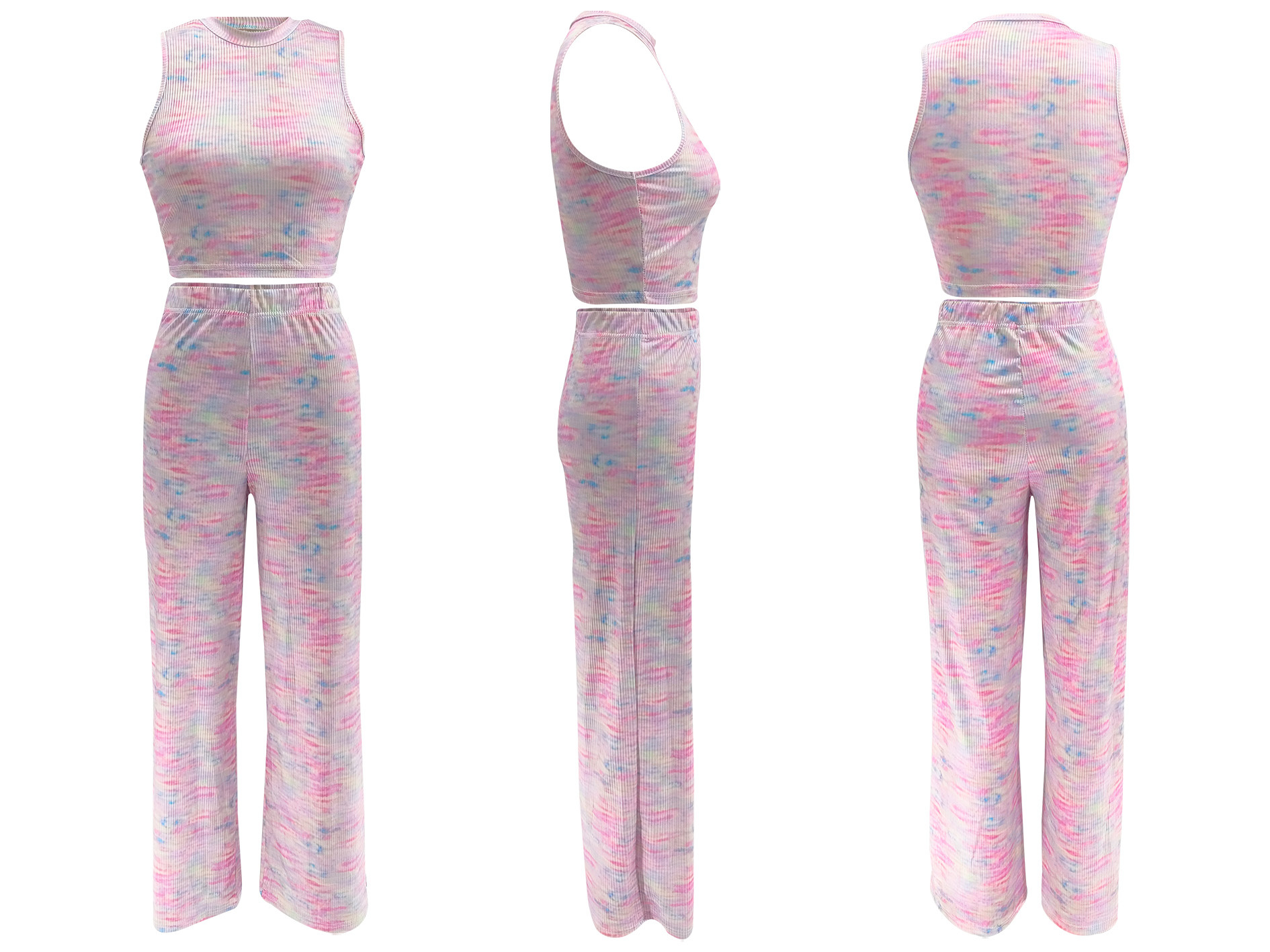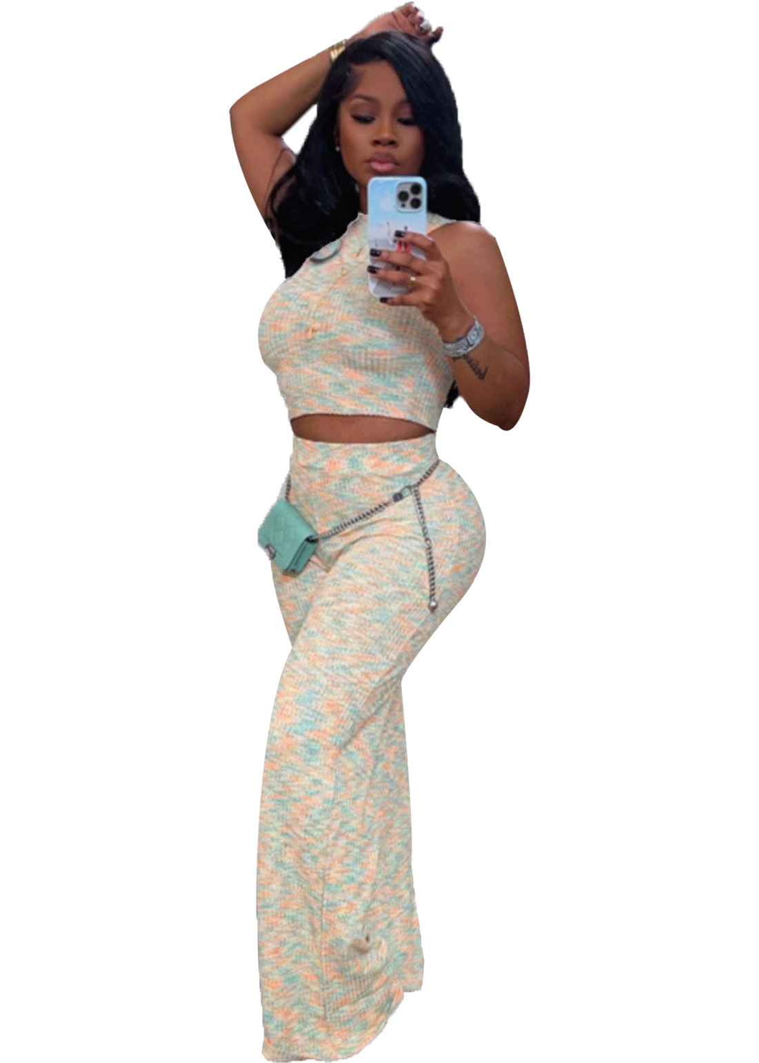 This Women's Summer Sleeveless Printed Wide-Leg Two-Piece Trousers Set Design Made Of High Quality polyester And Spandex Material. It Is Stretchy, Durable And Comfortable. It Is a Must-Have Outfit For All Seasons. retail Two Piece Pant Sets Can Solve Your cloth selection Troubles. Explore More 2 Piece Pants Set On BamBam retail Women Clothing Online Store.