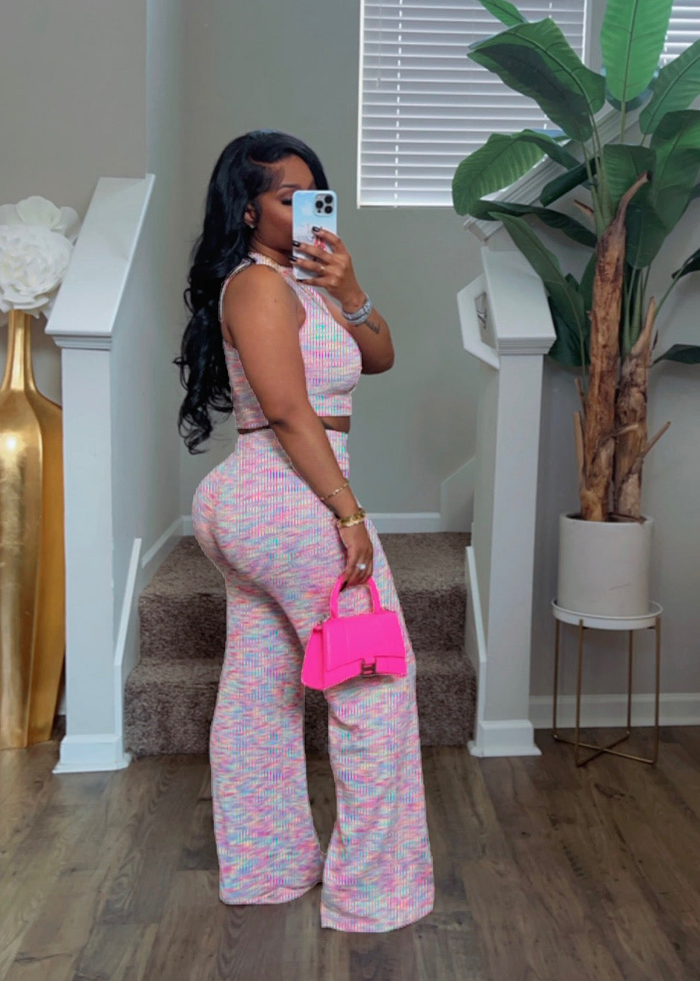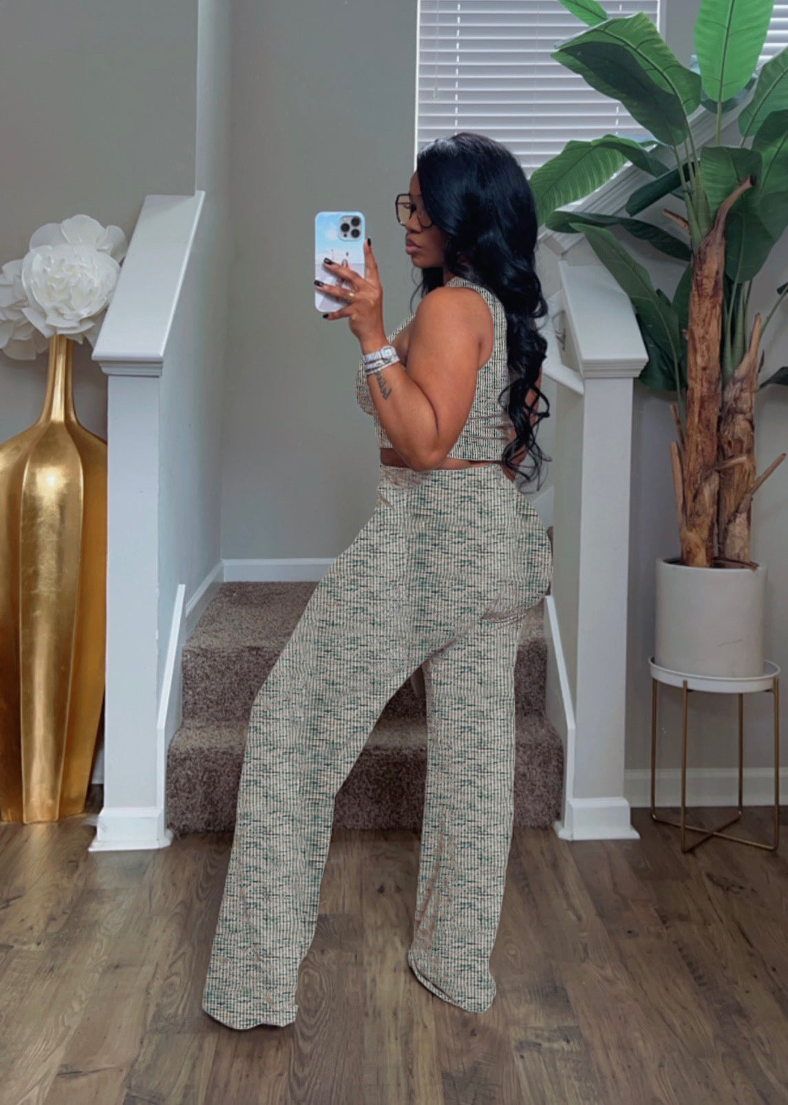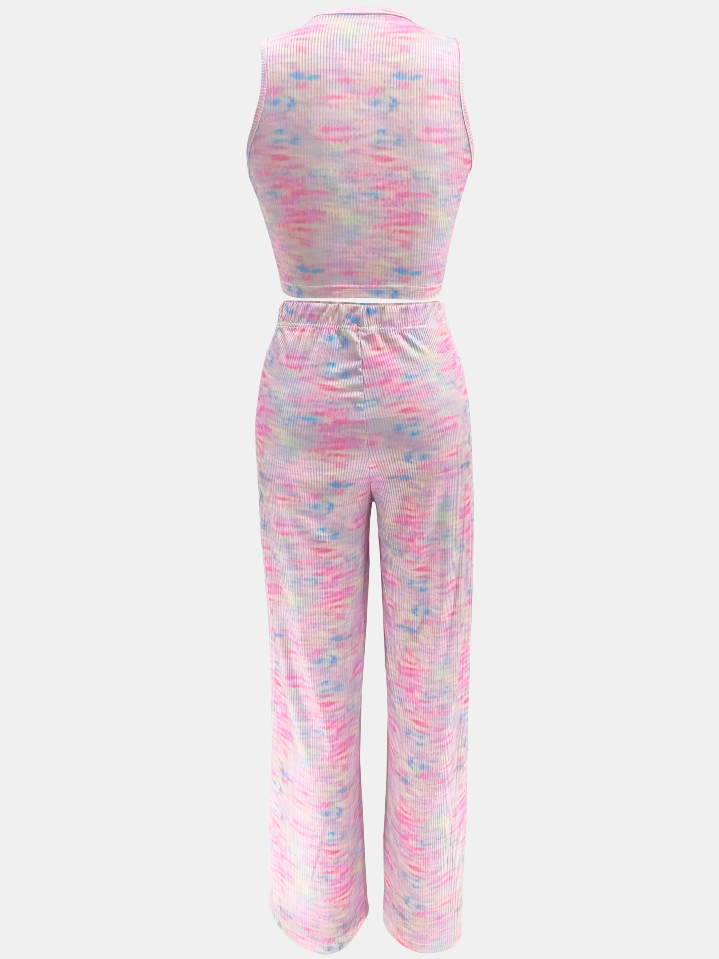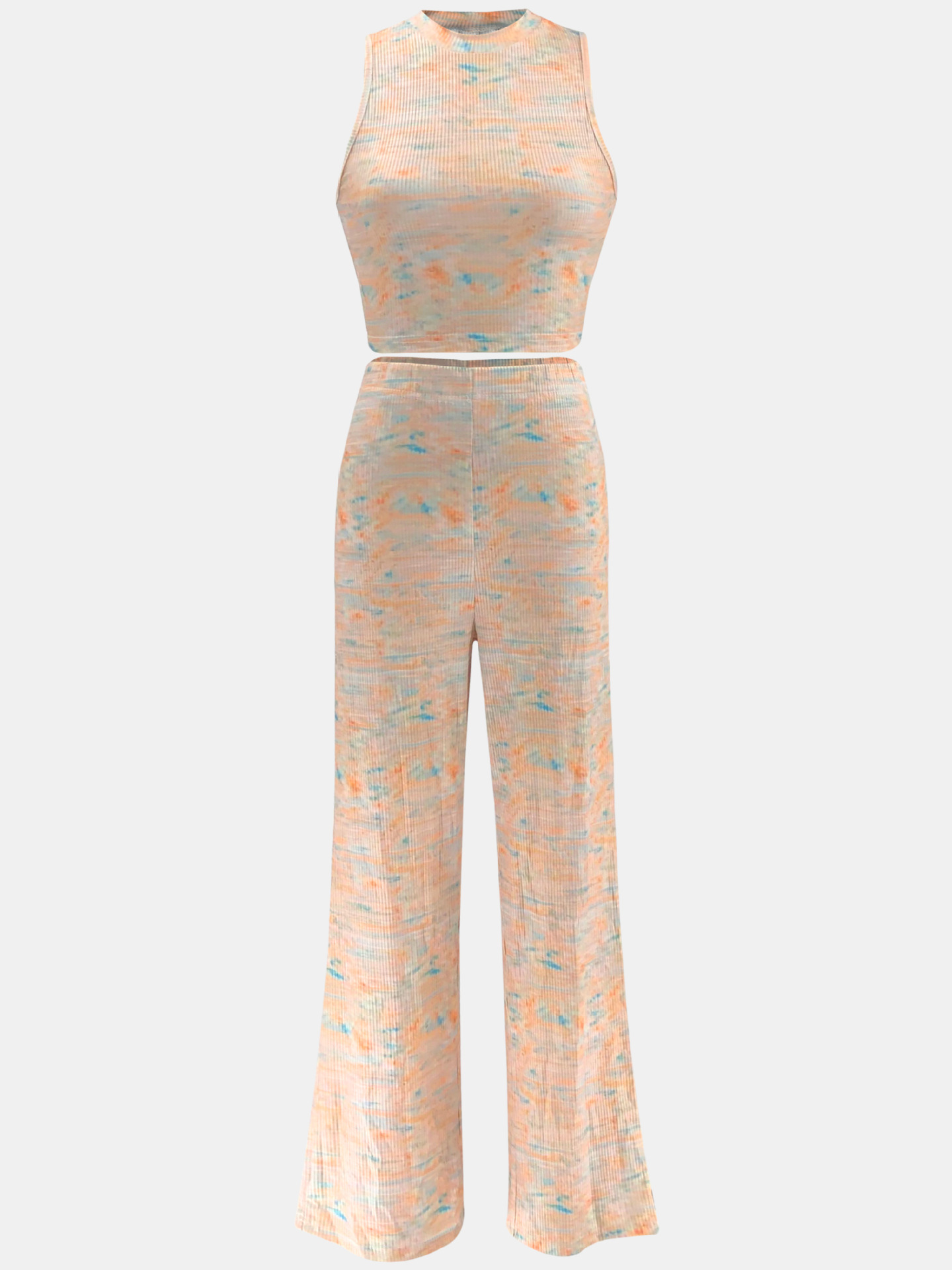 This Women's Summer Sleeveless Printed Wide-Leg Two-Piece Trousers Set Design Made Of High Quality polyester And Spandex Material. It Is Stretchy, Durable And Comfortable. It Is a Must-Have Outfit For All Seasons. retail Two Piece Pant Sets Can Solve Your cloth selection Troubles. Explore More 2 Piece Pants Set On BamBam retail Women Clothing Online Store.
