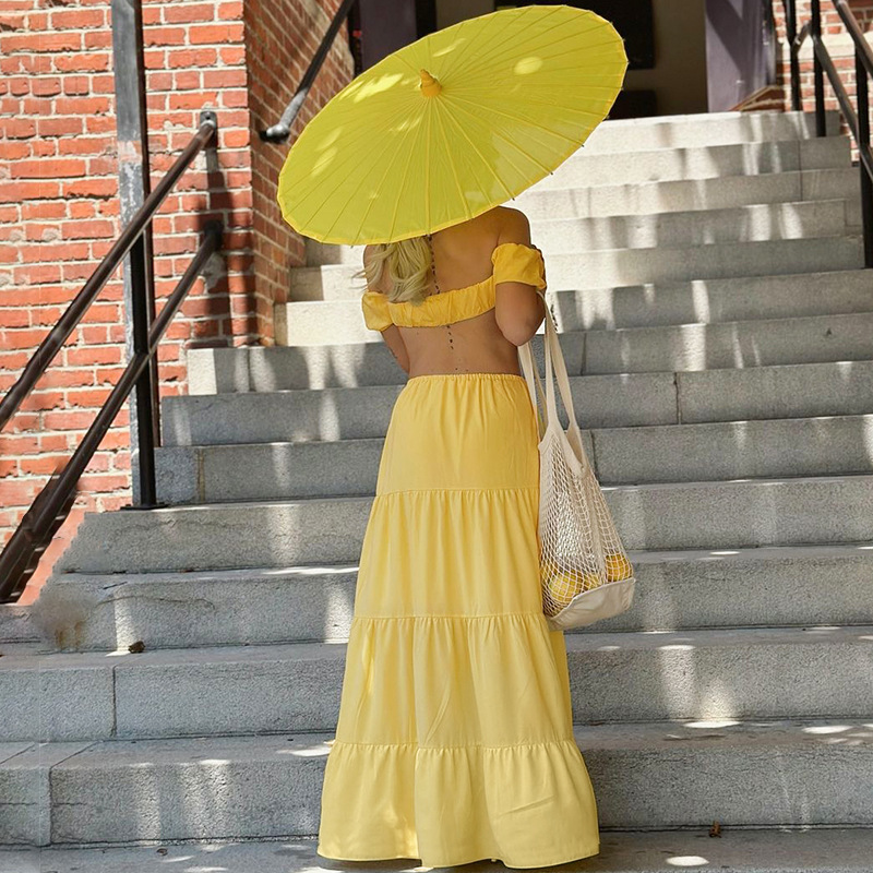 This Women's Summer Solid Color Sexy Short-Sleeve Off Shoulder Pleated Ruffle Skirt Set Design Made Of High Quality polyester And Spandex Material. It Is Stretchy, Durable And Comfortable. It Come With The Top And Skirt Matching Set. Women’s Skirt Suit Sets Is a Great Alternative To One Piece Outfit. It Can Either Be Worn Together Or Individually, So You Can Combine Them Endlessly. Grab Different Two Piece Skirt Set retail On Our Website a Women's Clothing Store Online At Really affordable price And Enjoy fast delivery worldwide.