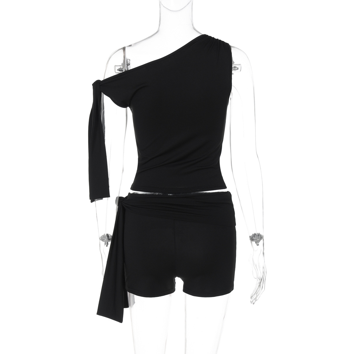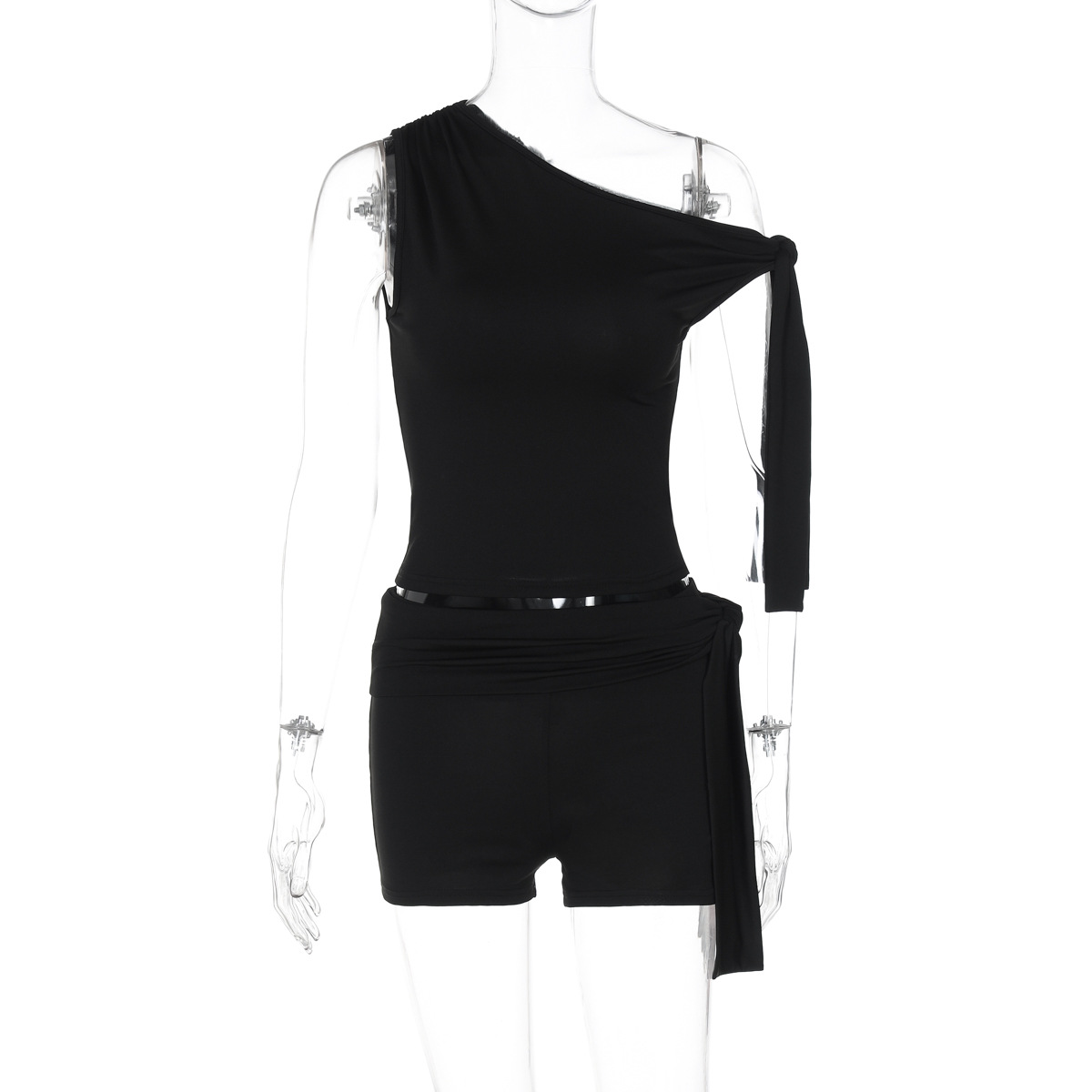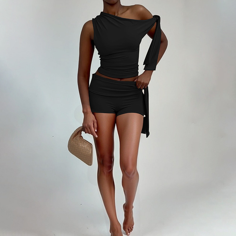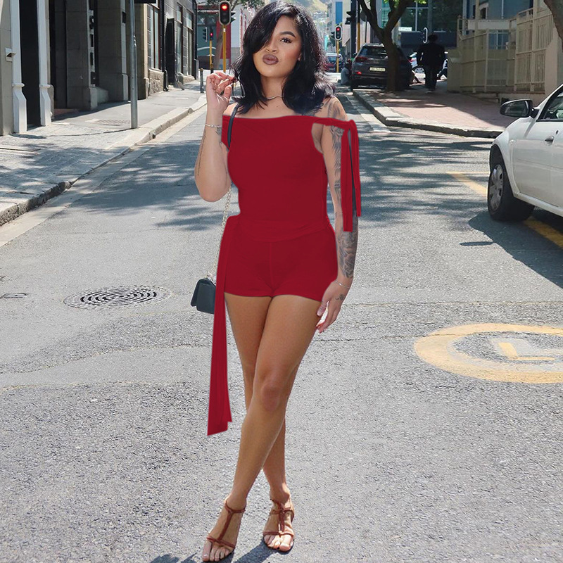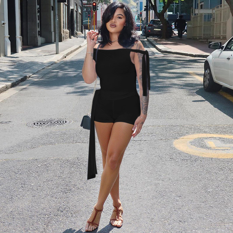 This Women's Summer Solid-Color Slash-Shoulder Sleeveless Top With Lace-Up Slim Shorts Two-Piece Set Design Made Of High Quality polyester And Spandex Material. It Is Stretchy, Durable And Comfortable. It Come With The Top And Shorts. retail Short Sets Saves Some People From The Trouble Of Matching. And For Matchmakers It Is More Flexible Than One-Piece Outfit. Two Piece Short Set Can Be Worn Together Or Individually, Ladies Can Match Them According To Different Occasions. Grab Different Two Piece Short Sets For This Spring And Summer.