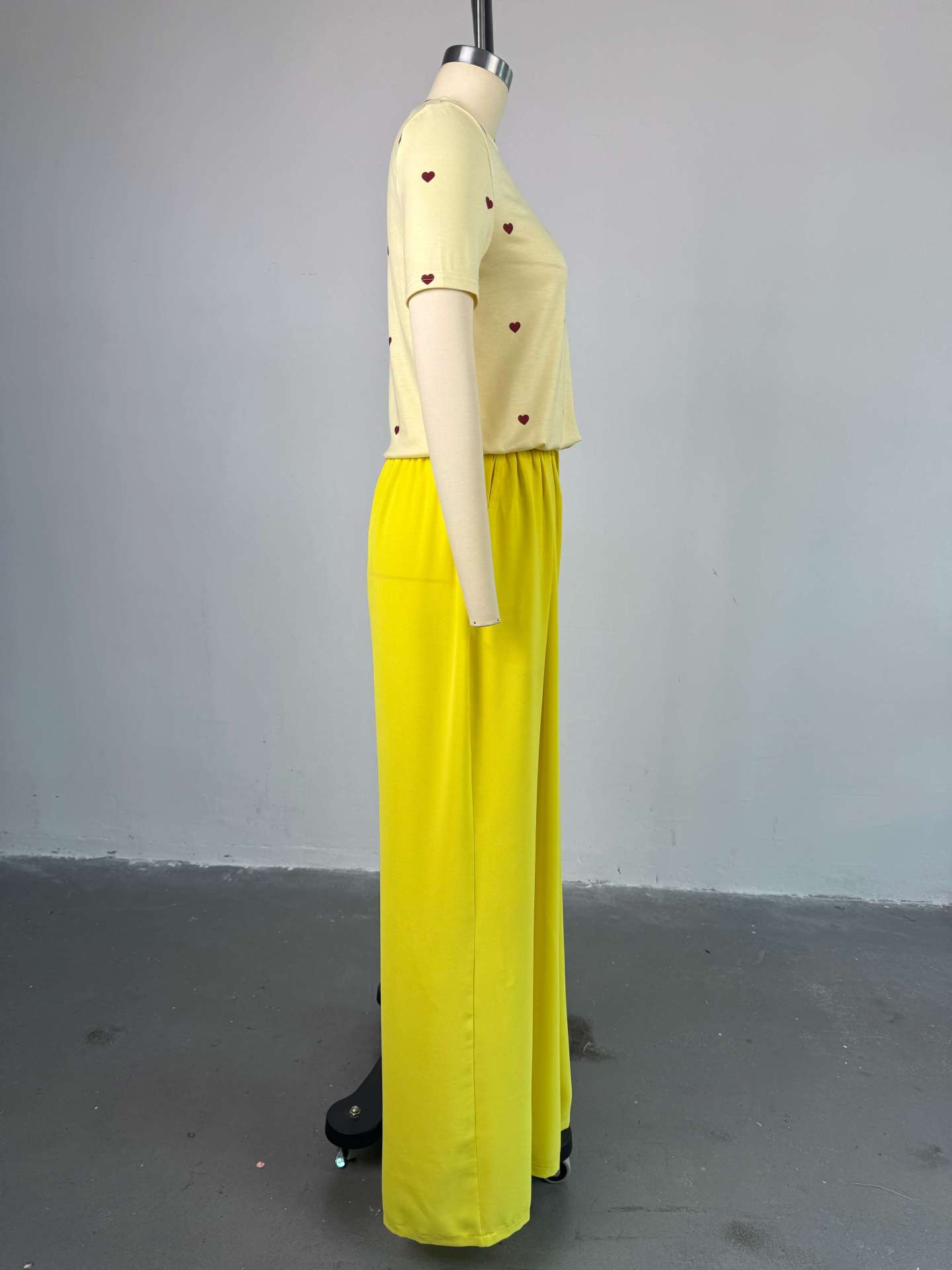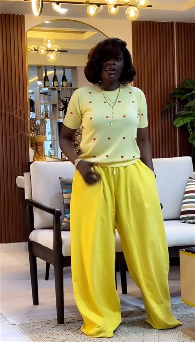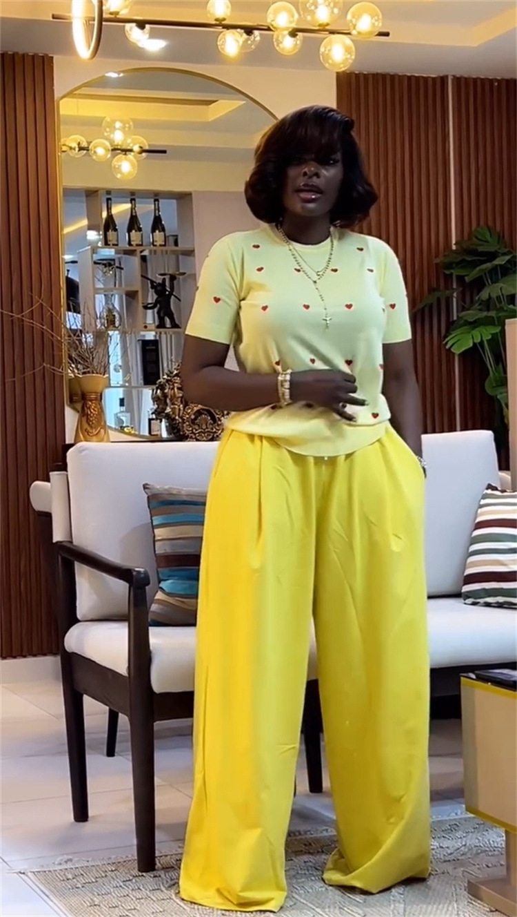 This Women's Summer Sweet & Trendy Round Neck Heart Print Short Sleeve Top & Wide-Leg Pants Set Design Made Of High Quality polyester And Spandex Material. It Is Stretchy, Durable And Comfortable. It Is a Must-Have Outfit For All Seasons. retail Two Piece Pant Sets Can Solve Your cloth selection Troubles. Explore More 2 Piece Pants Set On BamBam retail Women Clothing Online Store.