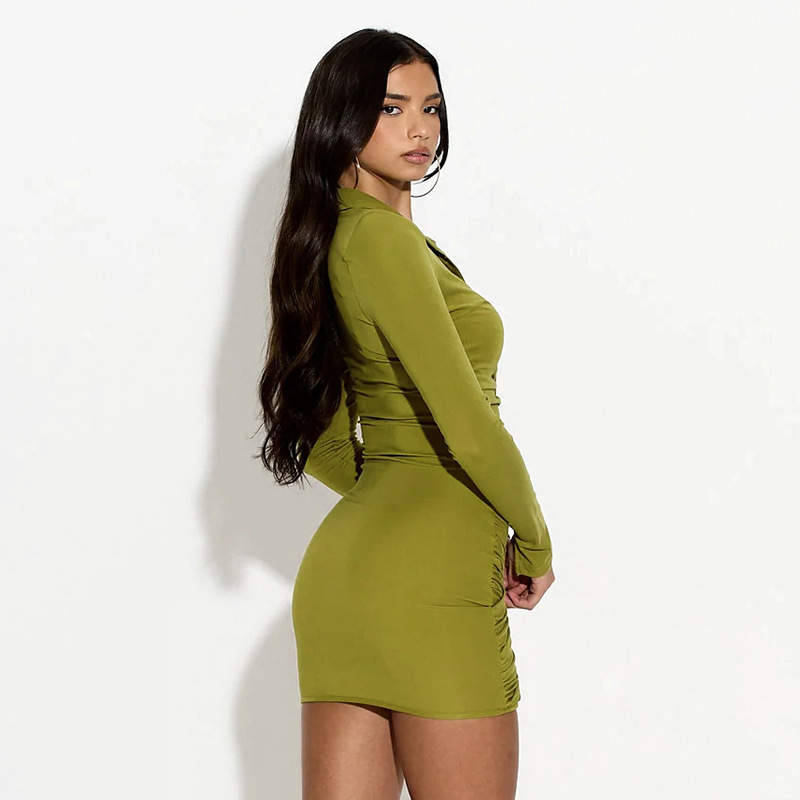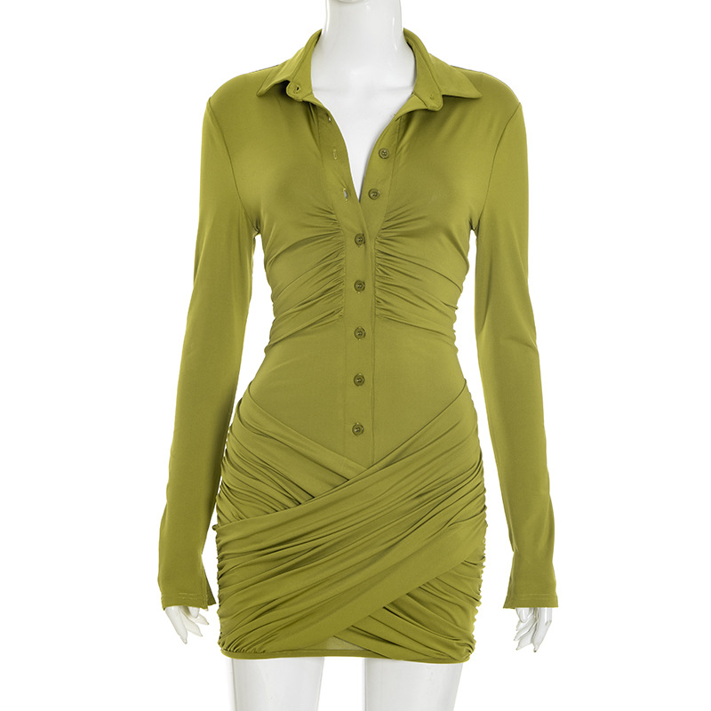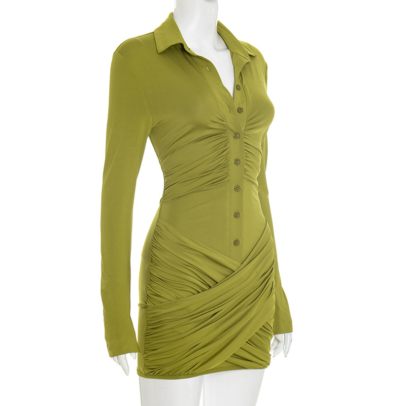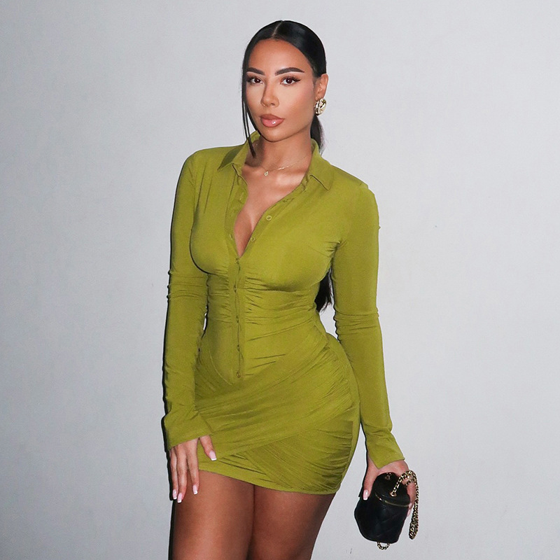 This Women's Turn-Down Collar Button Long Sleeve Bodycon Short Dress Design Made Of High Quality polyester And Spandex Material. It Is Stretchy, Durable And Comfortable. Casual Dresses With Long Sleeves Can Not Only Be Worn As Outerwear In Spring And Autumn, But Also Matching a Jacket In Winter, It Is a Must Have Item For Every Season. Grab Really Great Buy Casual Dresses For Women And Grow Your Business. No Moq In BamBam.