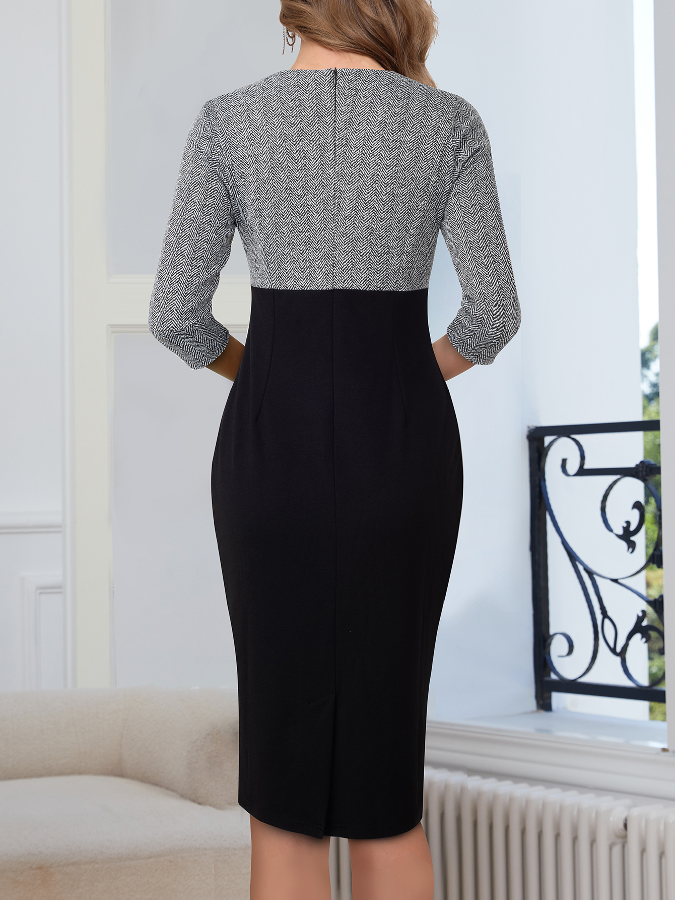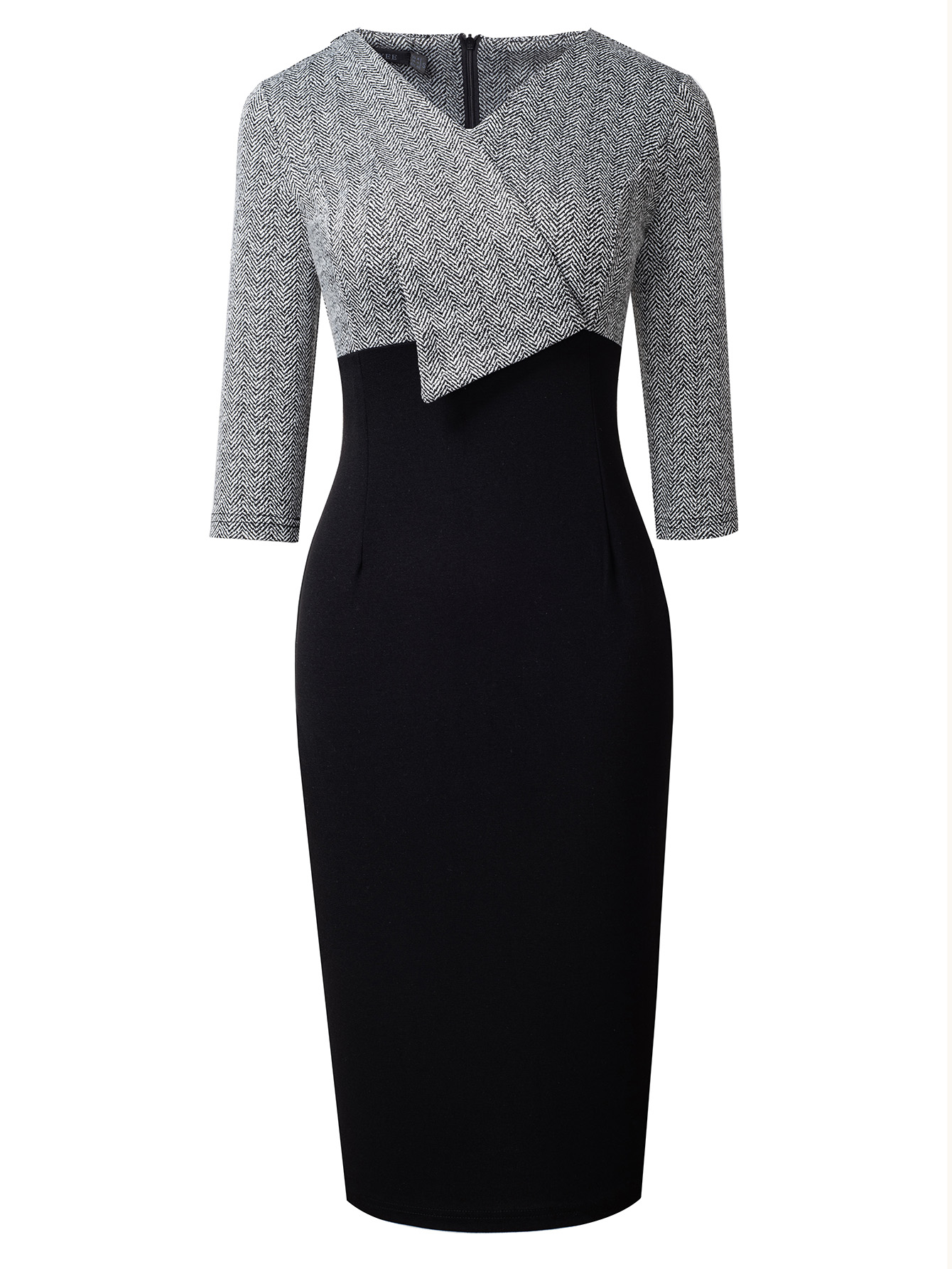 This Women's V-neck Color Block Patchwork 3/4 Sleeve Chic Bodycon Dress Design Made Of High End Polyester And Spandex Material, It Has Enough Stretch, Wearing Comfortable And Make You Good Emotion All The Day. The Office Wear For Ladies Is a Perfect Look For Attend Meetings, Meet Important Customers, Go To Work Daily. When You Need Wholesale Best Work Dresses, You Can Find On Our Wholesale Women Apparel Online Store Something That You Really Can Not Find From Other Place.
