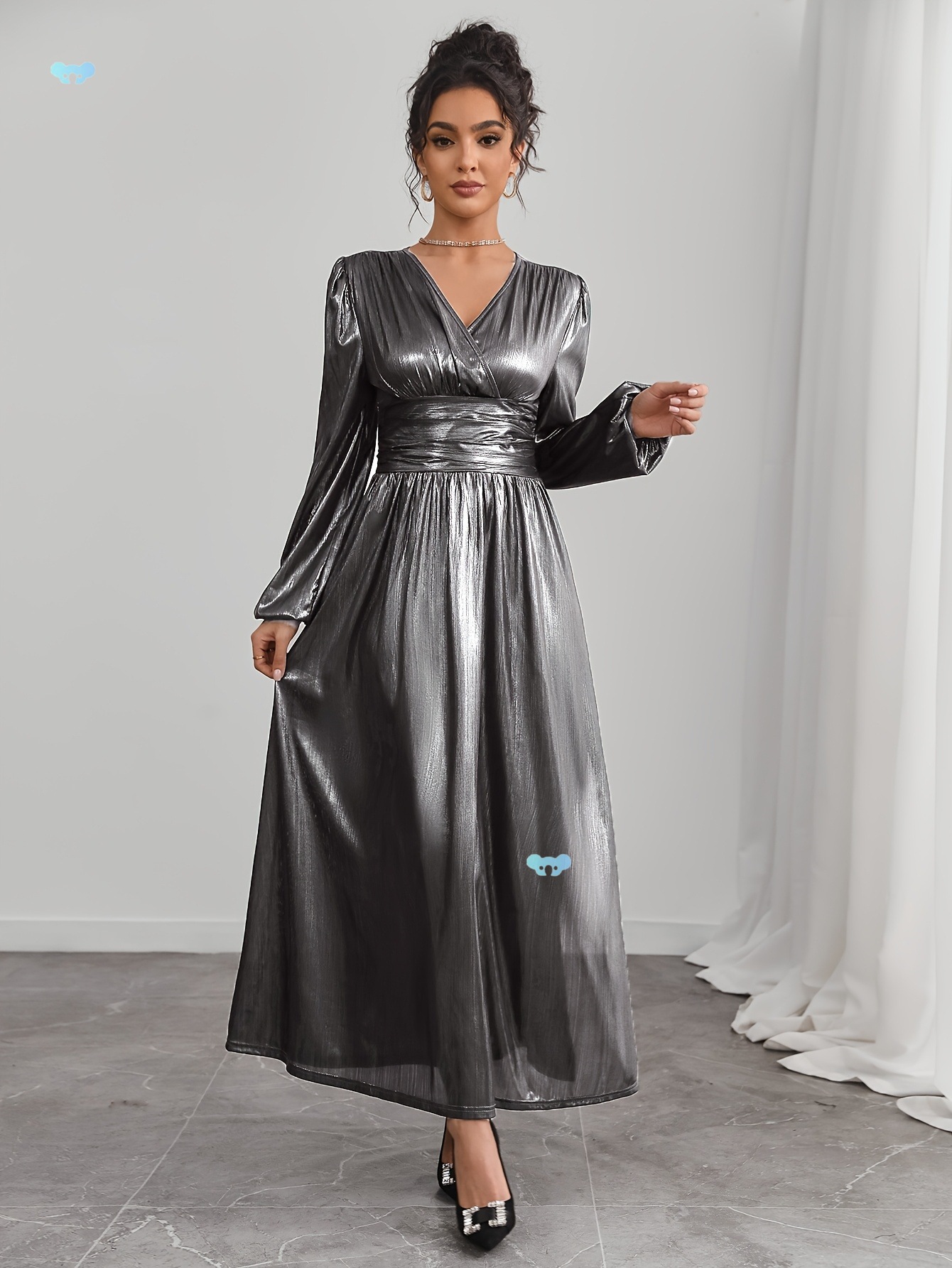 This Women's v-Neck Slit Shiny Long Sleeve Midi Dress Design Made Of High Quality polyester And Spandex Material. It Is Stretchy, Durable And Comfortable. Casual Dresses With Long Sleeves Can Not Only Be Worn As Outerwear In Spring And Autumn, But Also Matching a Jacket In Winter, It Is a Must Have Item For Every Season