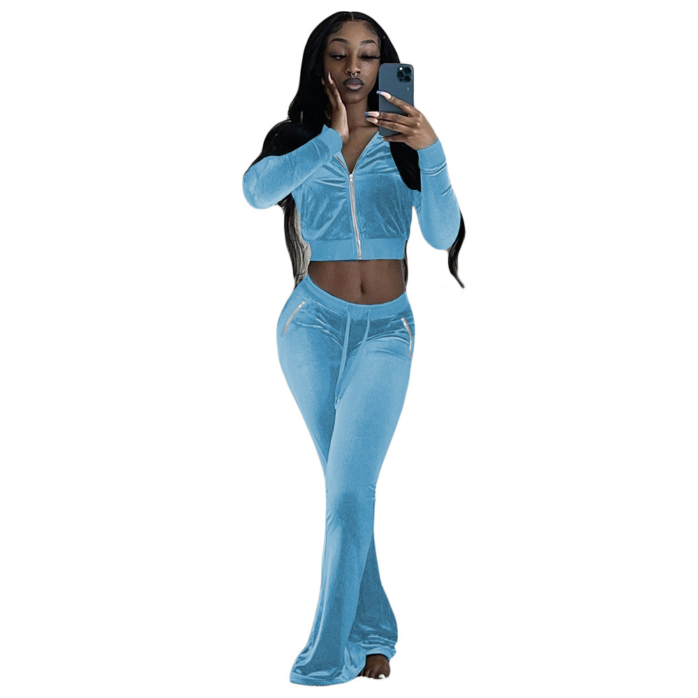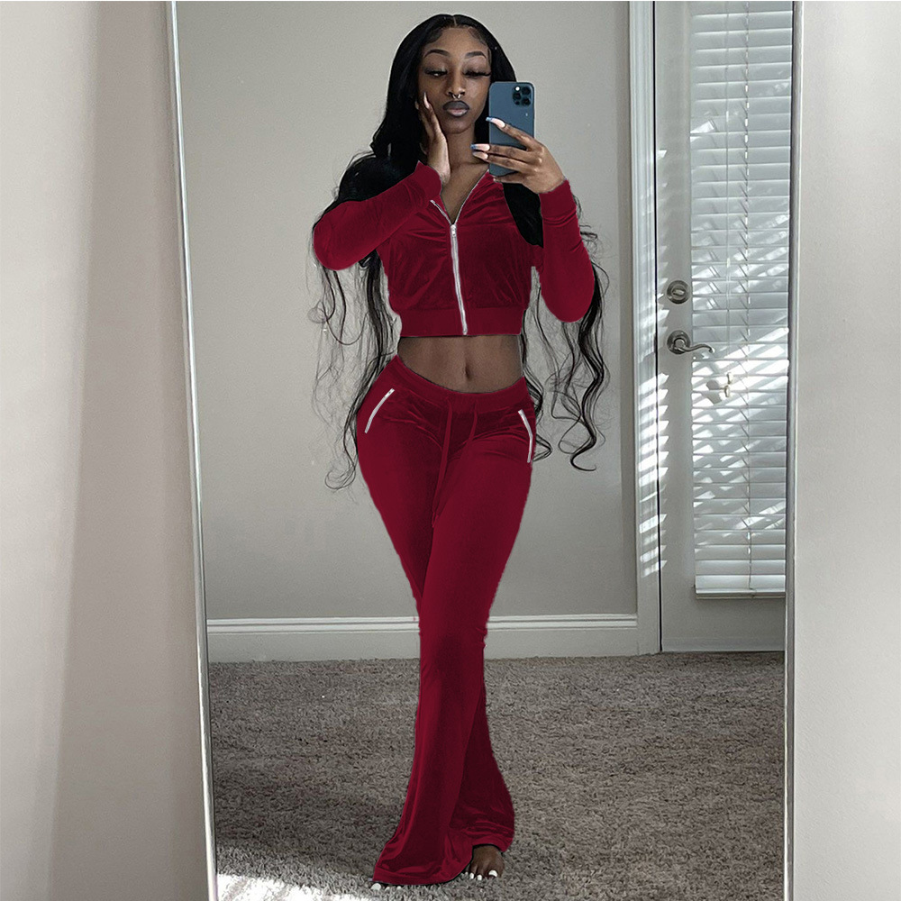 This Women's Velvet Solid Color Sexy Zipper Pocket Two-Piece Tracksuit Design Made Of Durable And Stretch Fabric. It Is a Must-Have Sportswear For Outdoor And Active. BamBam Offer a Rich Selection Of Women Tracksuits And Sweatsuits. You Will Find Wide Range Colors, Prints, And Designs retail Tracksuits With BamBam Whether For Sports Or Lazy Weekend. When You Need More retail Fitness Clothing, You Can Always Find What You Need On Our retail Women Gym Wear Online Store.