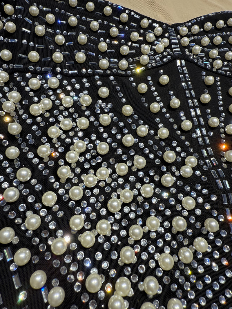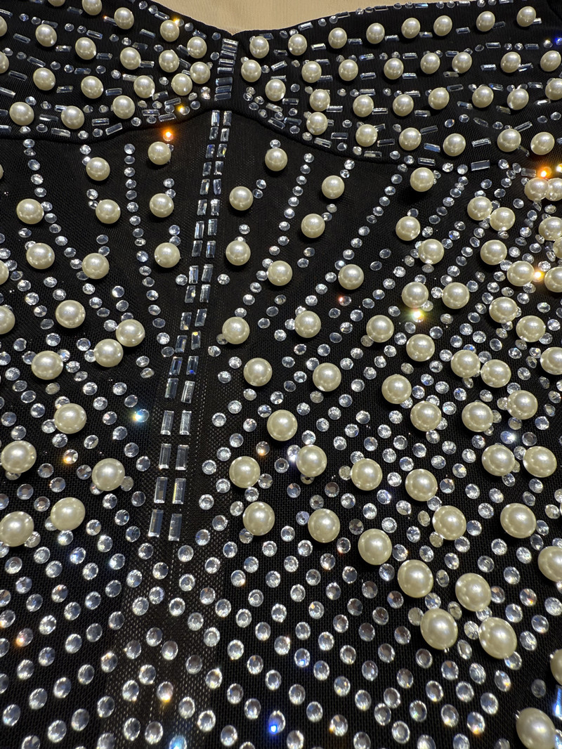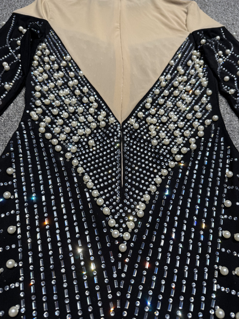 This Women See-Through Sexy Beaded Pearl Contrast Long Sleeve Dress Design Made Of Good Quality Polyester And Spandex Material, Which Is Stretchy, Durable And Comfortable. The Long Evening Dresses And Gowns Is Always The main Choice For All Kinds Of Parties, Cocktail, Prom, Events, And Dating Occasions. Evening Gowns At BamBam Comes With Huge Selections - Sequins, Beaded, Satin, Velvet, Lace.... When You Need retail Evening Dresses, BamBam retail Women Garment Online Shop Is Your One-Stop Online Shopping Choice.