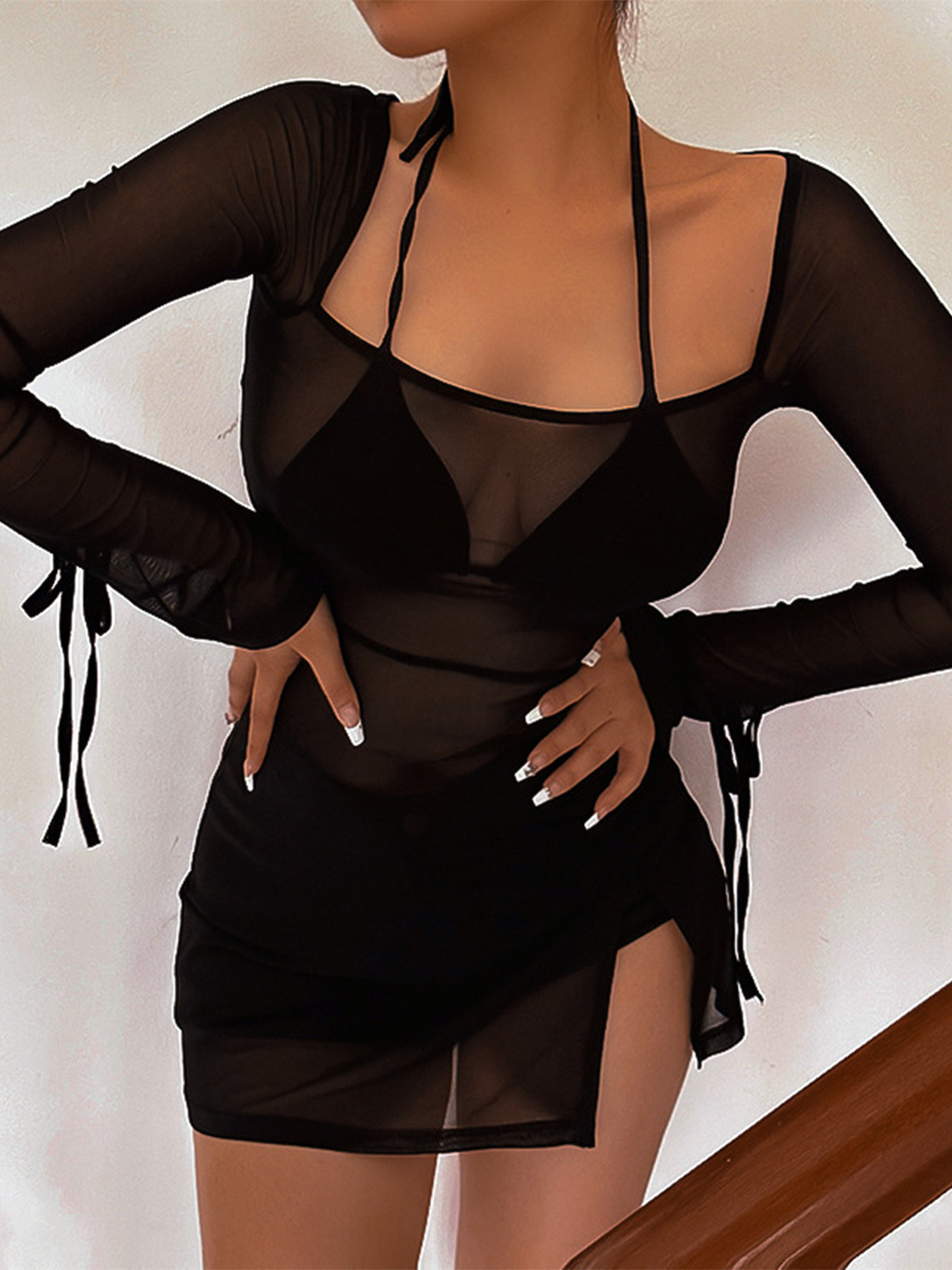 This Women See-Through Sexy Mesh Long Sleeve Slit Dress Design Made Of High Quality polyester And Spandex Material. It Is Stretchy, Durable And Comfortable. Casual Dresses With Long Sleeves Can Not Only Be Worn As Outerwear In Spring And Autumn, But Also Matching a Jacket In Winter, It Is a Must Have Item For Every Season. Grab Really Great Buy Casual Dresses For Women And Grow Your Business. No Moq In BamBam.