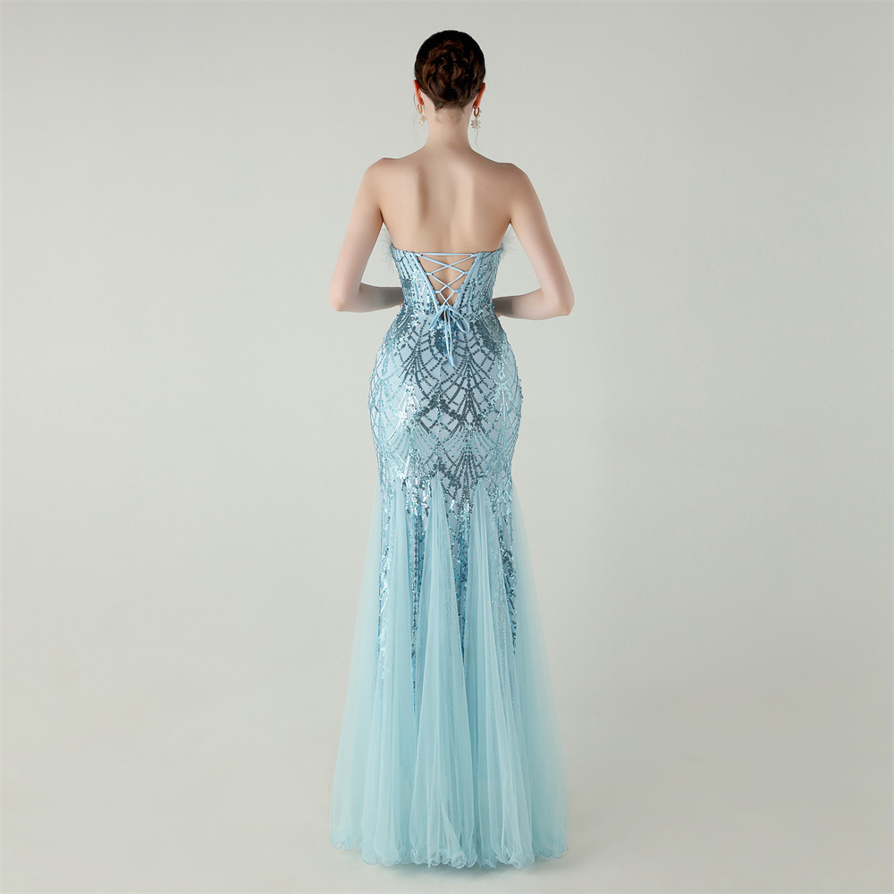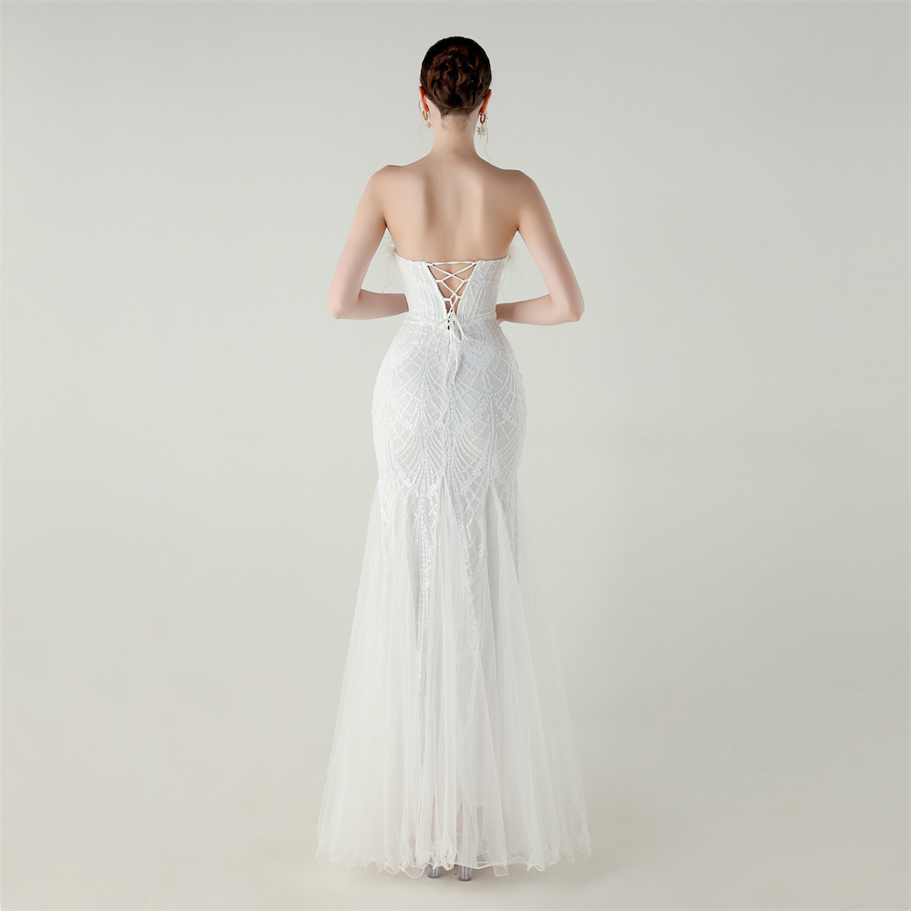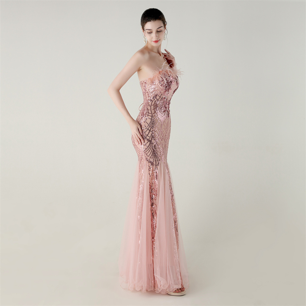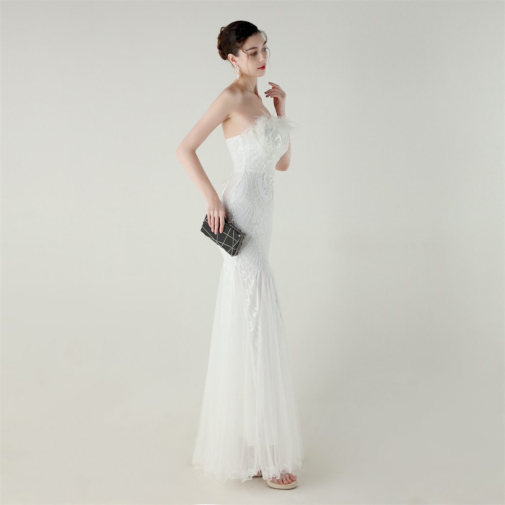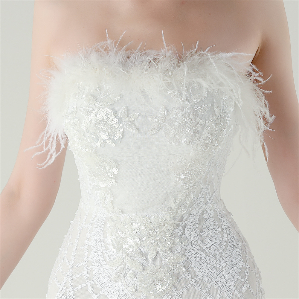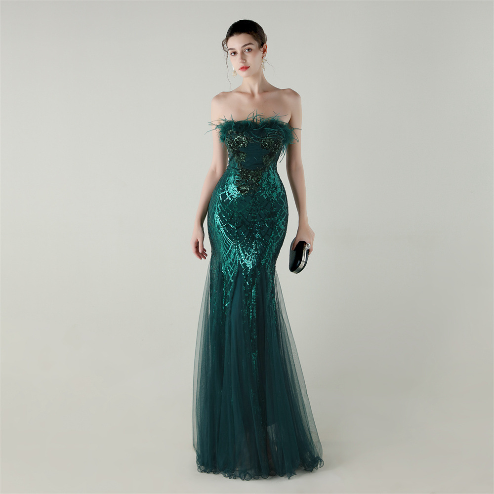 This Women Sequined Tube Flower Ostrich Feather Strapless Cross Lace-Up Mesh Formal Party Fishtail Evening Dress Design Made Of Good Quality Polyester And Spandex Material, Which Is Stretchy, Durable And Comfortable. The Long Evening Dresses And Gowns Is Always The main Choice For All Kinds Of Parties, Cocktail, Prom, Events, And Dating Occasions. Evening Gowns At BamBam Comes With Huge Selections - Sequins, Beaded, Satin, Velvet, Lace.... When You Need retail Evening Dresses, BamBam retail Women Garment Online Shop Is Your One-Stop Online Shopping Choice.