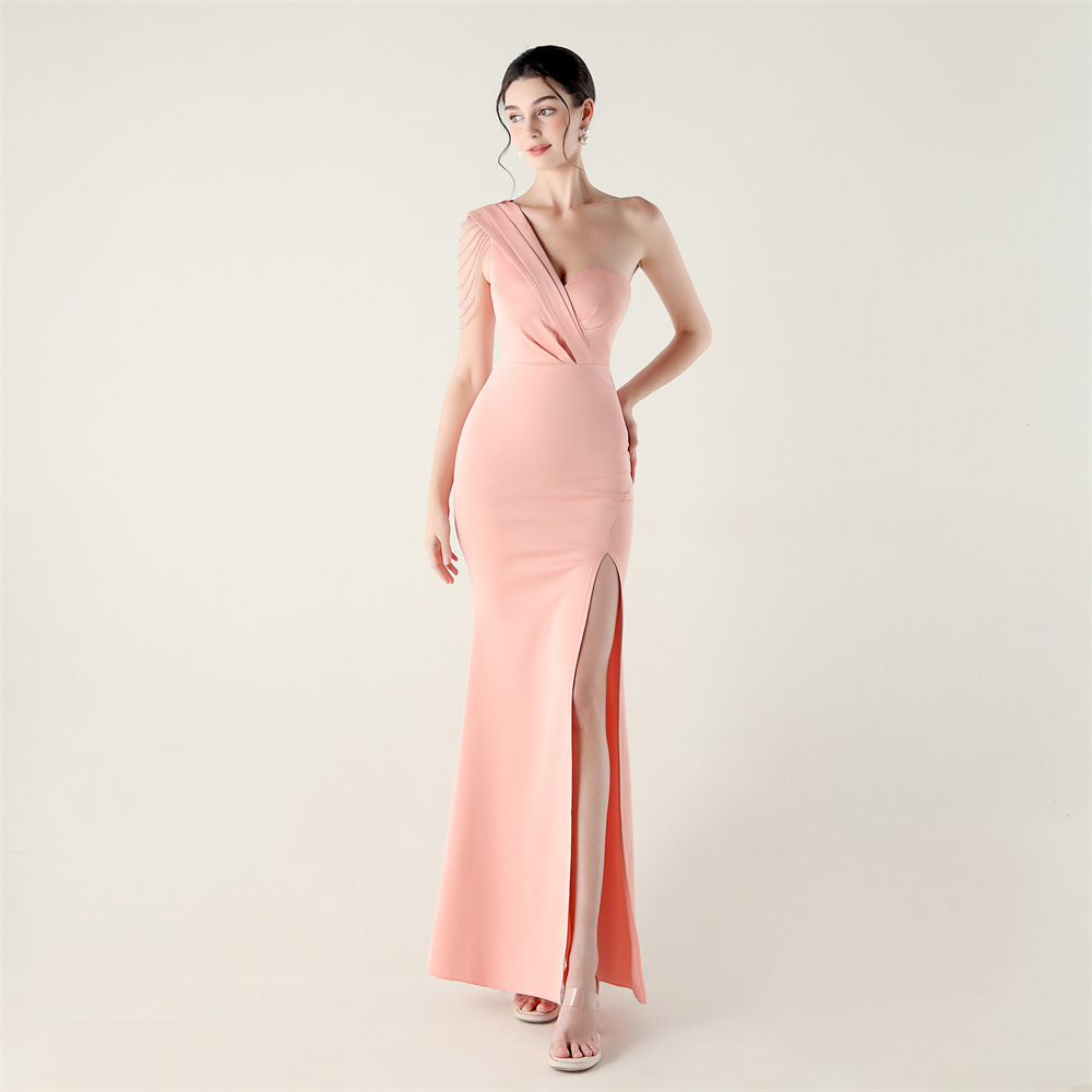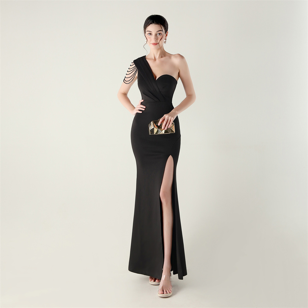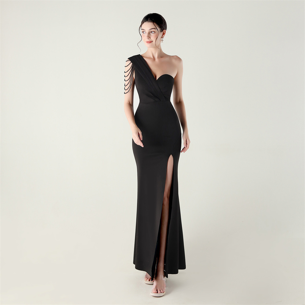 This Women Sexy And Elegant Evening Beaded One-Shoulder Slit Evening Dress Design Made Of Good Quality Polyester And Spandex Material, Which Is Stretchy, Durable And Comfortable. The Long Evening Dresses And Gowns Is Always The main Choice For All Kinds Of Parties, Cocktail, Prom, Events, And Dating Occasions. Evening Gowns At BamBam Comes With Huge Selections - Sequins, Beaded, Satin, Velvet, Lace.... When You Need retail Evening Dresses, BamBam retail Women Garment Online Shop Is Your One-Stop Online Shopping Choice.