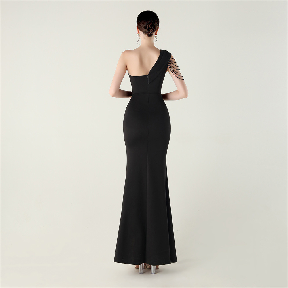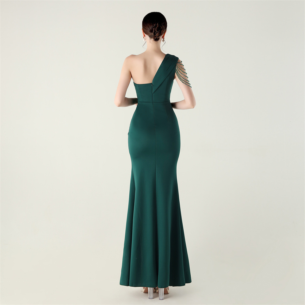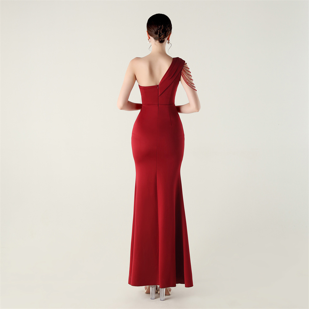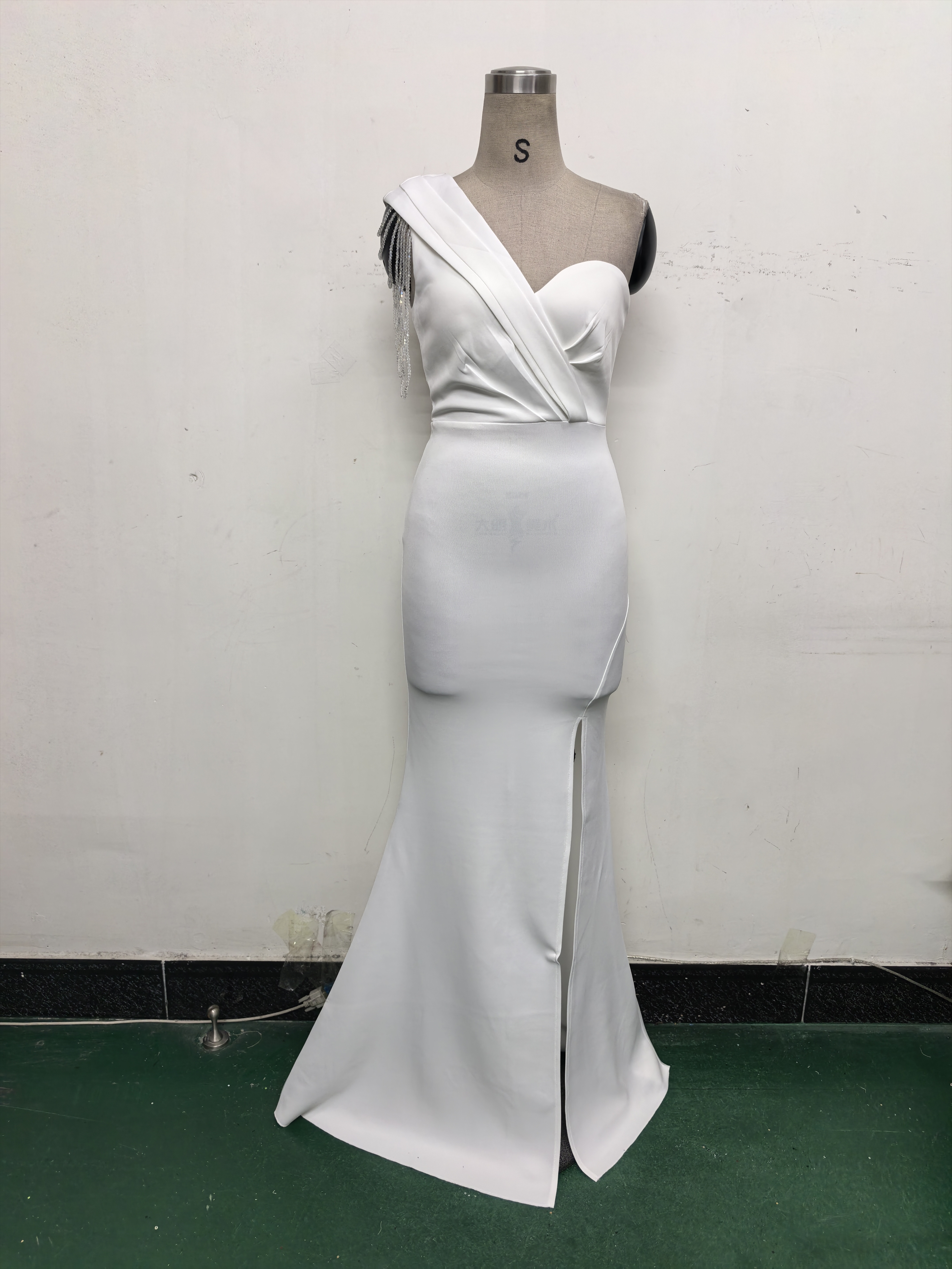 This Women Sexy And Elegant Evening Beaded One-Shoulder Slit Evening Dress Design Made Of Good Quality Polyester And Spandex Material, Which Is Stretchy, Durable And Comfortable. The Long Evening Dresses And Gowns Is Always The main Choice For All Kinds Of Parties, Cocktail, Prom, Events, And Dating Occasions. Evening Gowns At BamBam Comes With Huge Selections - Sequins, Beaded, Satin, Velvet, Lace.... When You Need retail Evening Dresses, BamBam retail Women Garment Online Shop Is Your One-Stop Online Shopping Choice.