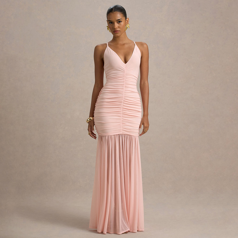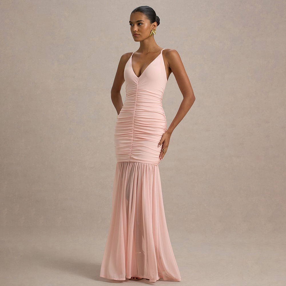 This Women Sexy And Elegant Ruffled See-Through Solid Backless v-Neck Strap Dress Design Made Of Good Quality Polyester And Spandex Material, Which Is Stretchy, Durable And Comfortable. The Long Evening Dresses And Gowns Is Always The main Choice For All Kinds Of Parties, Cocktail, Prom, Events, And Dating Occasions. Evening Gowns At BamBam Comes With Huge Selections - Sequins, Beaded, Satin, Velvet, Lace.... When You Need retail Evening Dresses, BamBam retail Women Garment Online Shop Is Your One-Stop Online Shopping Choice.