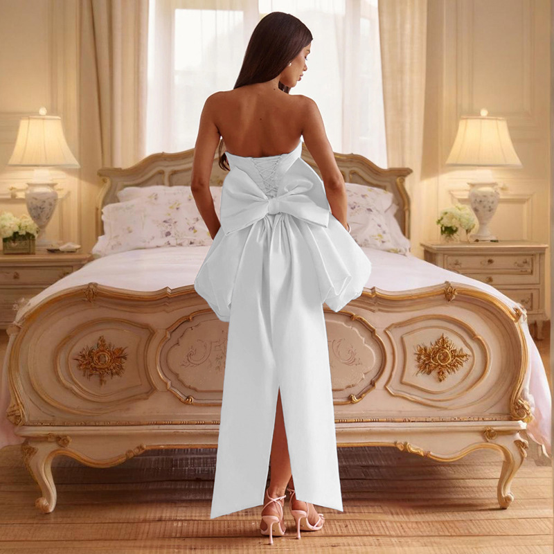 This Women Sexy Backless Big Bow Strapless Dress Design Made Of Good Quality Polyester And Spandex Material, Which Is Stretchy, Durable And Comfortable. The Long Evening Dresses And Gowns Is Always The main Choice For All Kinds Of Parties, Cocktail, Prom, Events, And Dating Occasions. Evening Gowns At BamBam Comes With Huge Selections - Sequins, Beaded, Satin, Velvet, Lace.... When You Need retail Evening Dresses, BamBam retail Women Garment Online Shop Is Your One-Stop Online Shopping Choice.