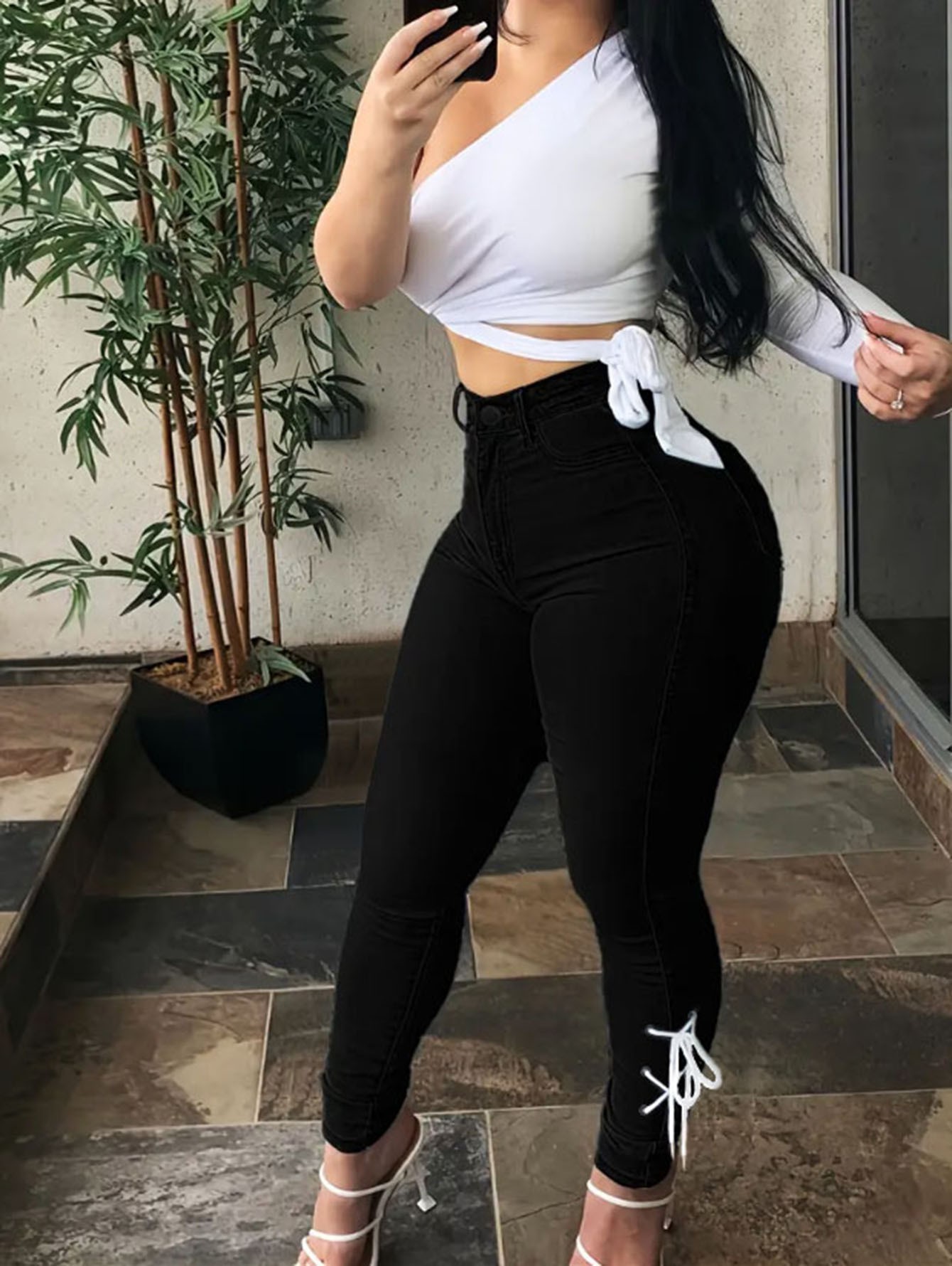 This Women Sexy Casual Lace-Up Denim Pants Design Made Of Durable And Stretchy Jeans Fabric. It Is a Must-Have Item For everyday use. Trendy retail Jeans Is a Indispensable Item For Everyday Fashion. Women’s Jeans With High Waist Is a Must Have trouser/pant that helps bring the grace of shape of your legs out even more and fits perfectly snugging your thighs and body gracefully. Grab a Must Have High Waist Jeans retail For Your Closet, Just Choose Different Matching Tops To stay in control of Every Occasion Easily.