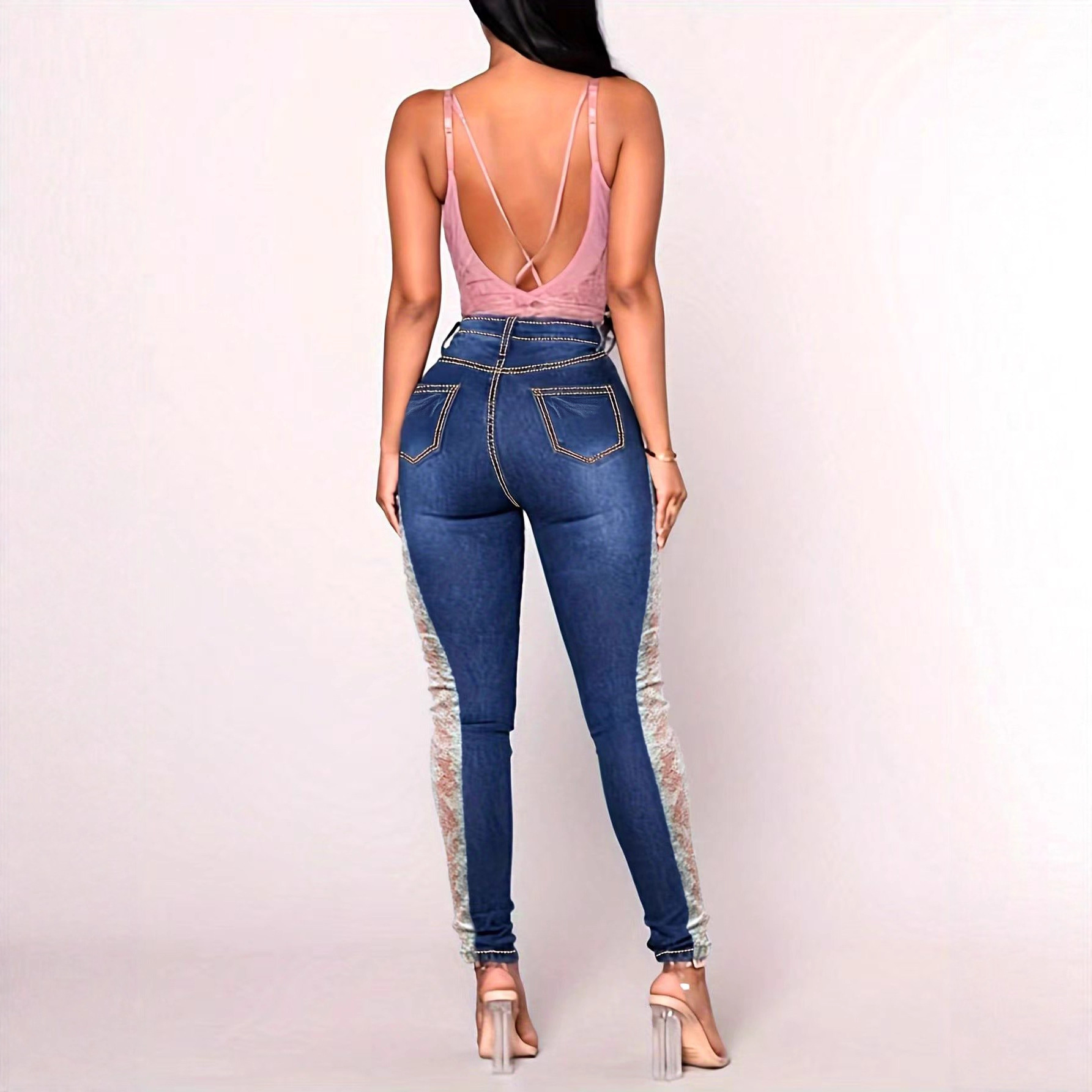 This Women Sexy Lace Denim Pants Design Made Of Durable And Stretchy Jeans Fabric. It Is a Must-Have Item For everyday use. Trendy retail Jeans Is a Indispensable Item For Everyday Fashion. Women’s Jeans With High Waist Is a Must Have trouser/pant that helps bring the grace of shape of your legs out even more and fits perfectly snugging your thighs and body gracefully. Grab a Must Have High Waist Jeans retail For Your Closet, Just Choose Different Matching Tops To stay in control of Every Occasion Easily.