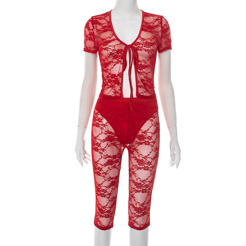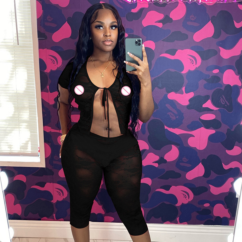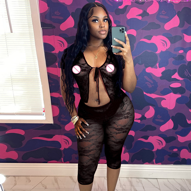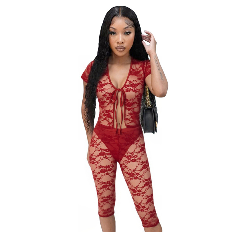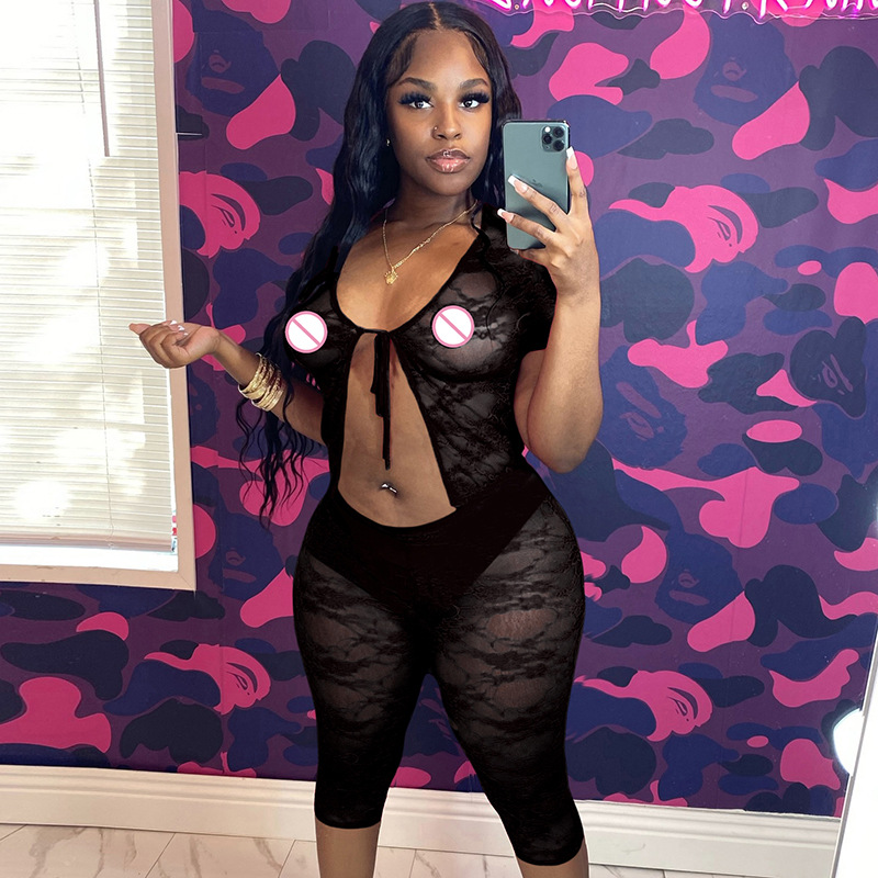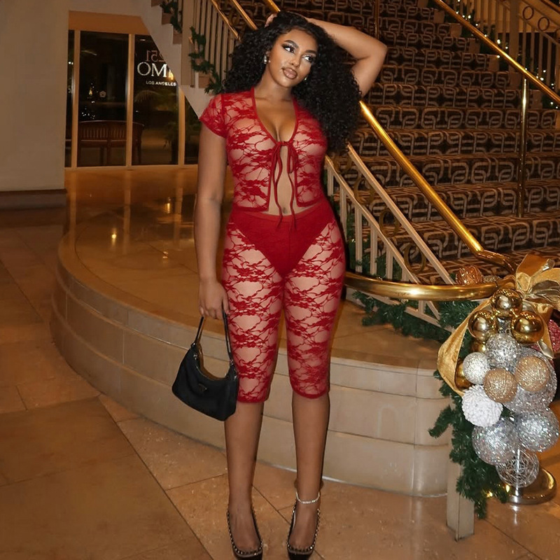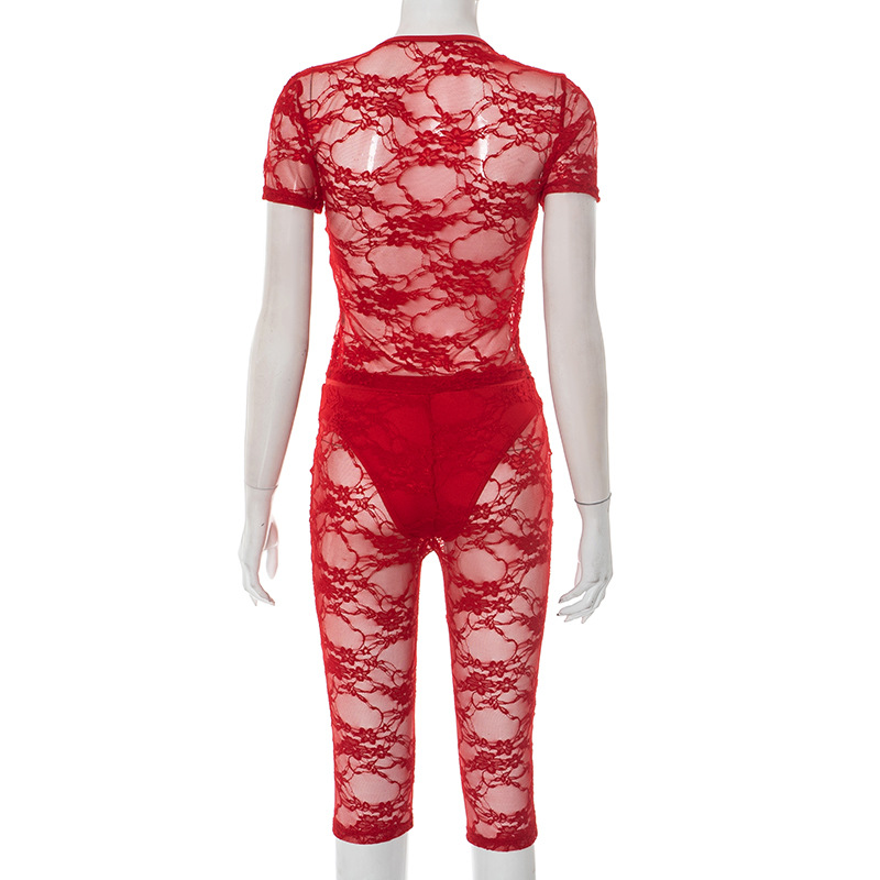 This Women Sexy Lace Hollow Lace Short Sleeve Top Shorts Two-Piece Set Design Made Of High Quality polyester And Spandex Material. It Is Stretchy, Durable And Comfortable. It Come With The Top And Shorts. retail Short Sets Saves Some People From The Trouble Of Matching. And For Matchmakers It Is More Flexible Than One-Piece Outfit. Two Piece Short Set Can Be Worn Together Or Individually, Ladies Can Match Them According To Different Occasions. Grab Different Two Piece Short Sets For This Spring And Summer.