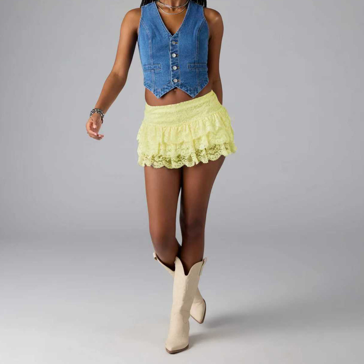 This Women Sexy Layered Solid Lace Short Skirt And Made Of polyester And Spandex Material. It Is a Must-Have Item For Everyday use. Skirts Styles Range From Casual To Sporty, Sexy To Classic, No One Can Refuse The Temptation Of Skirts. Shop retail Skirts For Women At BamBam You Will Find wider Range Selections - Women’s Maxi And Denim Skirts, Mini And Leather Skirts, High Waist And Pencil Skirts, Midi And Pleated Skirts, Bohemian And Chiffon Skirts...When You Need More retail Women Skirts, You Can Always Find What You Need On Our retail Women Clothing Online Store.