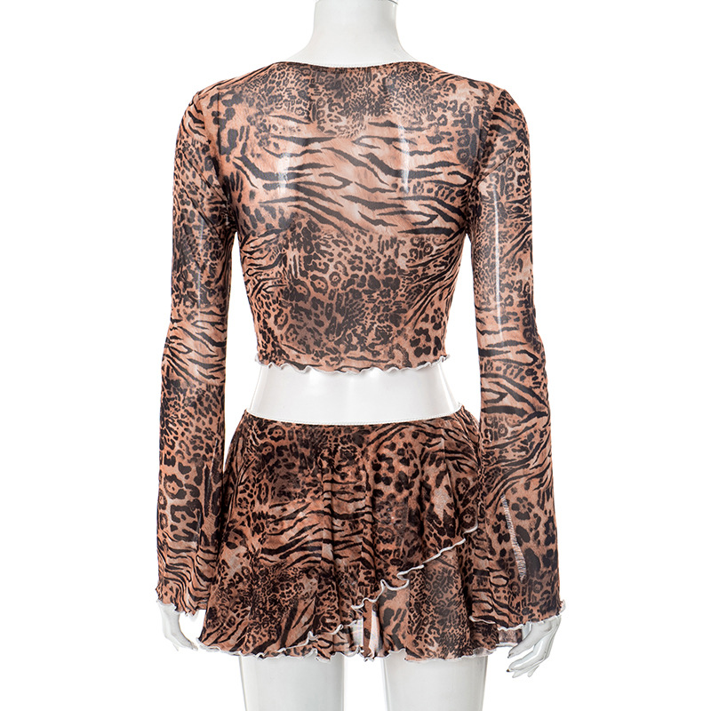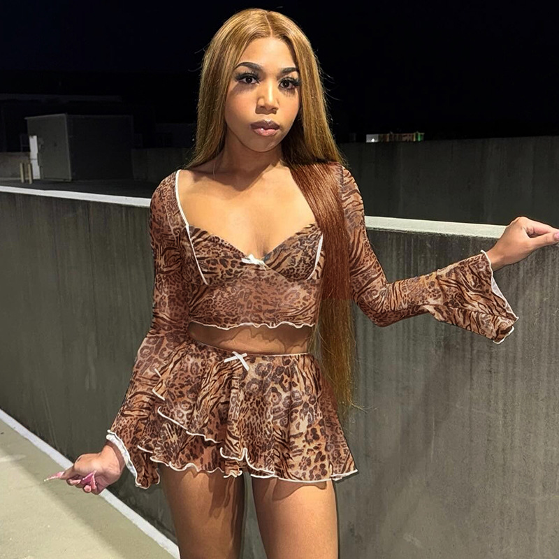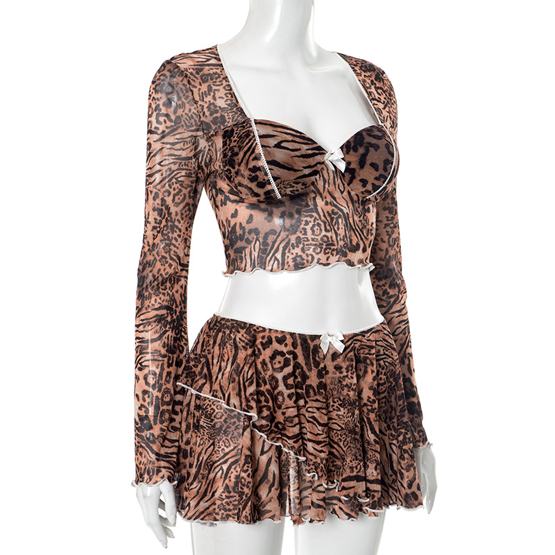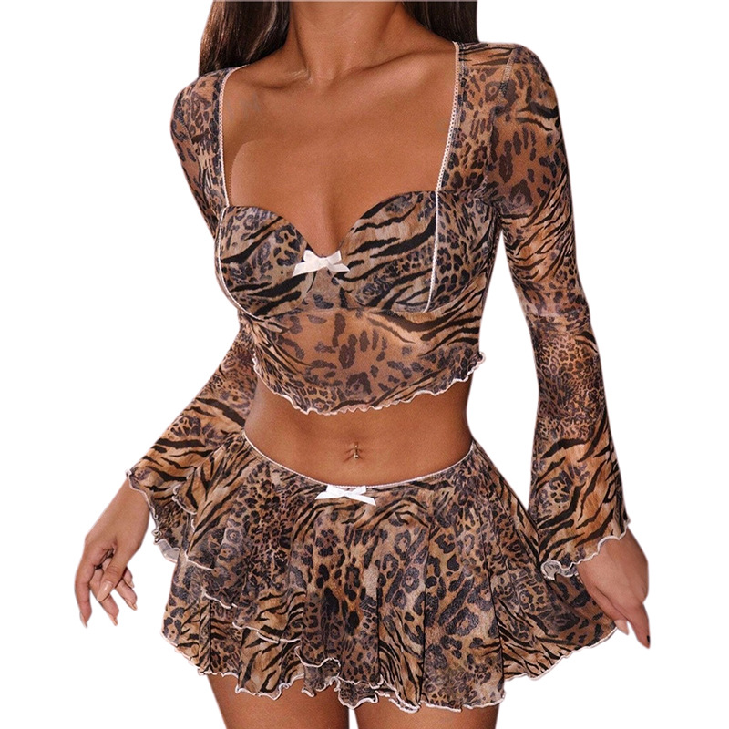 This Women Sexy Leopard Bow Bell Bottom Ruffle Edge Long Sleeve Top And Pleated Skit Two-Piece Set Design Made Of High Quality polyester And Spandex Material. It Is Stretchy, Durable And Comfortable. It Come With The Top And Skirt Matching Set. Women’s Skirt Suit Sets Is a Great Alternative To One Piece Outfit. It Can Either Be Worn Together Or Individually, So You Can Combine Them Endlessly. Grab Different Two Piece Skirt Set retail On Our Website a Women's Clothing Store Online At Really affordable price And Enjoy fast delivery worldwide.
