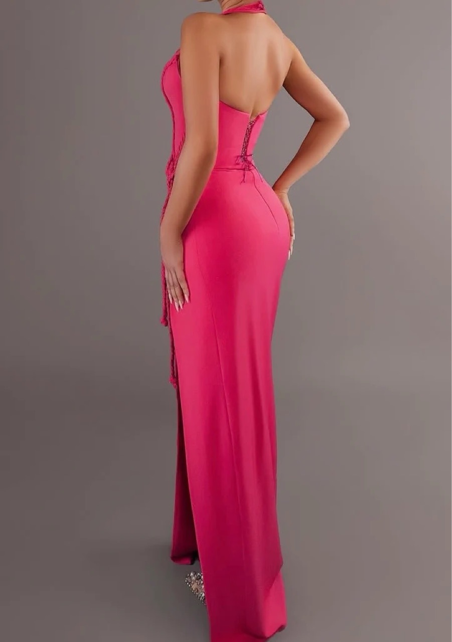 This Women Sexy Line Hollow Gathered Lace Slit Dress Design Made Of Good Quality Polyester And Spandex Material, Which Is Stretchy, Durable And Comfortable. The Long Evening Dresses And Gowns Is Always The main Choice For All Kinds Of Parties, Cocktail, Prom, Events, And Dating Occasions. Evening Gowns At BamBam Comes With Huge Selections - Sequins, Beaded, Satin, Velvet, Lace.... When You Need retail Evening Dresses, BamBam retail Women Garment Online Shop Is Your One-Stop Online Shopping Choice.