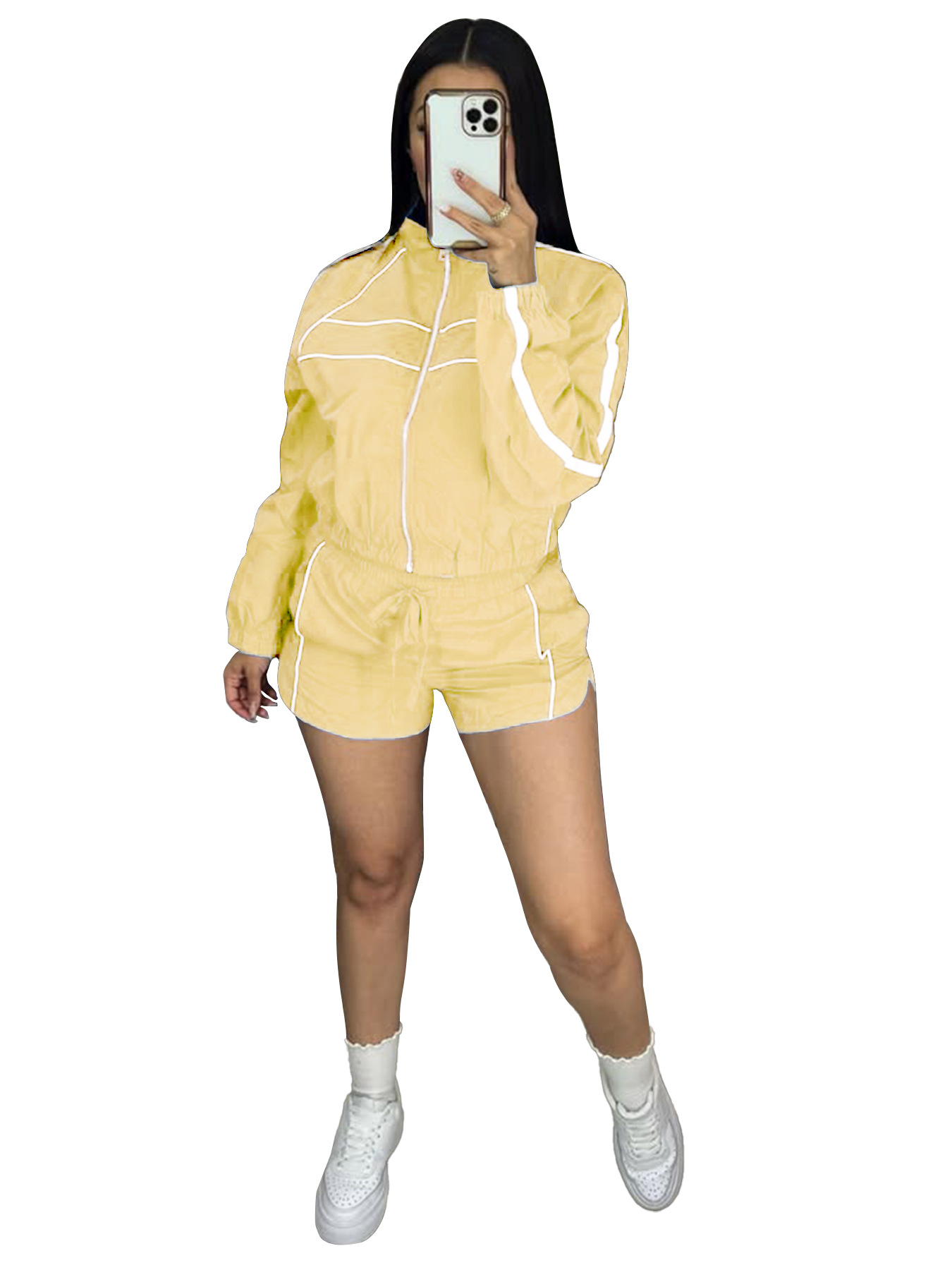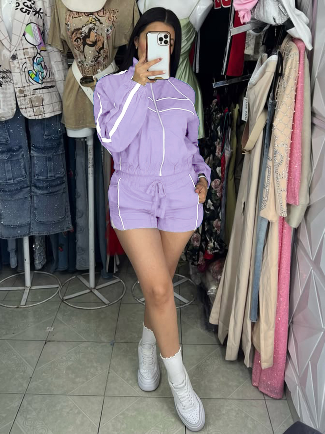 This Women Sexy Long Sleeve Zipper Contrast Color Ribbon Top And Shorts Two-Piece Set Design Made Of Durable And Stretch Fabric. It Is a Must-Have Sportswear For Outdoor And Active. BamBam Offer a Rich Selection Of Women Tracksuits And Sweatsuits. You Will Find Wide Range Colors, Prints, And Designs retail Tracksuits With BamBam Whether For Sports Or Lazy Weekend. When You Need More retail Fitness Clothing, You Can Always Find What You Need On Our retail Women Gym Wear Online Store.