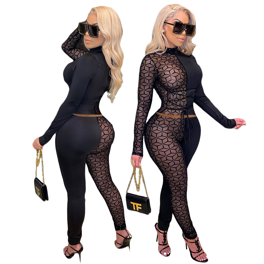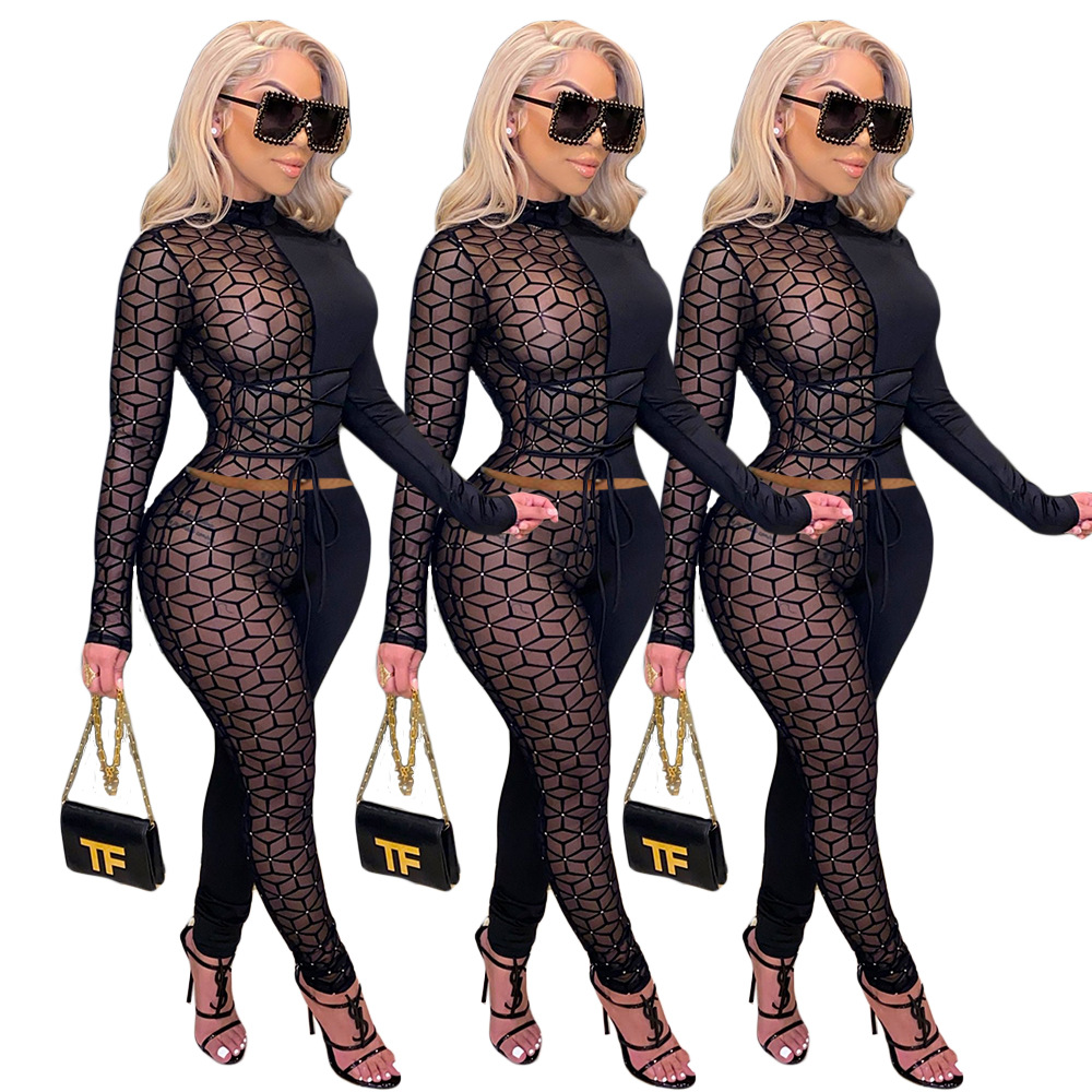 This Women Sexy Mesh Patchwork Print Top And Pant Two-Piece Set Design Made Of High Quality polyester And Spandex Material. It Is Stretchy, Durable And Comfortable. It Is a Must-Have Outfit For All Seasons. retail Two Piece Pant Sets Can Solve Your cloth selection Troubles. Explore More 2 Piece Pants Set On BamBam retail Women Clothing Online Store.