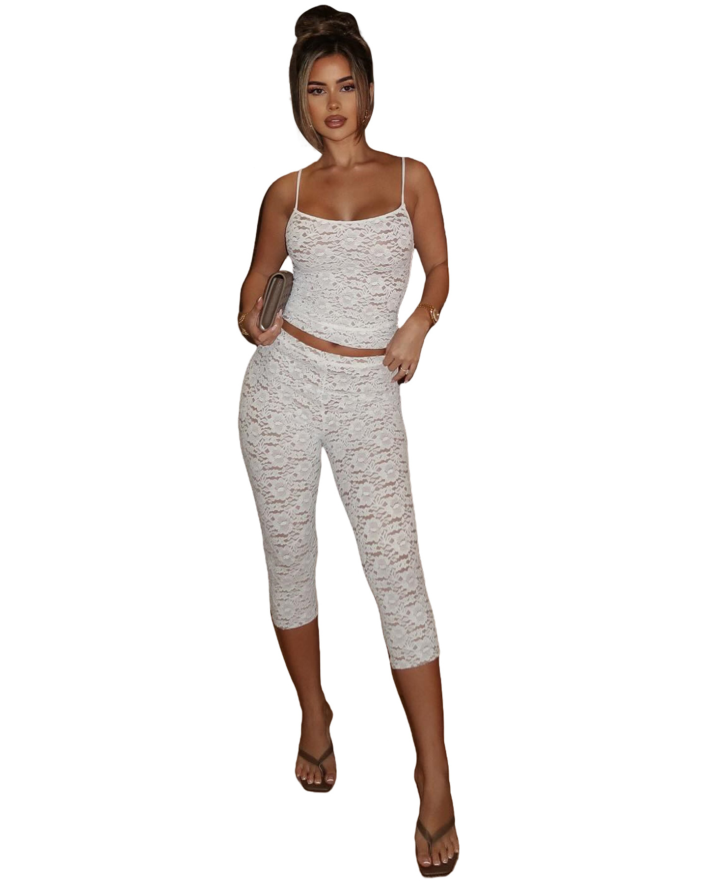 This Women Sexy Sexy Lace Top And Cropped Pants Casual Two-Piece Set Design Made Of High Quality polyester And Spandex Material. It Is Stretchy, Durable And Comfortable. It Come With The Top And Shorts. retail Short Sets Saves Some People From The Trouble Of Matching. And For Matchmakers It Is More Flexible Than One-Piece Outfit. Two Piece Short Set Can Be Worn Together Or Individually, Ladies Can Match Them According To Different Occasions. Grab Different Two Piece Short Sets For This Spring And Summer..