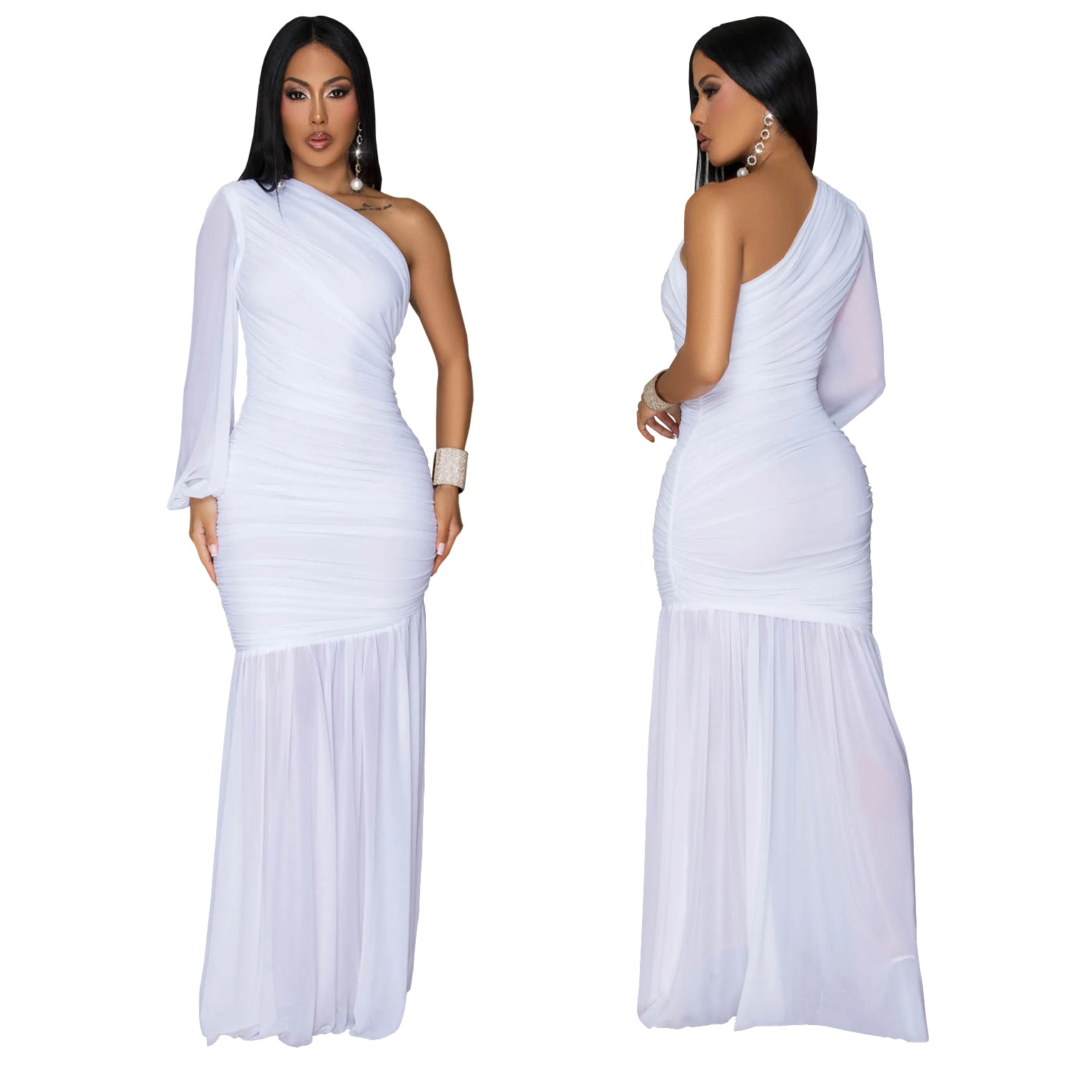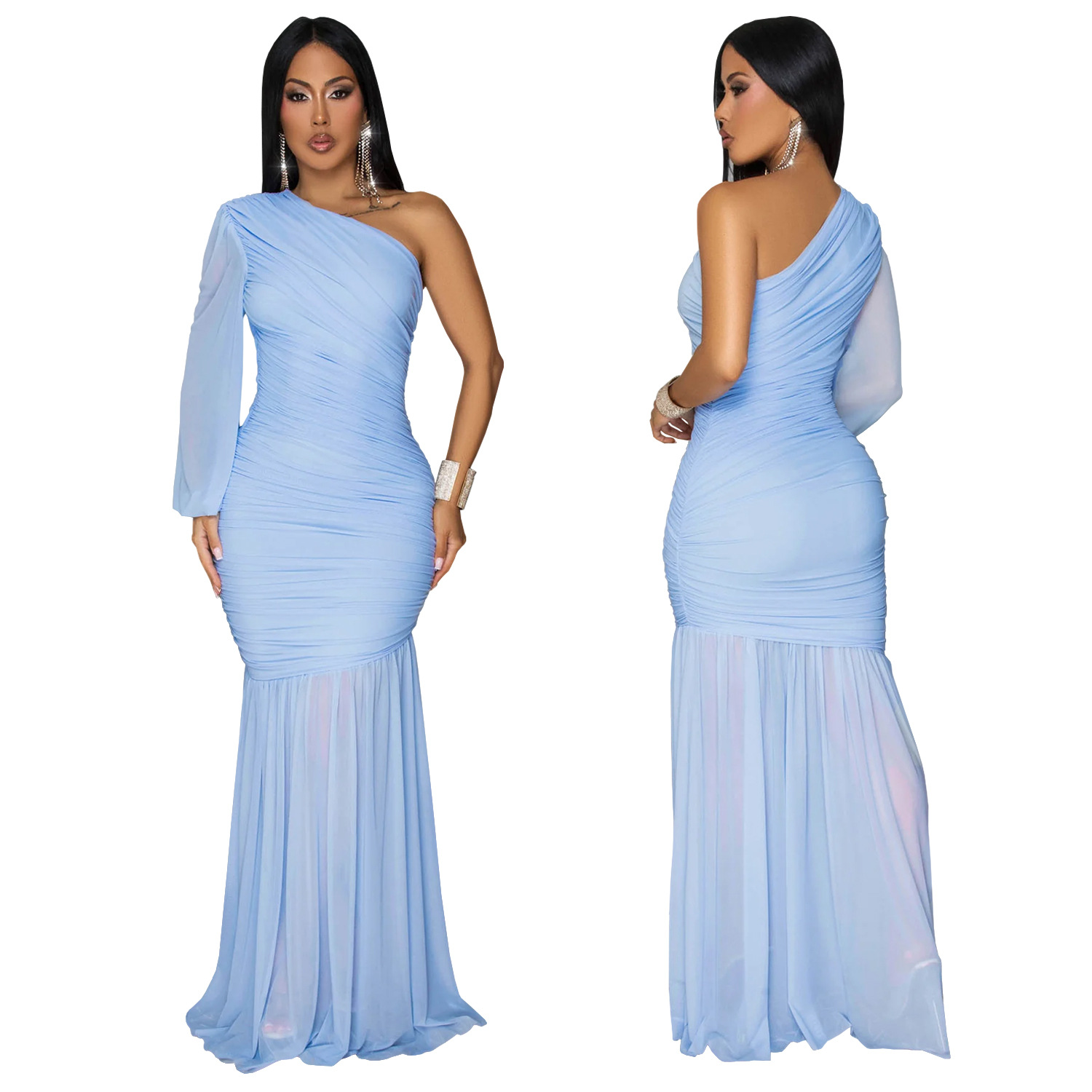This Women Sexy Slash Shoulder Mesh Dress Design Made Of Good Quality Polyester And Spandex Material, Which Is Stretchy, Durable And Comfortable. The Long Evening Dresses And Gowns Is Always The main Choice For All Kinds Of Parties, Cocktail, Prom, Events, And Dating Occasions. Evening Gowns At BamBam Comes With Huge Selections - Sequins, Beaded, Satin, Velvet, Lace.... When You Need retail Evening Dresses, BamBam retail Women Garment Online Shop Is Your One-Stop Online Shopping Choice.