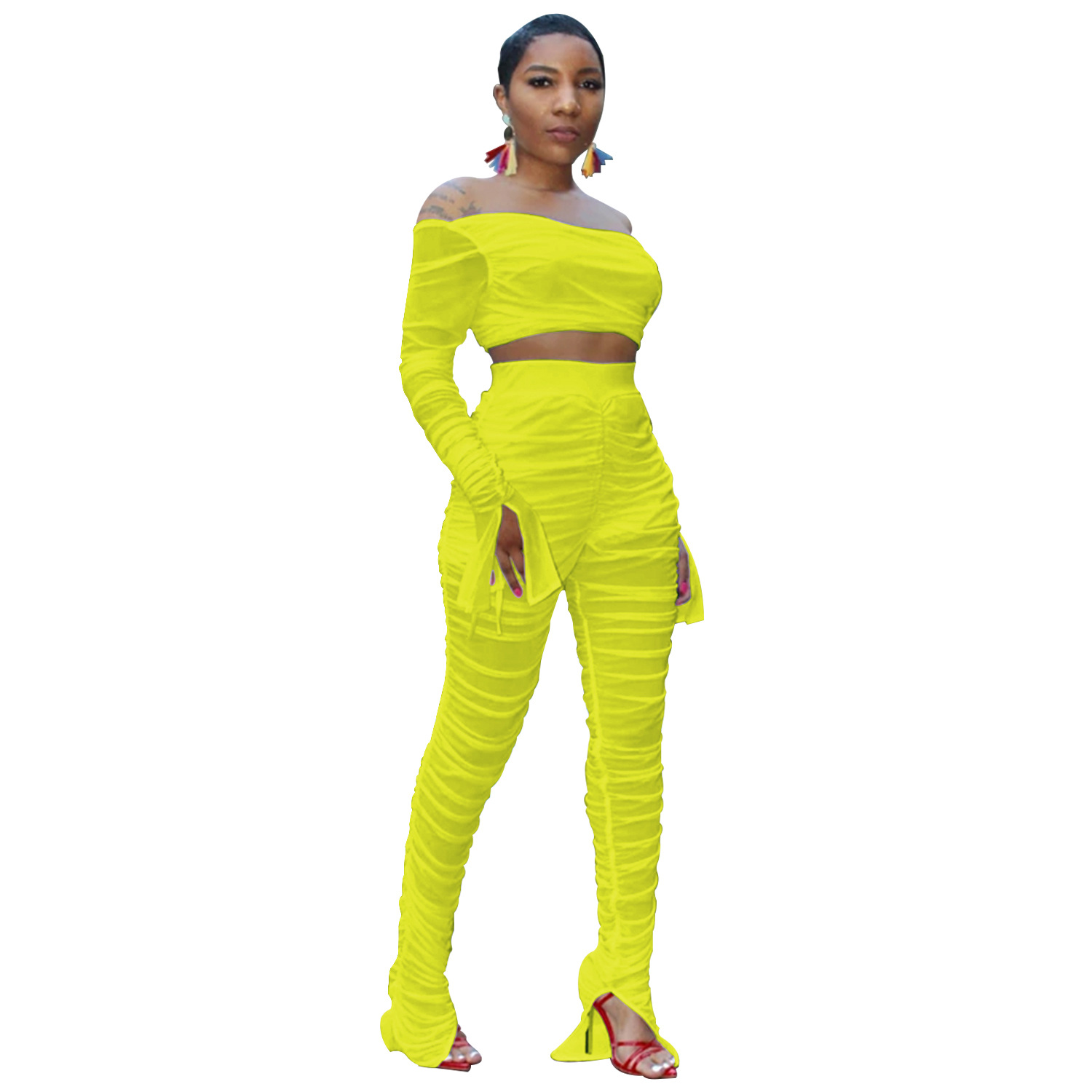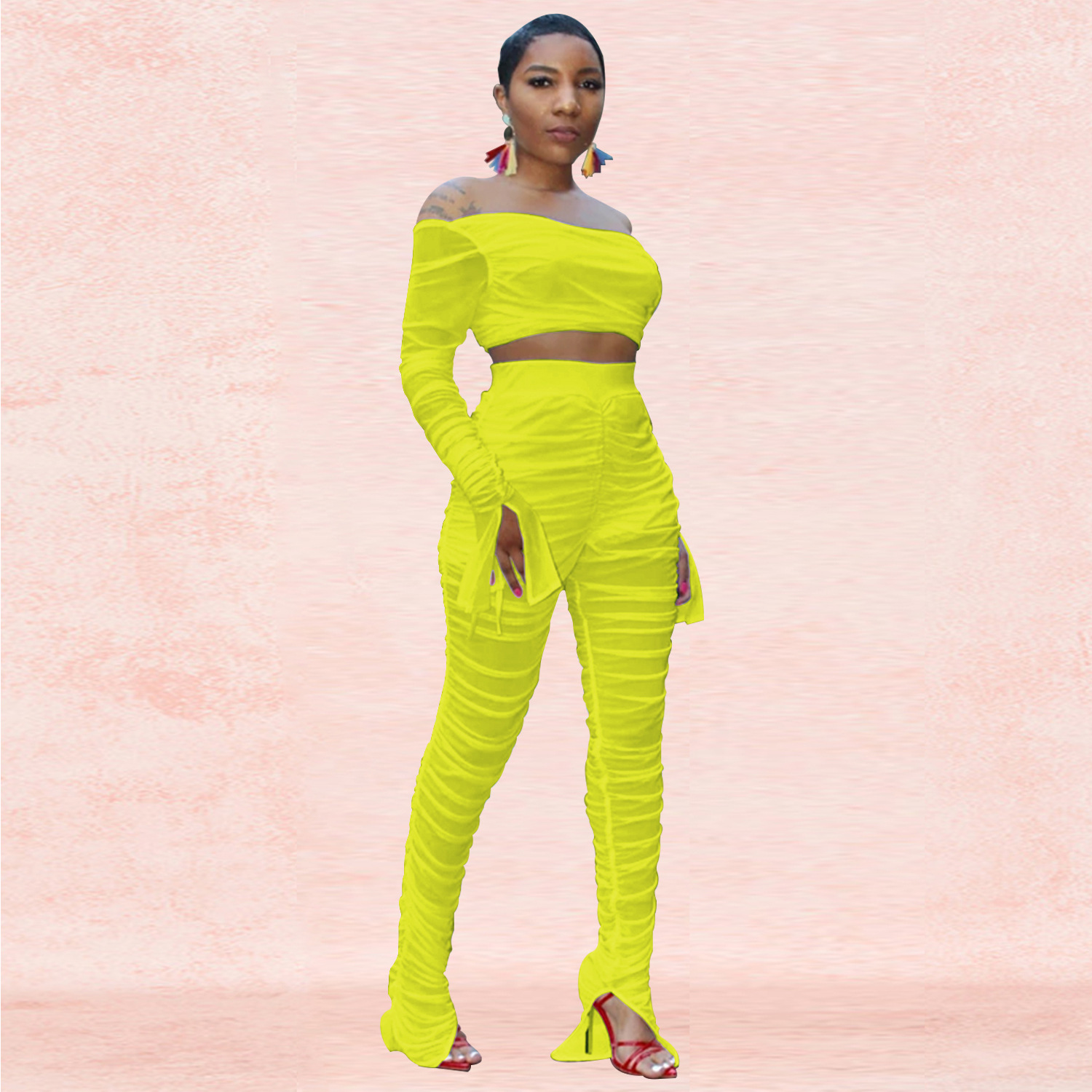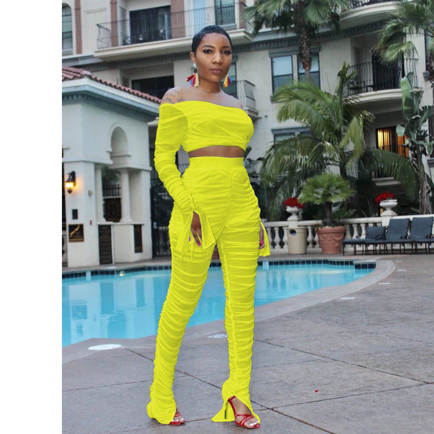 This Women Sexy Solid Elastic Pleated Top And Pants Two-Piece Set Design Made Of High Quality polyester And Spandex Material. It Is Stretchy, Durable And Comfortable. It Is a Must-Have Outfit For All Seasons. retail Two Piece Pant Sets Can Solve Your cloth selection Troubles. Explore More 2 Piece Pants Set On BamBam retail Women Clothing Online Store.