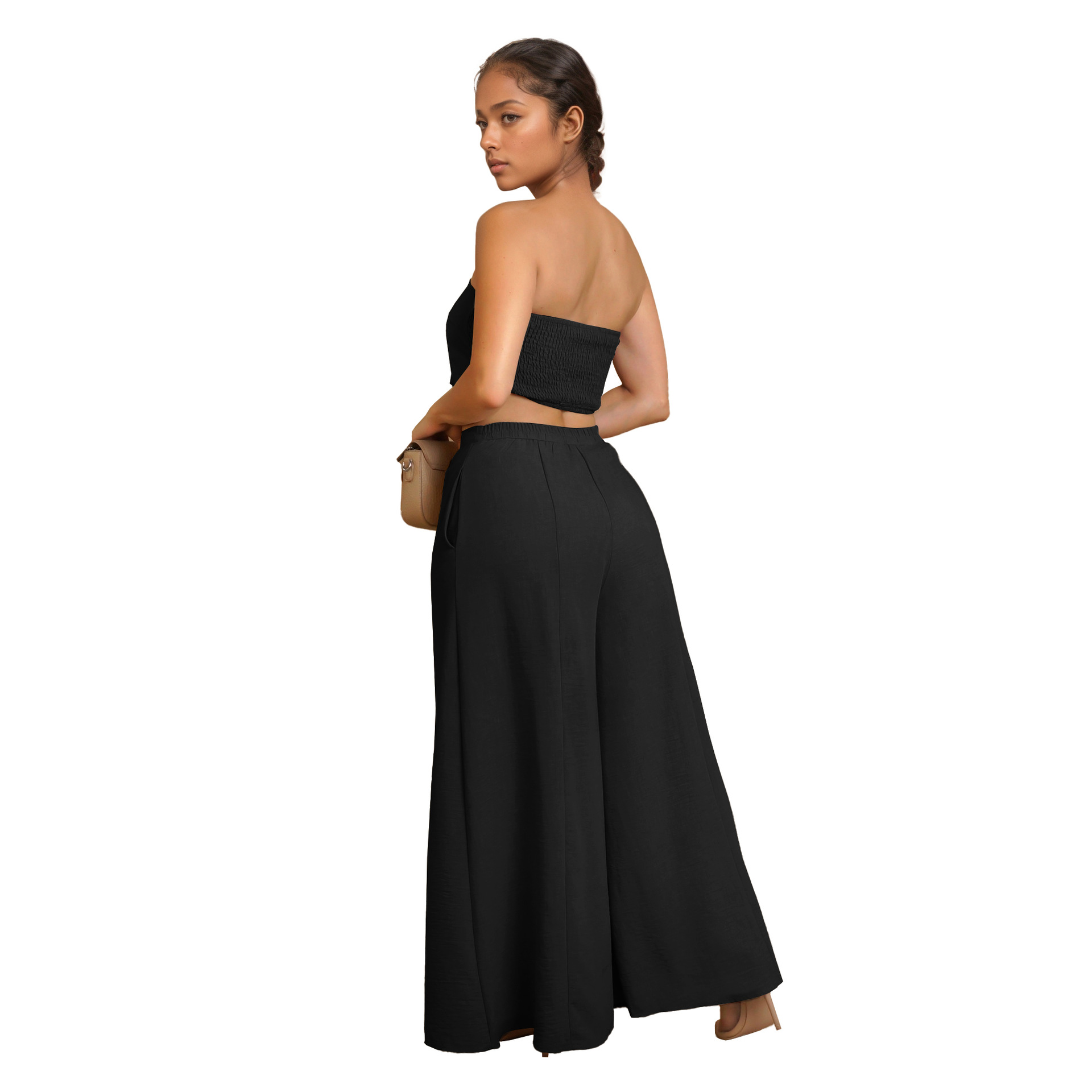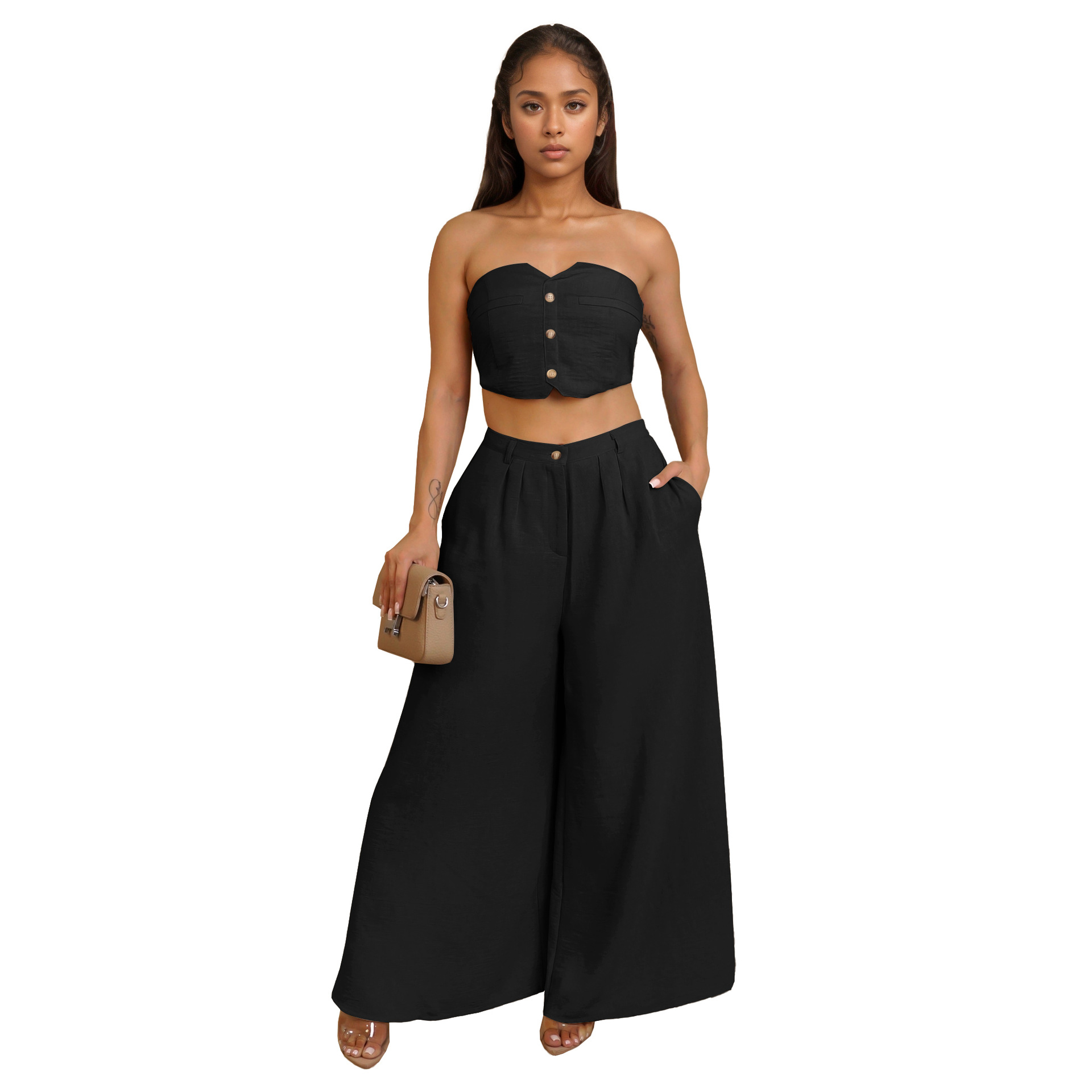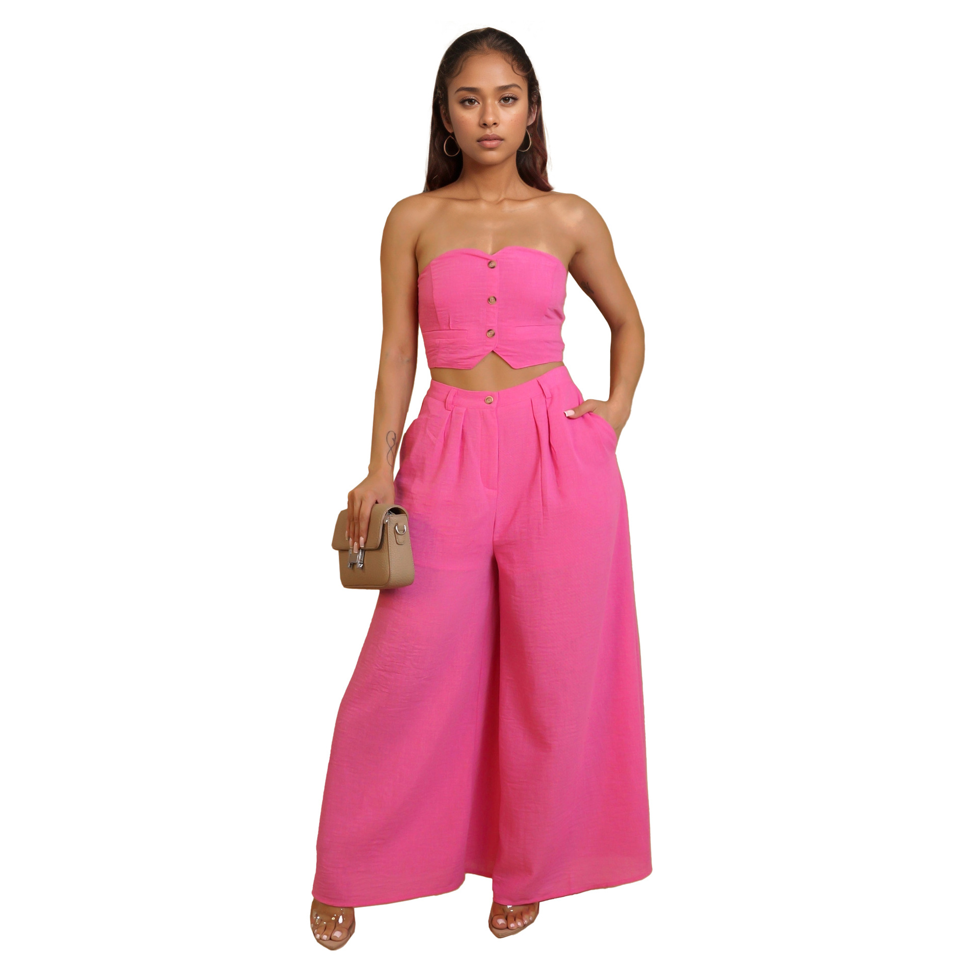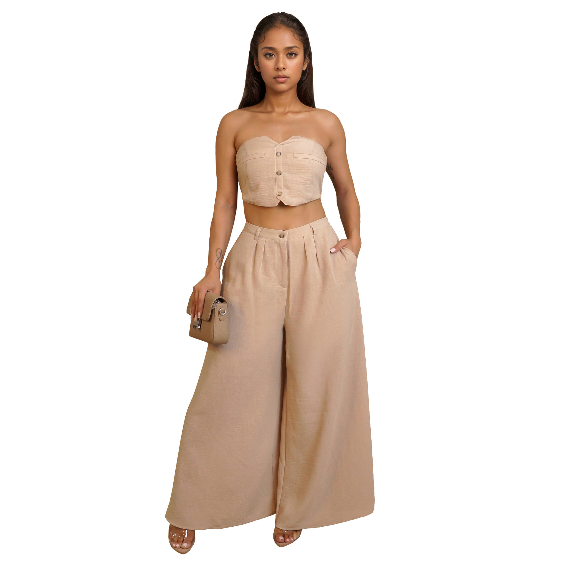This Women Sexy Sretchy Strapless Vest And Wide-Leg Pants Two-Piece Set Design Made Of High Quality polyester And Spandex Material. It Is Stretchy, Durable And Comfortable. It Is a Must-Have Outfit For All Seasons. retail Two Piece Pant Sets Can Solve Your cloth selection Troubles. Explore More 2 Piece Pants Set On BamBam retail Women Clothing Online Store.