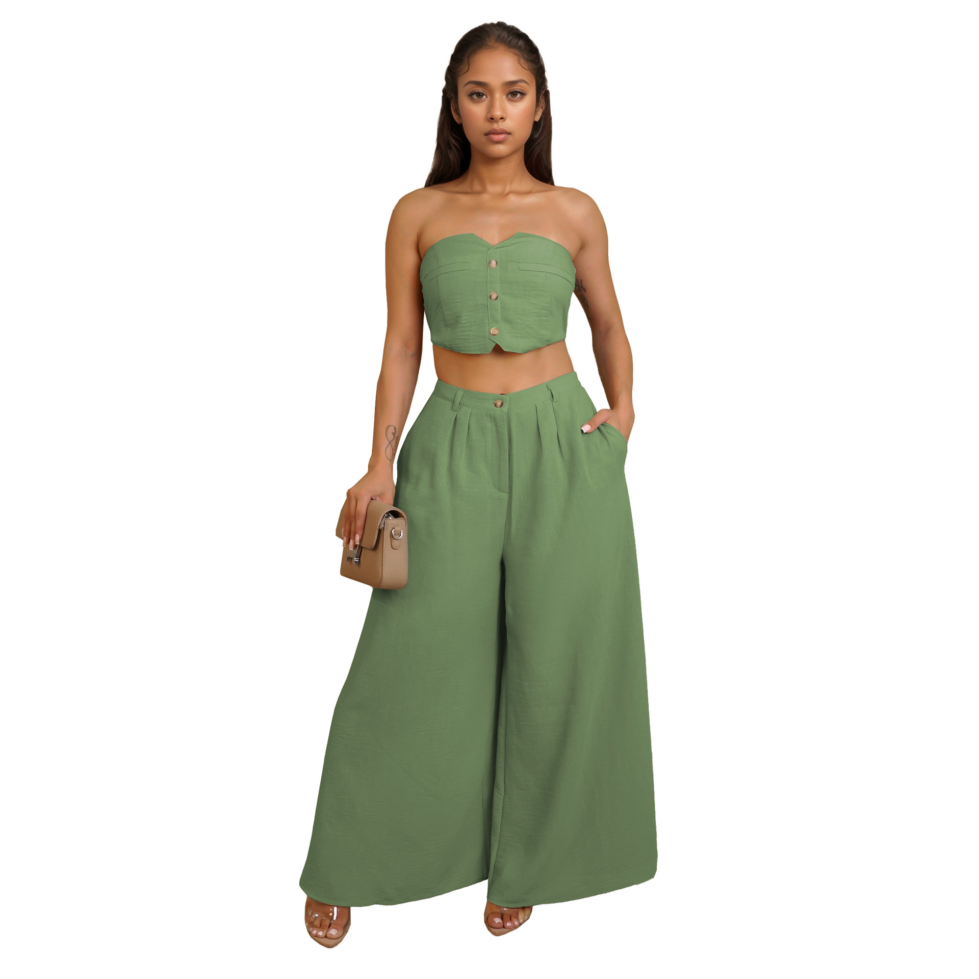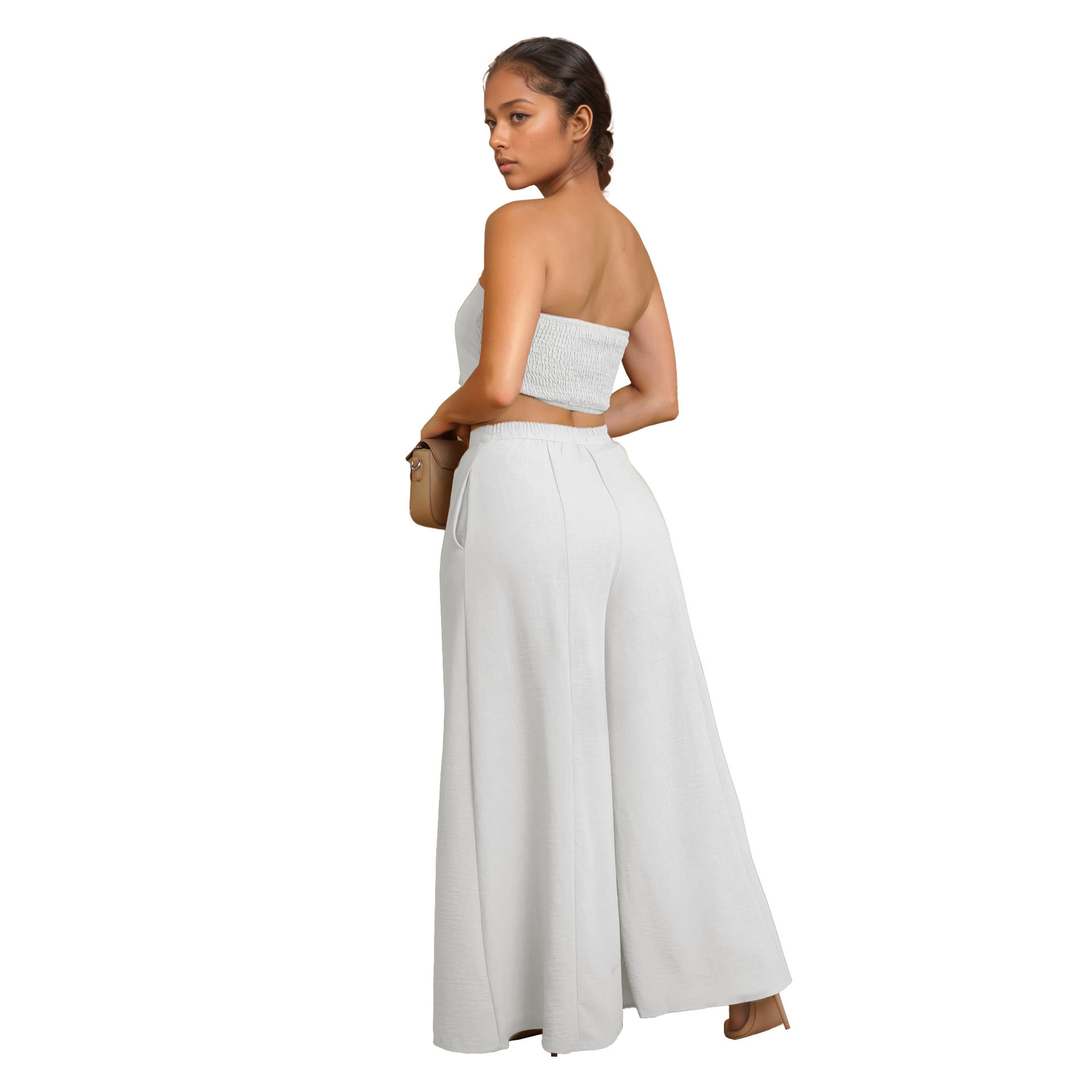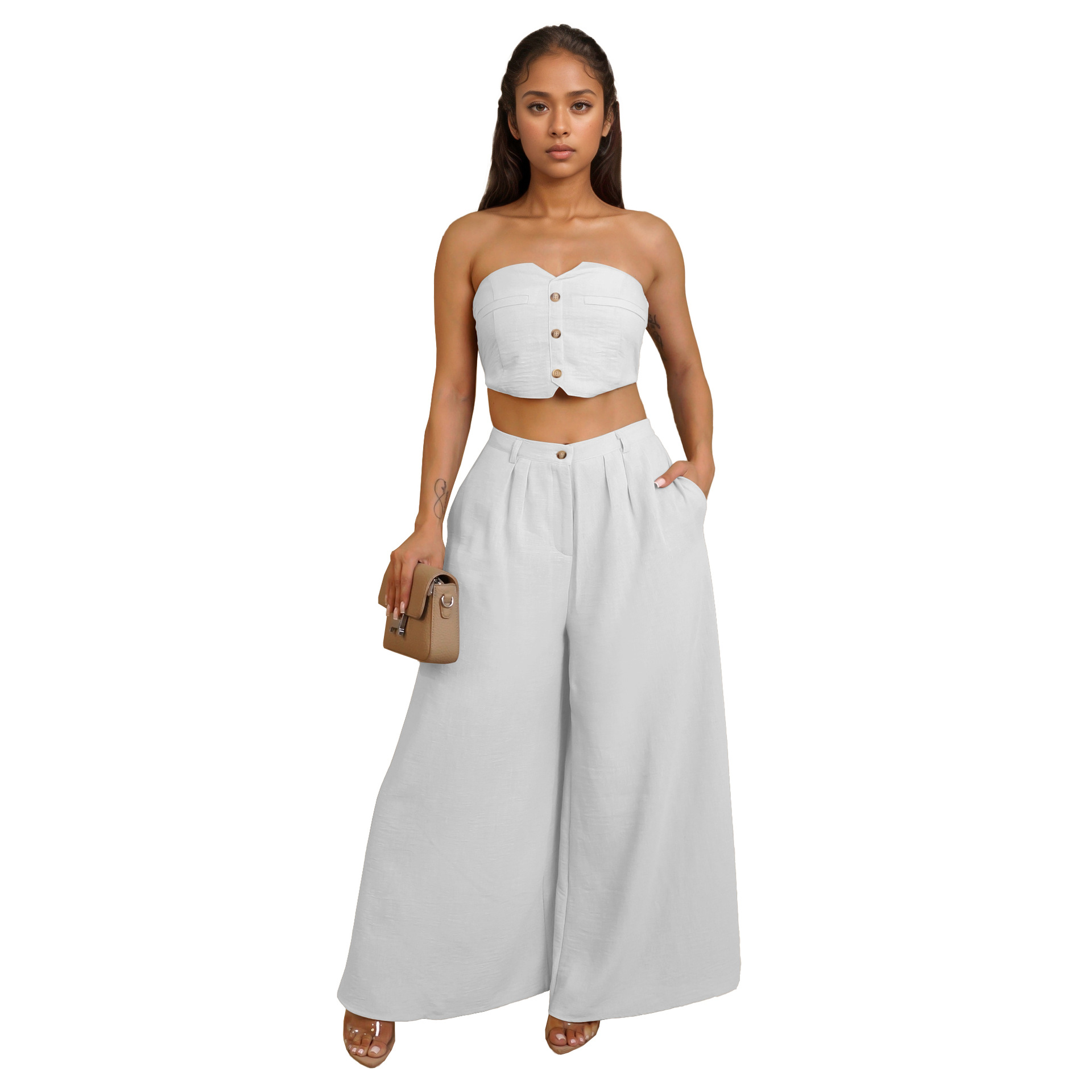 This Women Sexy Sretchy Strapless Vest And Wide-Leg Pants Two-Piece Set Design Made Of High Quality polyester And Spandex Material. It Is Stretchy, Durable And Comfortable. It Is a Must-Have Outfit For All Seasons. retail Two Piece Pant Sets Can Solve Your cloth selection Troubles. Explore More 2 Piece Pants Set On BamBam retail Women Clothing Online Store.
