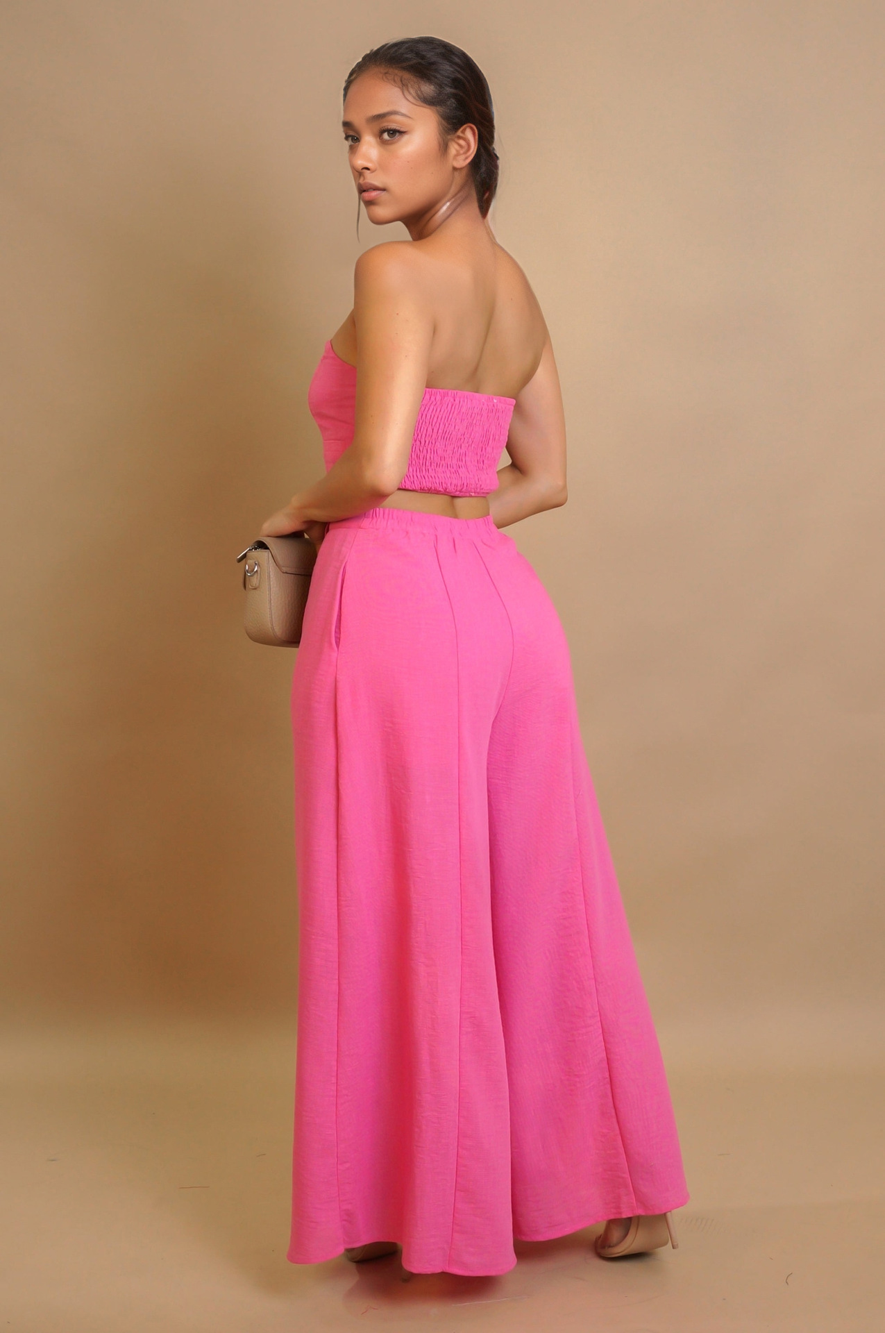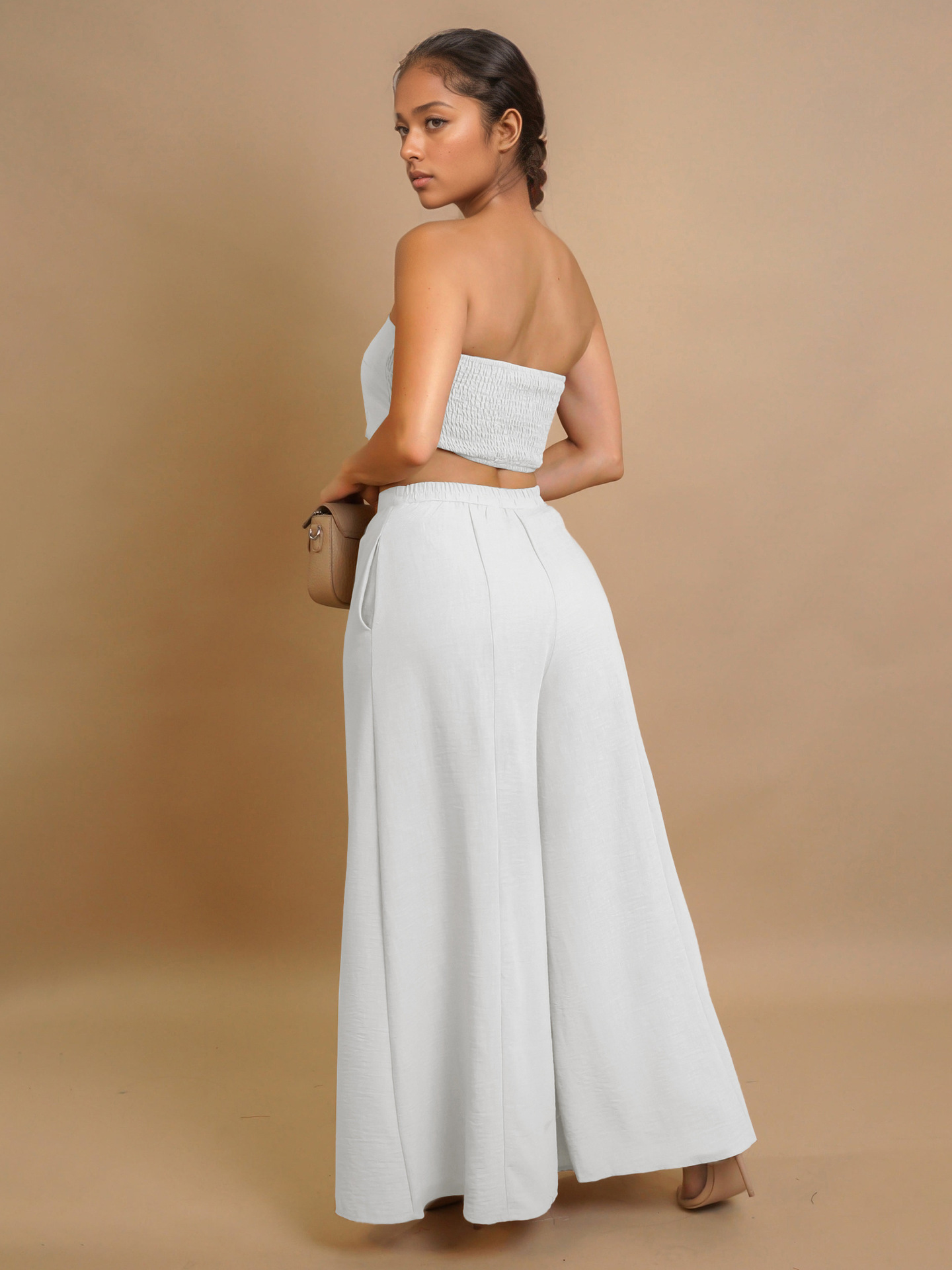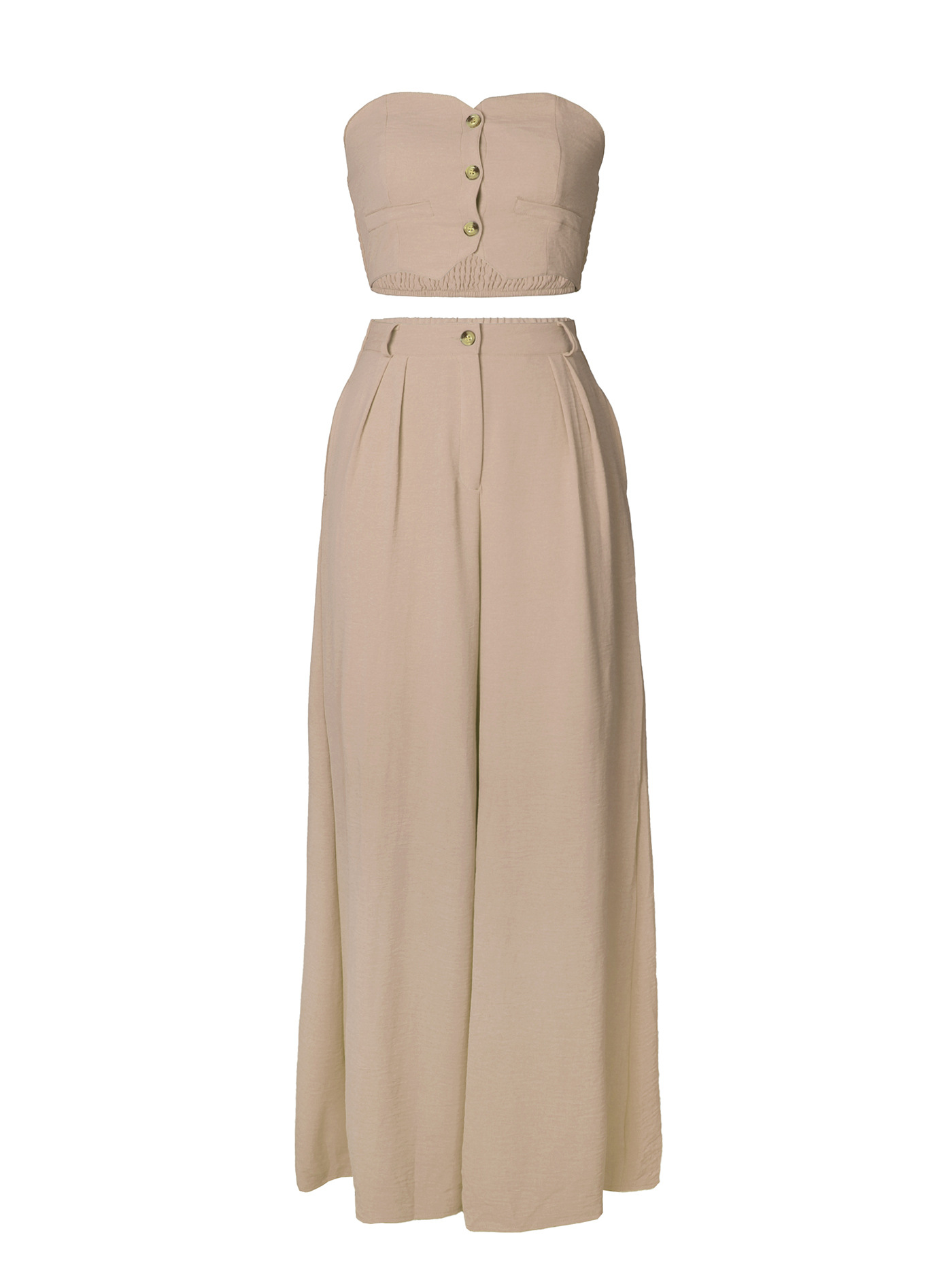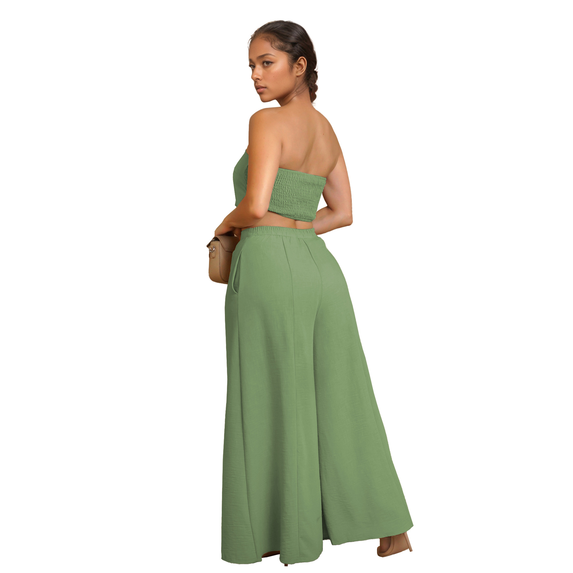This Women Sexy Sretchy Strapless Vest And Wide-Leg Pants Two-Piece Set Design Made Of High Quality polyester And Spandex Material. It Is Stretchy, Durable And Comfortable. It Is a Must-Have Outfit For All Seasons. retail Two Piece Pant Sets Can Solve Your cloth selection Troubles. Explore More 2 Piece Pants Set On BamBam retail Women Clothing Online Store.