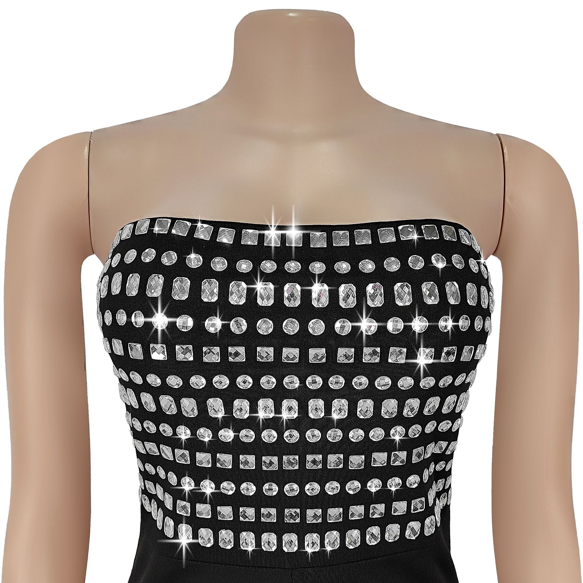 This Women Sexy Strapless Solid Beaded Jumpsuit Design Made Of High Quality Polyster And Spandex Material. It Is Stretchy, Durable And Comfortable. Affordable Sexy Jumpsuits For Women Has Long Been a Party Favorite. BamBam provides a Rich selection Of Sequin, Beaded, See Through Mesh, Leopard, Floral Lace, Leather, Velvet, Tight And Fitted retail Jumpsuit Without Moq Limit.