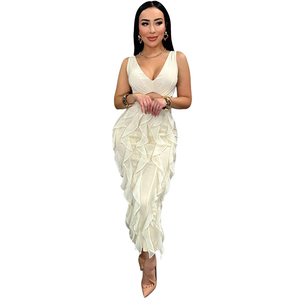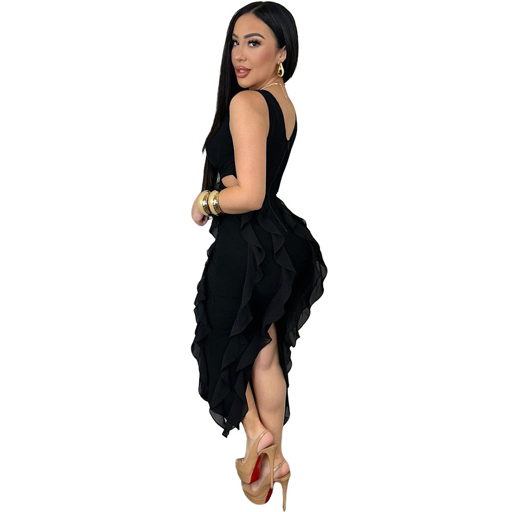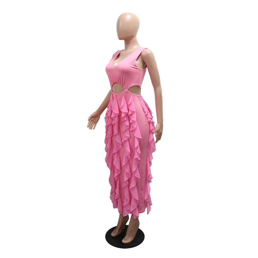 This Women Sexy v-Neck Sleeveless Solid Ruffle Slit Dress Design Made Of Good Quality Polyester And Spandex Material, Which Is Stretchy, Durable And Comfortable. The Long Evening Dresses And Gowns Is Always The main Choice For All Kinds Of Parties, Cocktail, Prom, Events, And Dating Occasions. Evening Gowns At BamBam Comes With Huge Selections - Sequins, Beaded, Satin, Velvet, Lace.... When You Need retail Evening Dresses, BamBam retail Women Garment Online Shop Is Your One-Stop Online Shopping Choice.