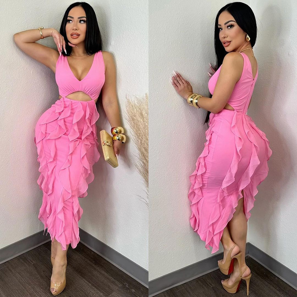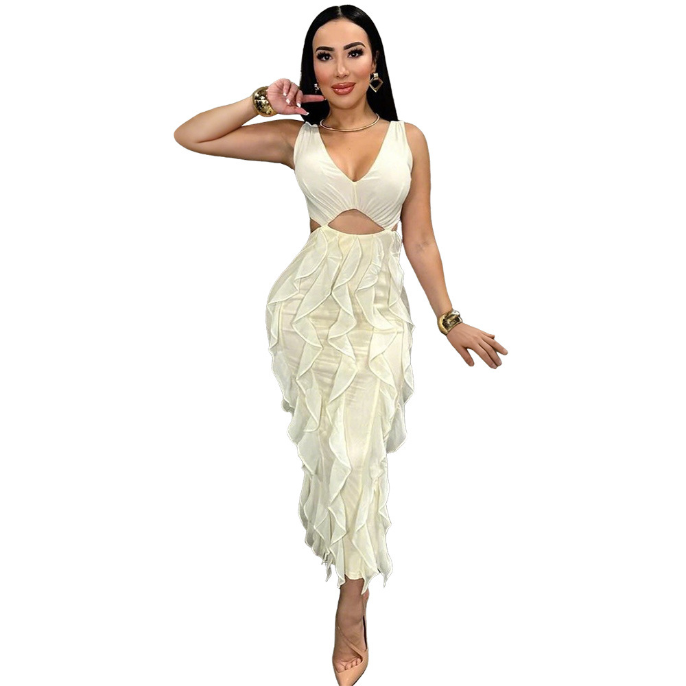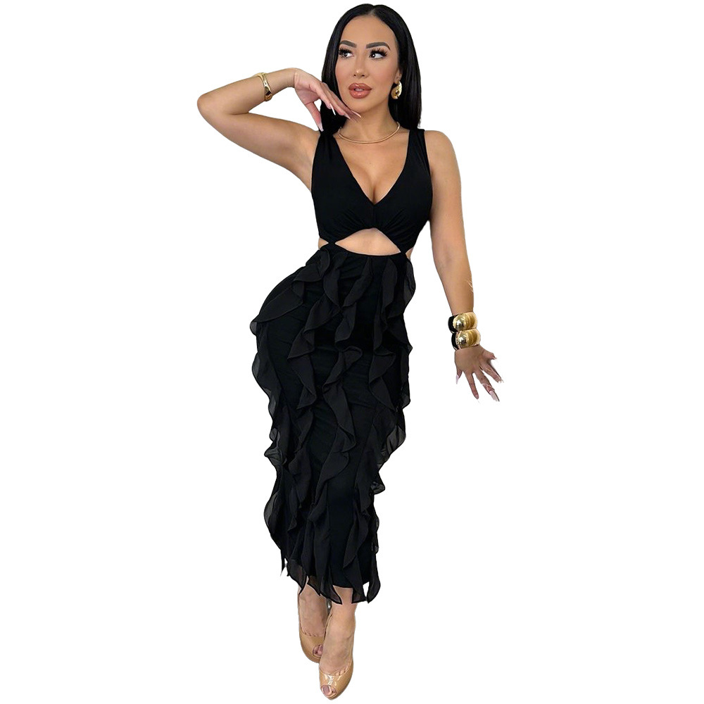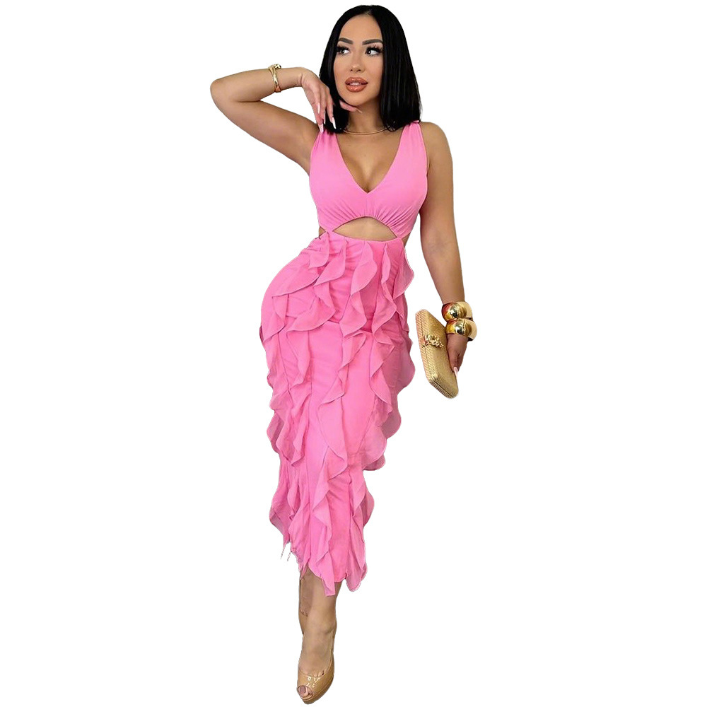 This Women Sexy v-Neck Sleeveless Solid Ruffle Slit Dress Design Made Of Good Quality Polyester And Spandex Material, Which Is Stretchy, Durable And Comfortable. The Long Evening Dresses And Gowns Is Always The main Choice For All Kinds Of Parties, Cocktail, Prom, Events, And Dating Occasions. Evening Gowns At BamBam Comes With Huge Selections - Sequins, Beaded, Satin, Velvet, Lace.... When You Need retail Evening Dresses, BamBam retail Women Garment Online Shop Is Your One-Stop Online Shopping Choice.