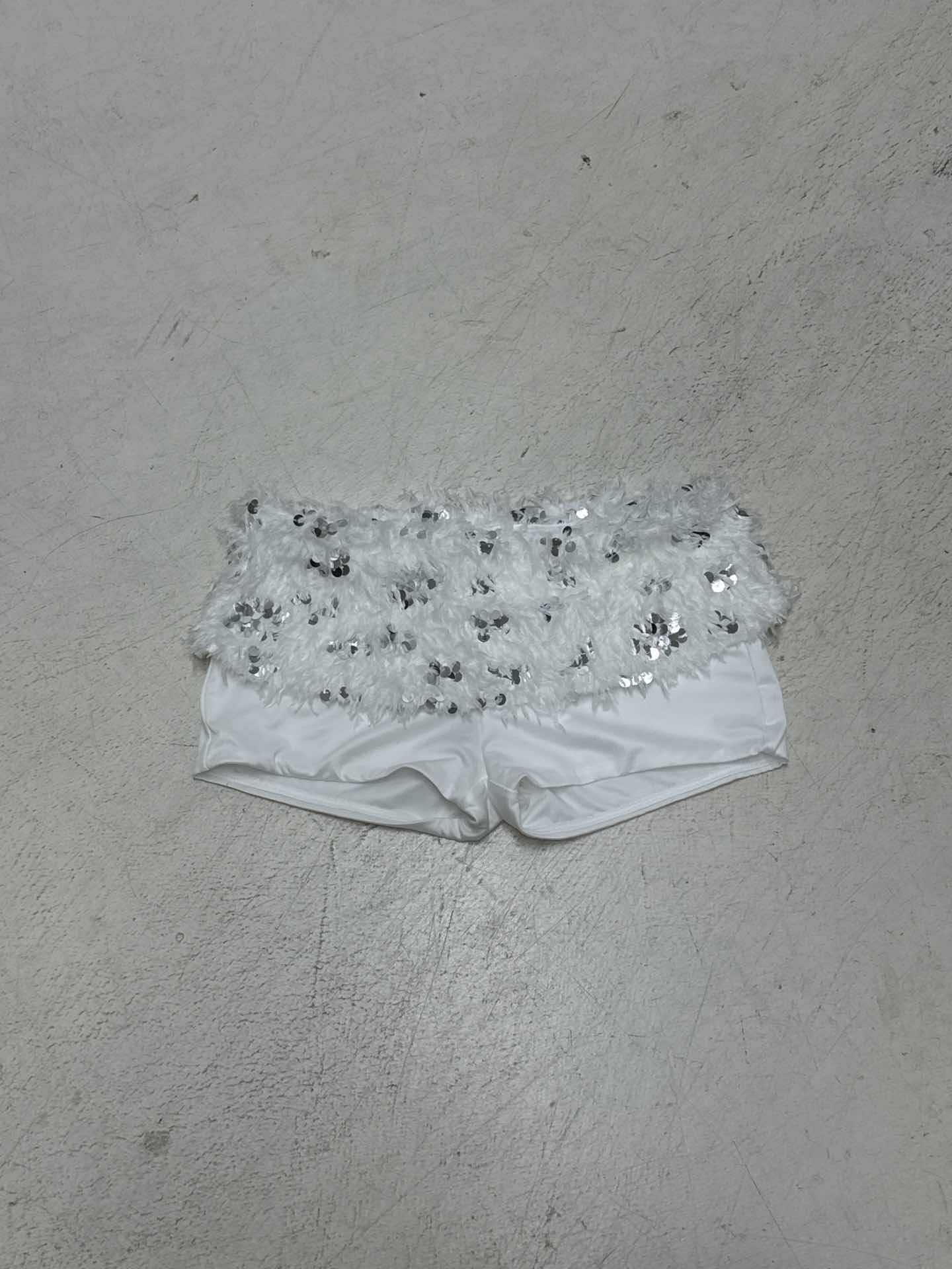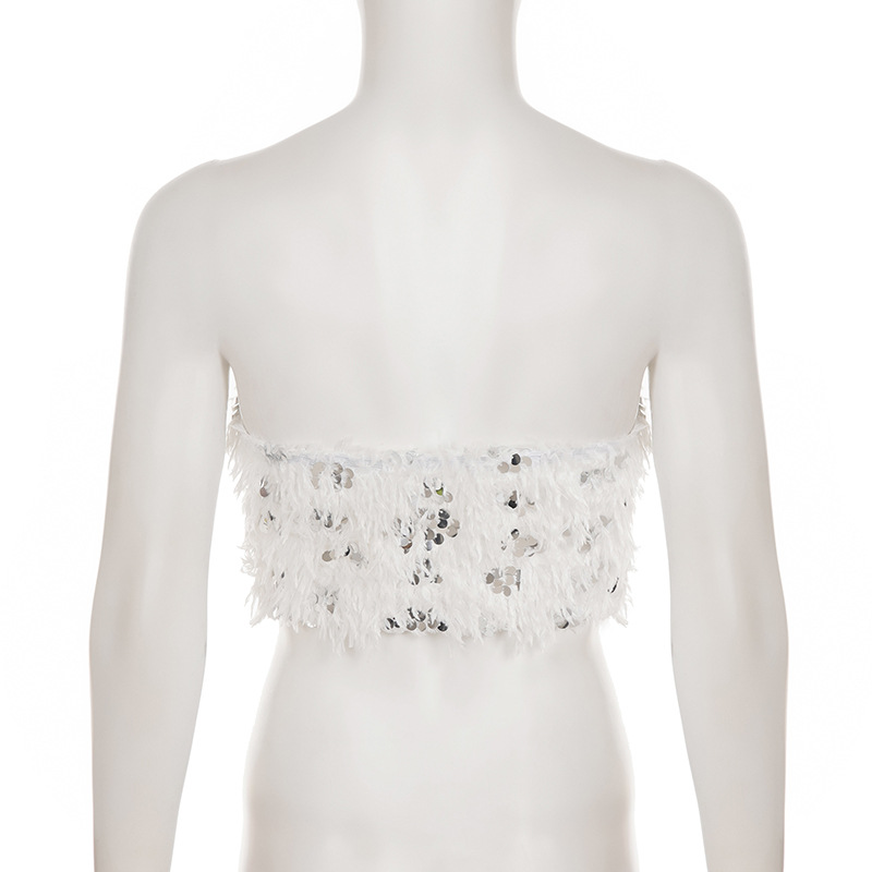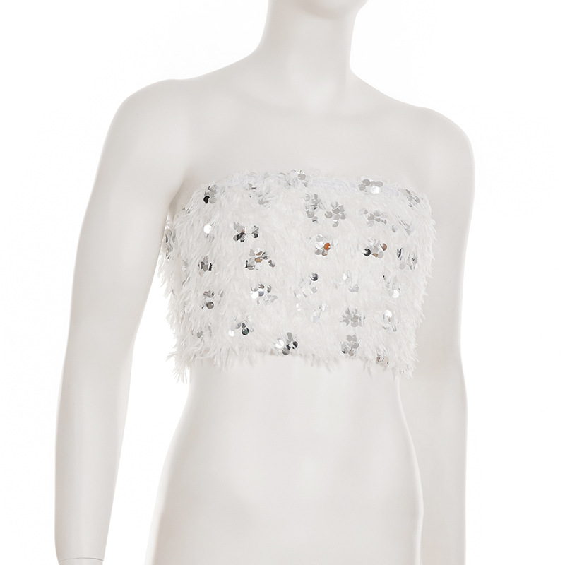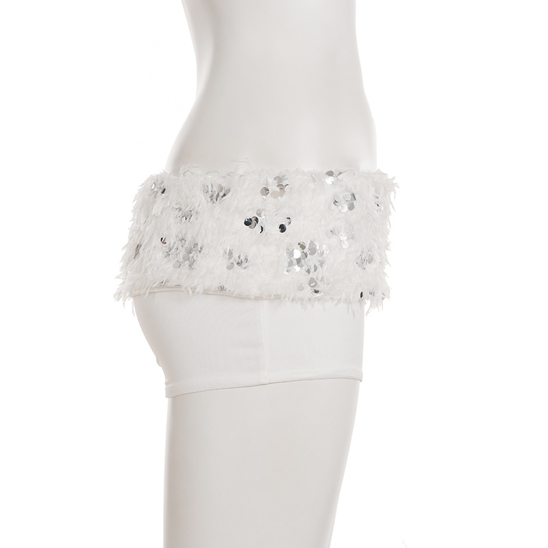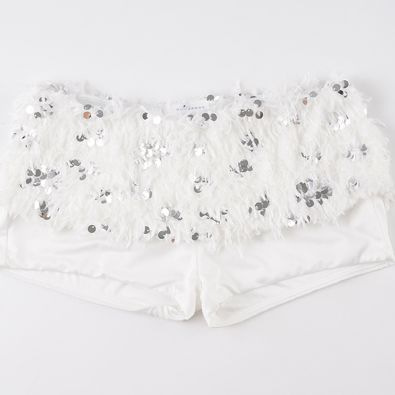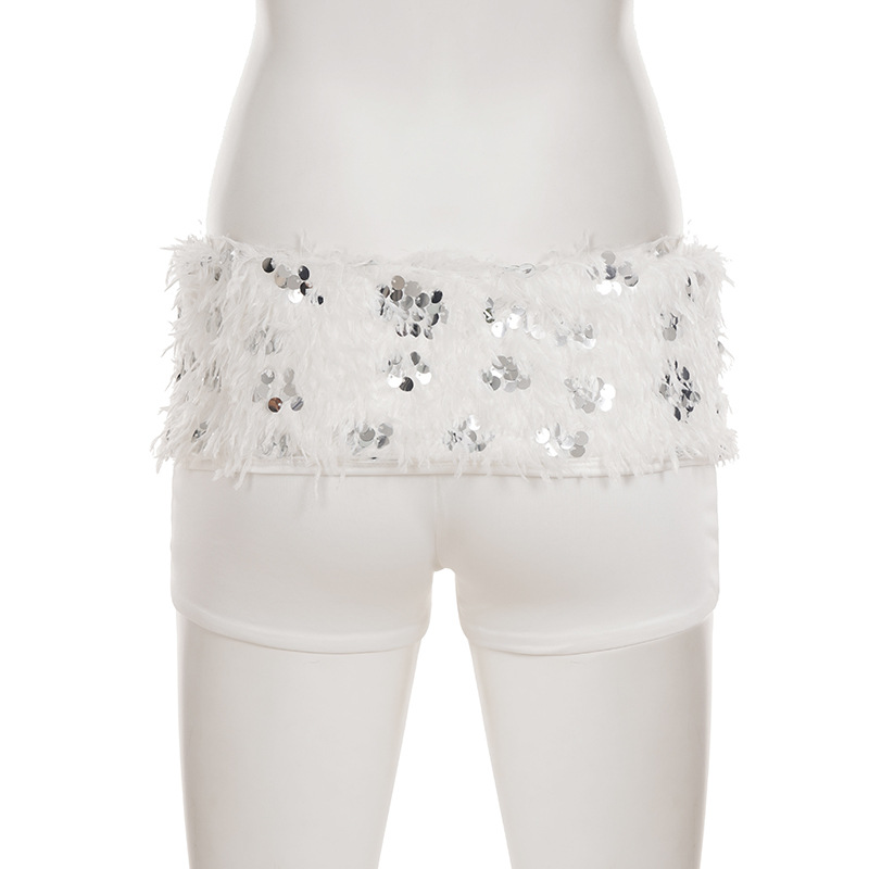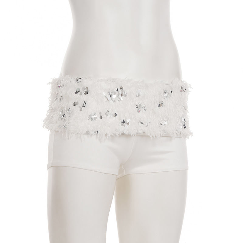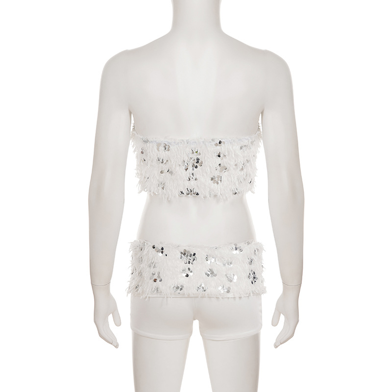 This Women Sexy White Sequined Fur Patchwork Strapless Top And Shorts Two-Piece Set Design Made Of High Quality polyester And Spandex Material. It Is Stretchy, Durable And Comfortable. It Come With The Top And Shorts. retail Short Sets Saves Some People From The Trouble Of Matching. And For Matchmakers It Is More Flexible Than One-Piece Outfit. Two Piece Short Set Can Be Worn Together Or Individually, Ladies Can Match Them According To Different Occasions. Grab Different Two Piece Short Sets For This Spring And Summer.