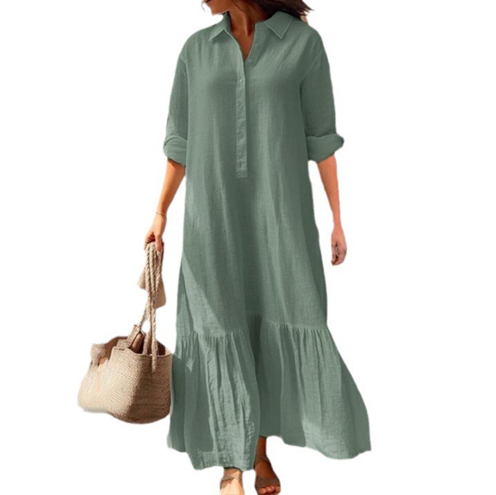 This Women Shirt Collar Button Irregular Dress Design Made Of High Quality polyester And Spandex Material. It Is Stretchy, Durable And Comfortable. Casual Dresses With Long Sleeves Can Not Only Be Worn As Outerwear In Spring And Autumn, But Also Matching a Jacket In Winter, It Is a Must Have Item For Every Season. Grab Really Great Buy Casual Dresses For Women And Grow Your Business. No Moq In BamBam.
