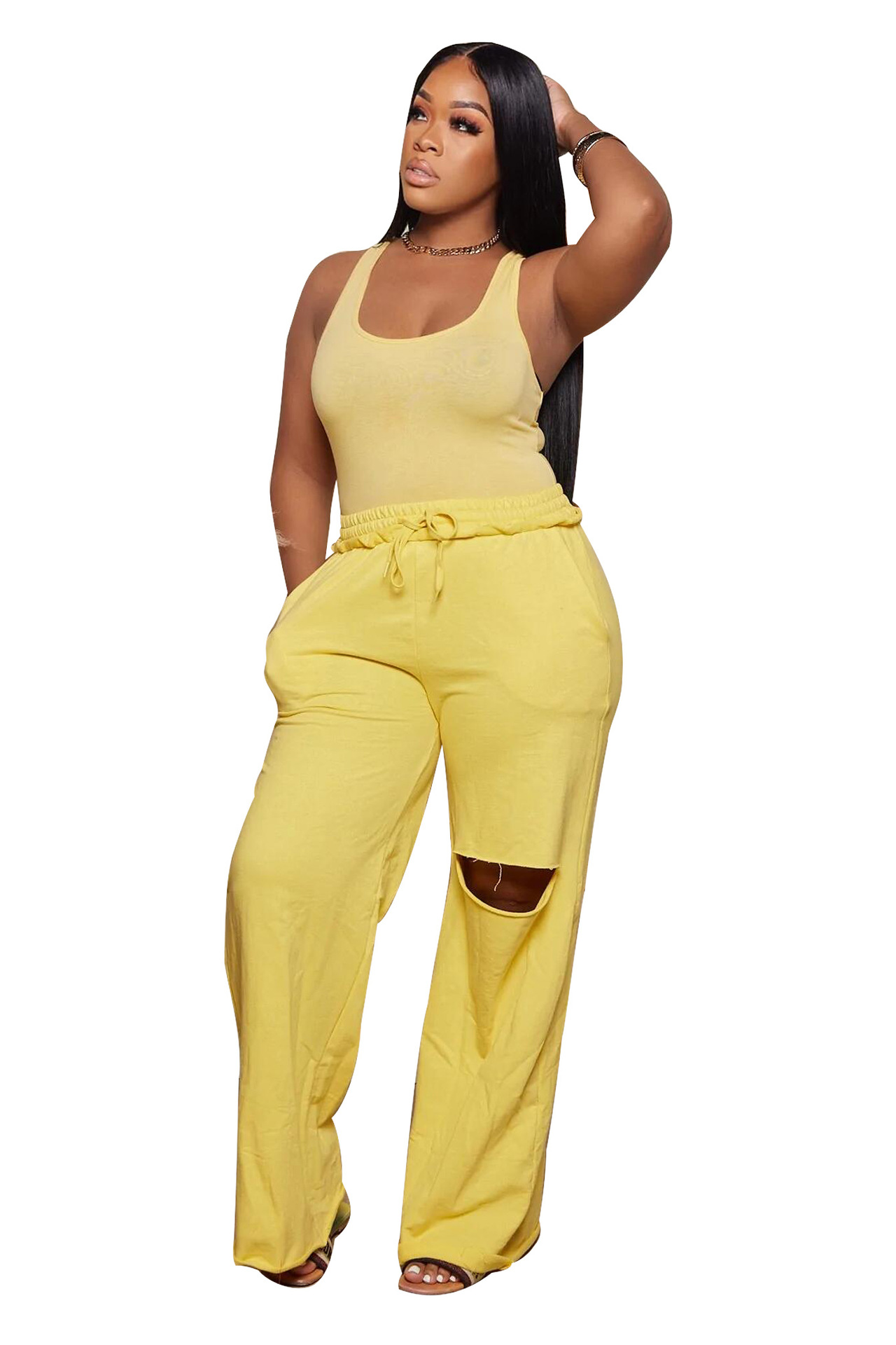 This Women Sleeveless Bodysuit+ Ripped Wide Leg Pants Two Piece Design Made Of High Quality polyester And Spandex Material. It Is Stretchy, Durable And Comfortable. It Is a Must-Have Outfit For All Seasons. retail Two Piece Pant Sets Can Solve Your cloth selection Troubles. Explore More 2 Piece Pants Set On BamBam retail Women Clothing Online Store.