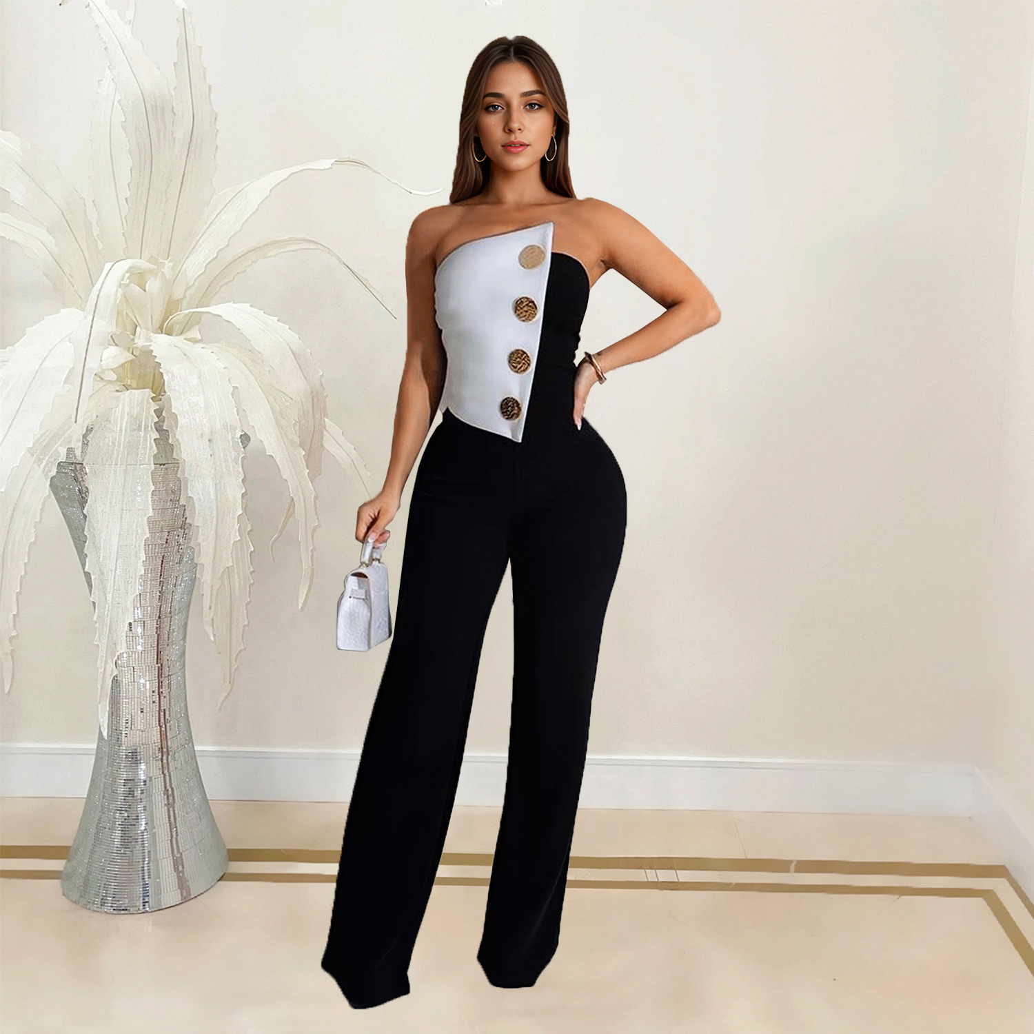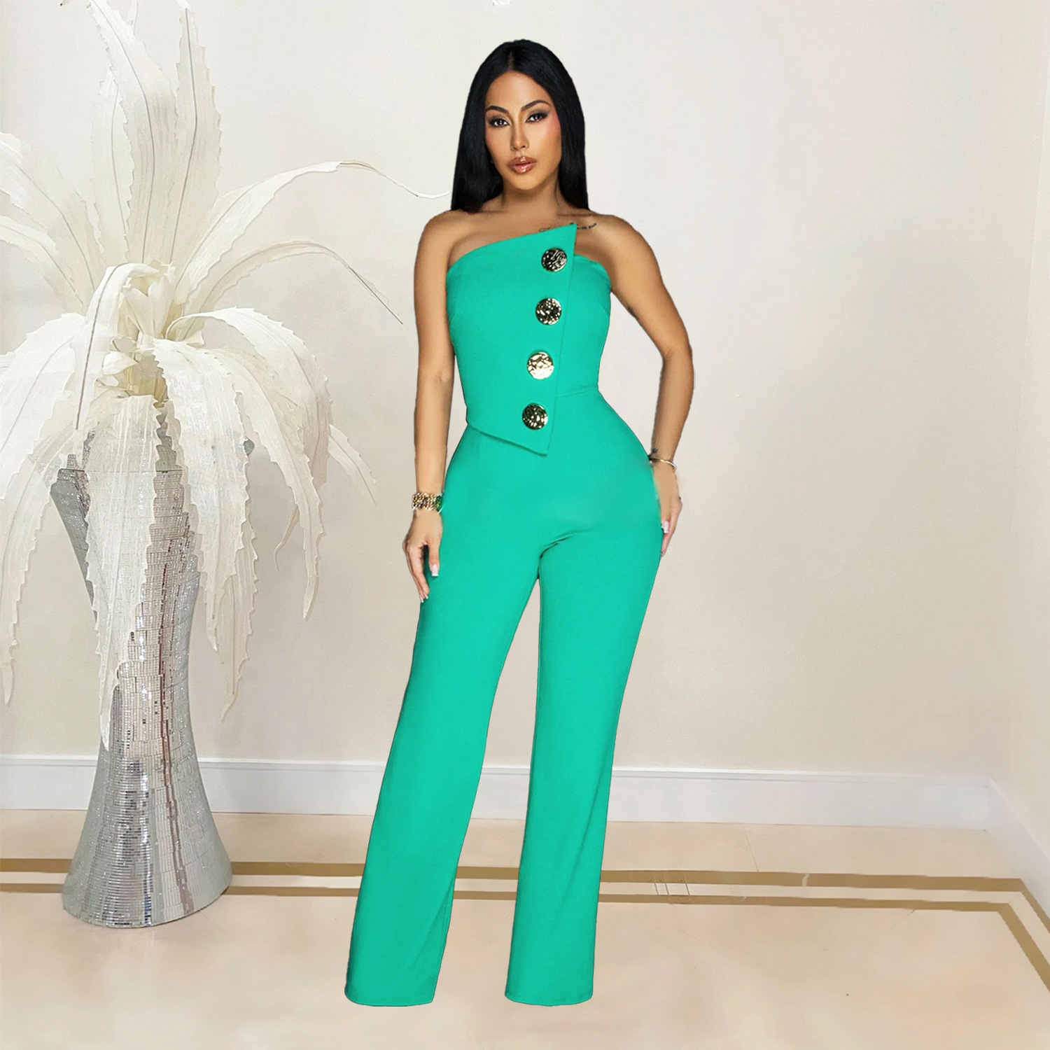 This Women Sleeveless Button Jumpsuit Design Made Of High Quality Polyster And Spandex Material. It Is Stretchy, Durable And Comfortable. Affordable Sexy Jumpsuits For Women Has Long Been a Party Favorite. BamBam provides a Rich selection Of Sequin, Beaded, See Through Mesh, Leopard, Floral Lace, Leather, Velvet, Tight And Fitted retail Jumpsuit Without Moq Limit.