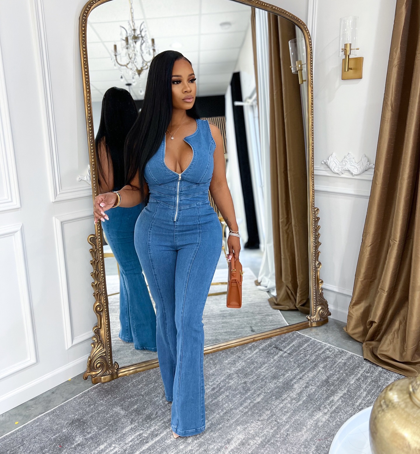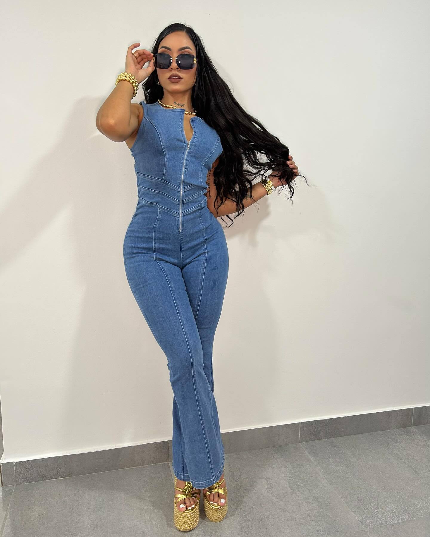 This Women Sleeveless Denim Jumpsuit Design Made Of High Quality Polyster And Spandex Material. It Is Stretchy, Durable And Comfortable. Affordable Sexy Jumpsuits For Women Has Long Been a Party Favorite. BamBam provides a Rich selection Of Sequin, Beaded, See Through Mesh, Leopard, Floral Lace, Leather, Velvet, Tight And Fitted retail Jumpsuit Without Moq Limit.