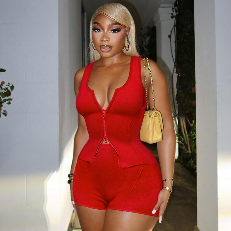 This Women Sleeveless Zipper Vest Top And Shorts Two-Piece Set Design Made Of High Quality polyester And Spandex Material. It Is Stretchy, Durable And Comfortable. It Come With The Top And Shorts. retail Short Sets Saves Some People From The Trouble Of Matching. And For Matchmakers It Is More Flexible Than One-Piece Outfit. Two Piece Short Set Can Be Worn Together Or Individually, Ladies Can Match Them According To Different Occasions. Grab Different Two Piece Short Sets For This Spring And Summer.