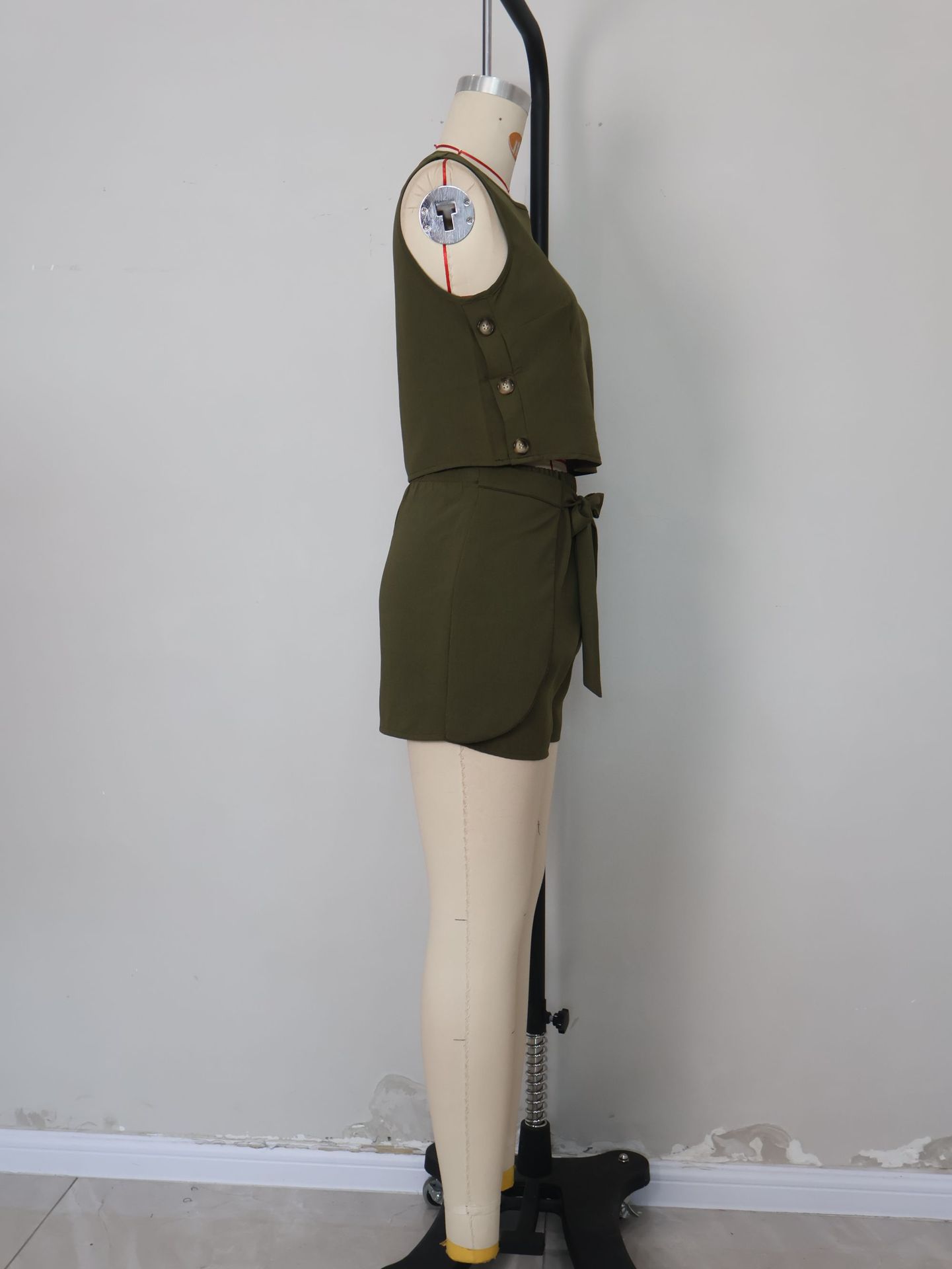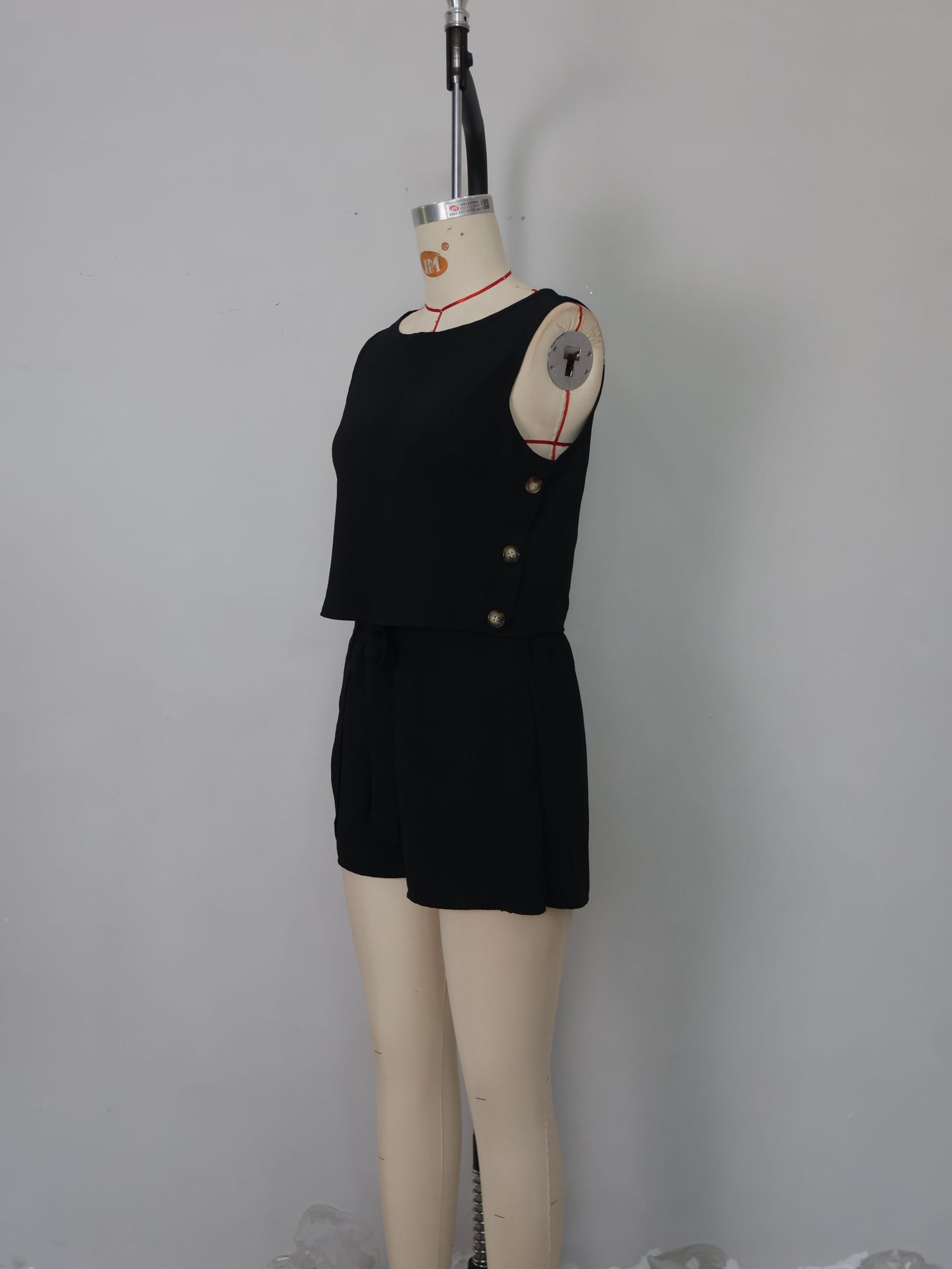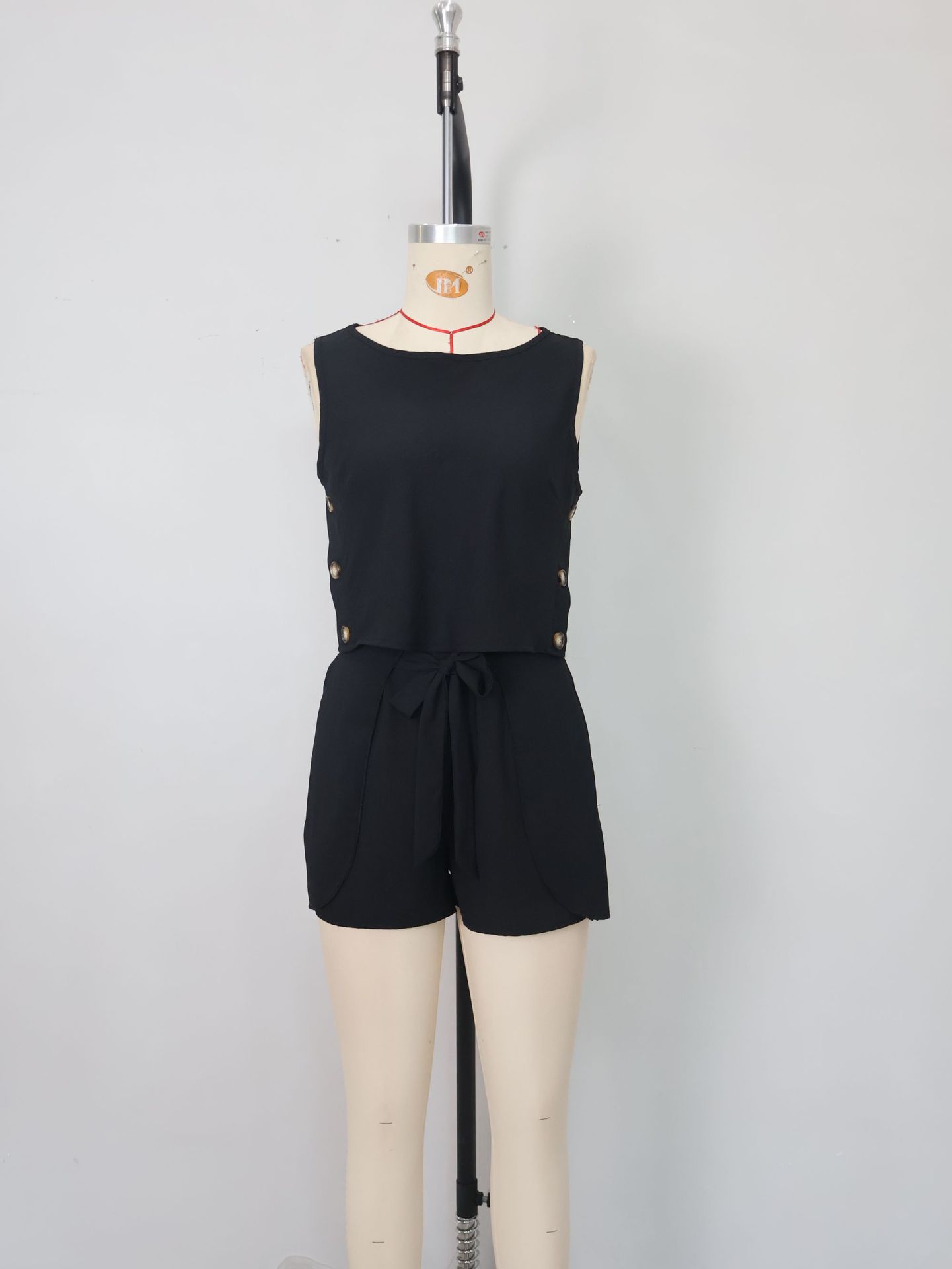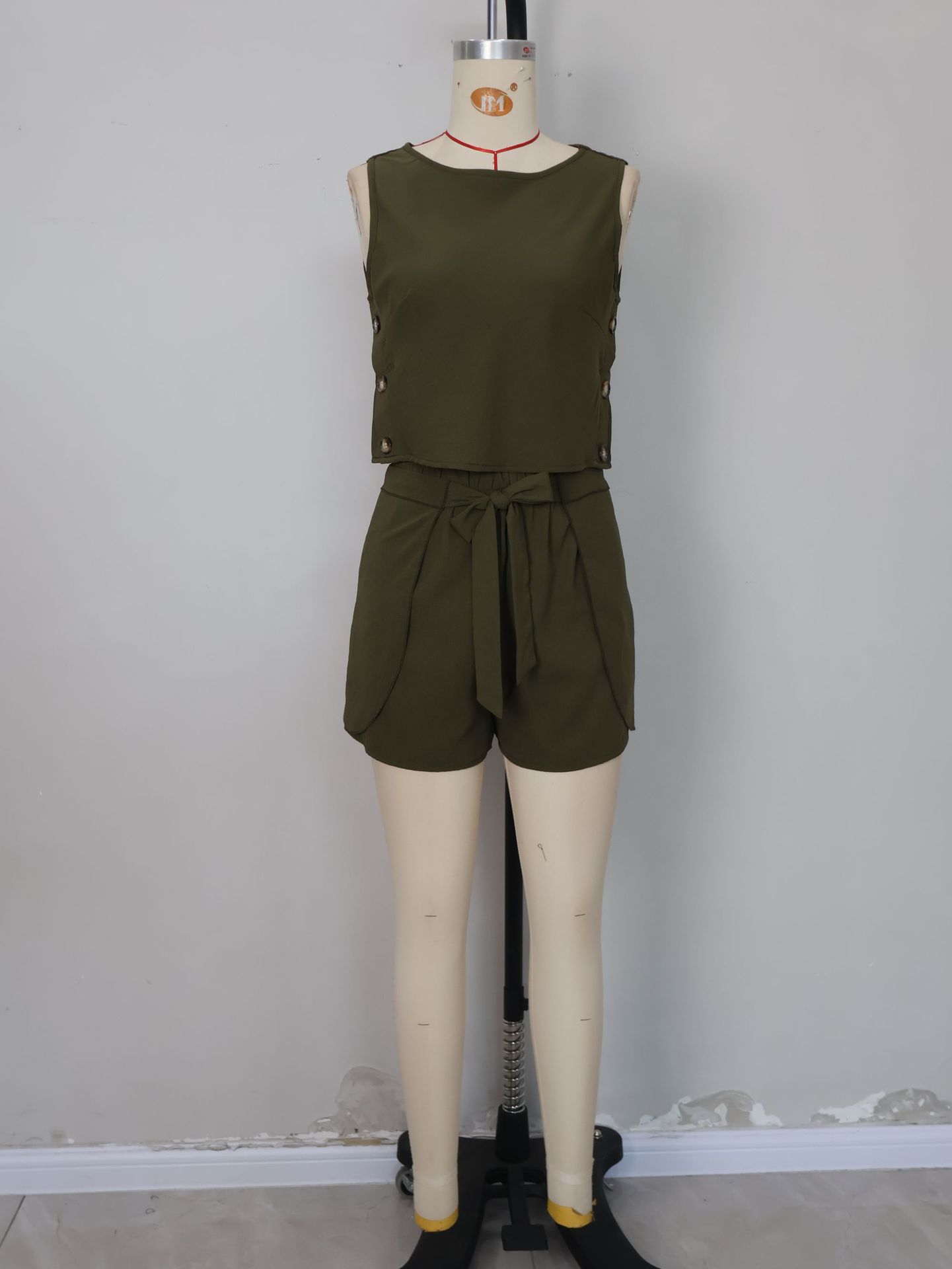This Women Solid Button Lotus Leaf Lace-Up Bow Sleeveless Top And Shorts Two-Piece Set Design Made Of High Quality polyester And Spandex Material. It Is Stretchy, Durable And Comfortable. It Come With The Top And Shorts. retail Short Sets Saves Some People From The Trouble Of Matching. And For Matchmakers It Is More Flexible Than One-Piece Outfit. Two Piece Short Set Can Be Worn Together Or Individually, Ladies Can Match Them According To Different Occasions. Grab Different Two Piece Short Sets For This Spring And Summer.