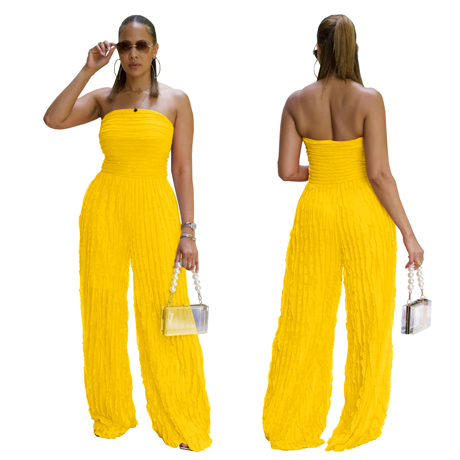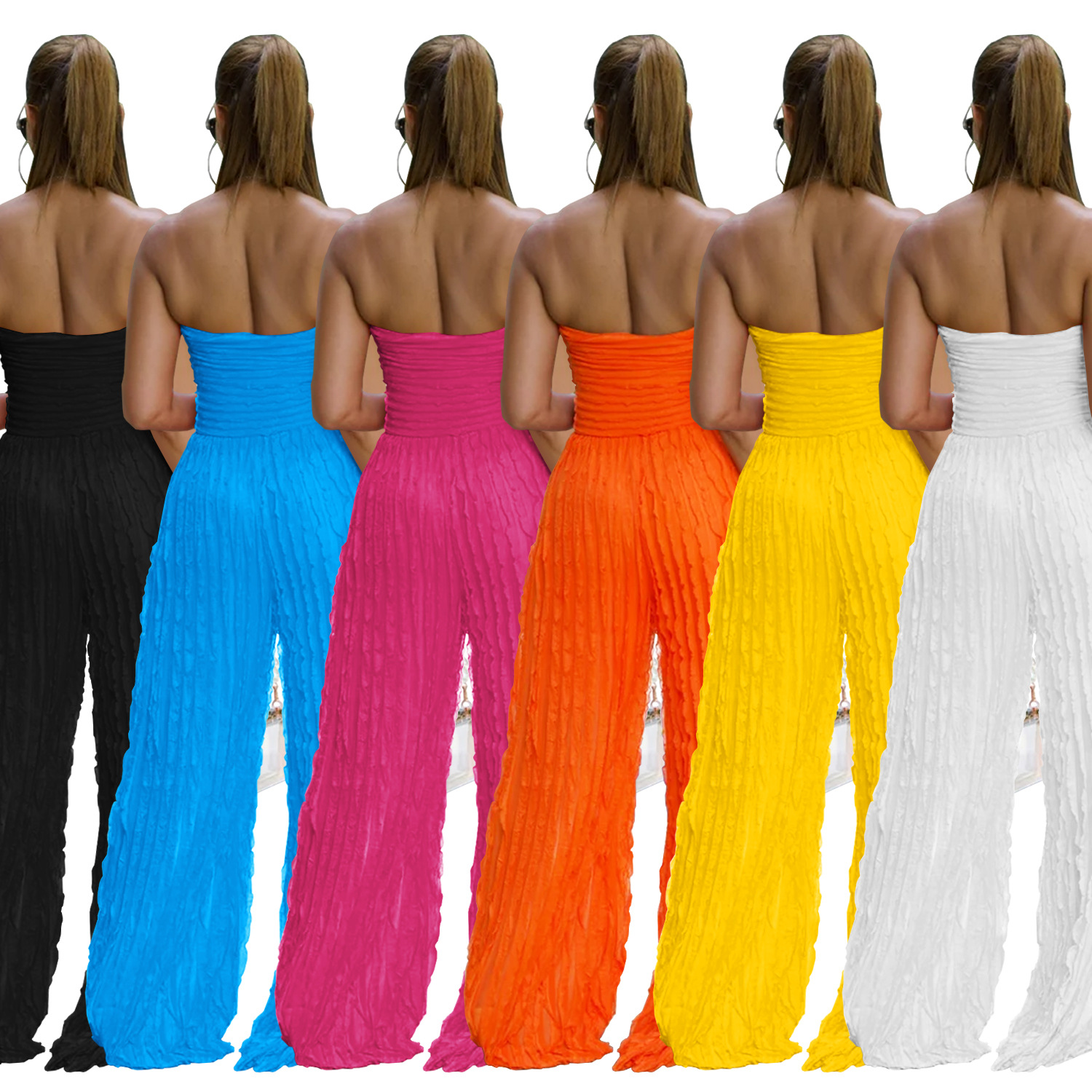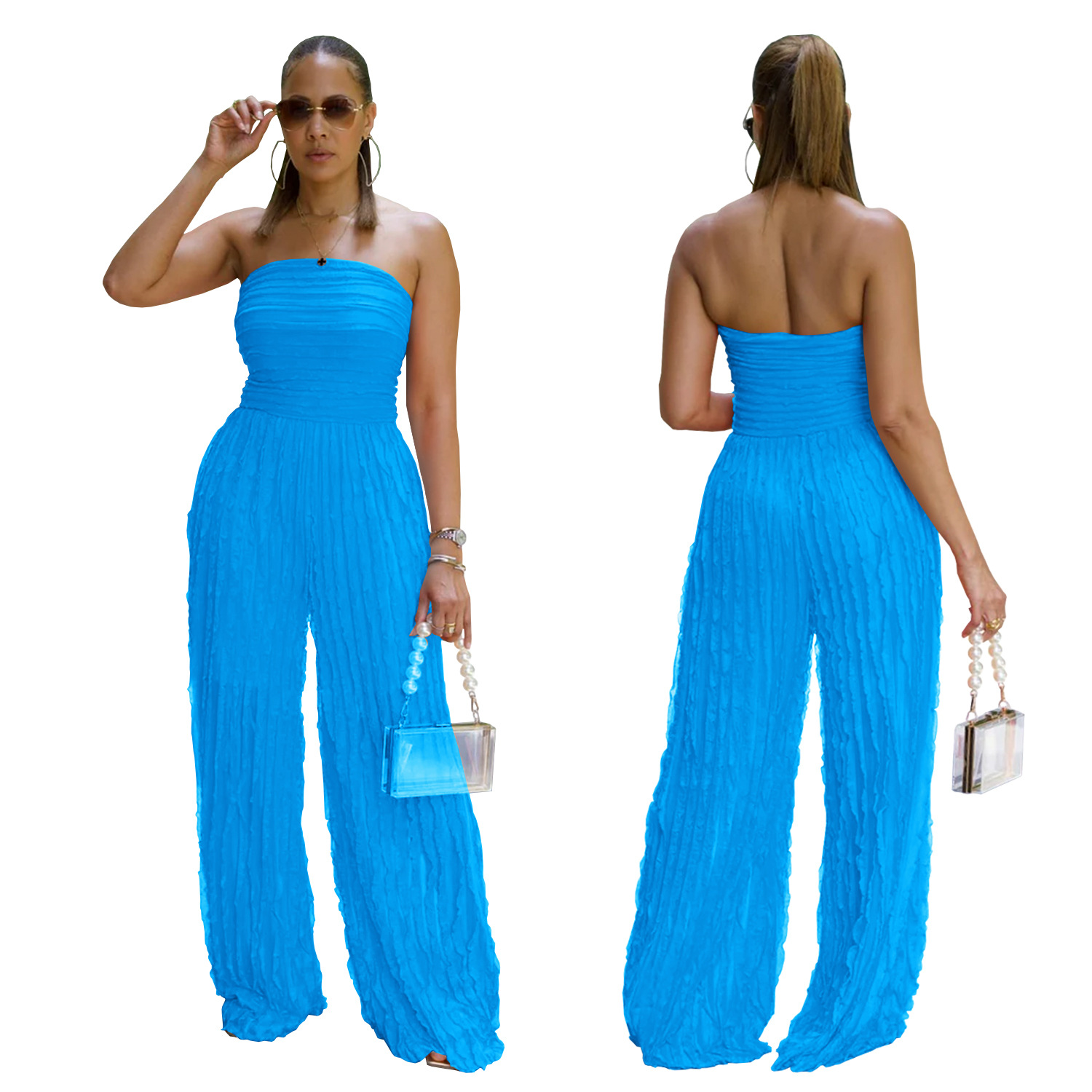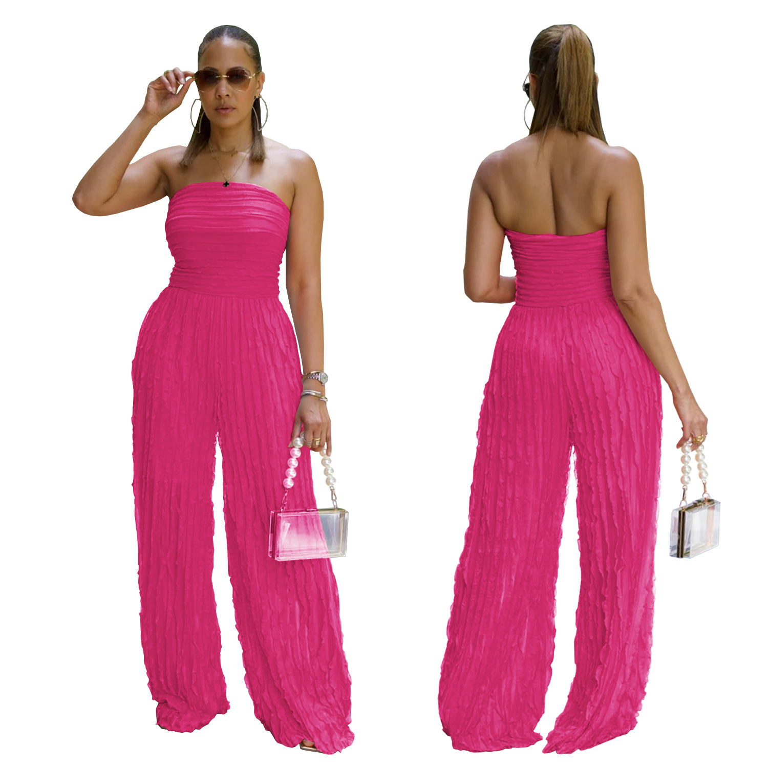 This Women Solid Casual Wave Pattern Jumpsuit Design Made Of High Quality Polyster And Spandex Material. It Is Stretchy, Durable And Comfortable. Affordable Sexy Jumpsuits For Women Has Long Been a Party Favorite. BamBam provides a Rich selection Of Sequin, Beaded, See Through Mesh, Leopard, Floral Lace, Leather, Velvet, Tight And Fitted retail Jumpsuit Without Moq Limit.