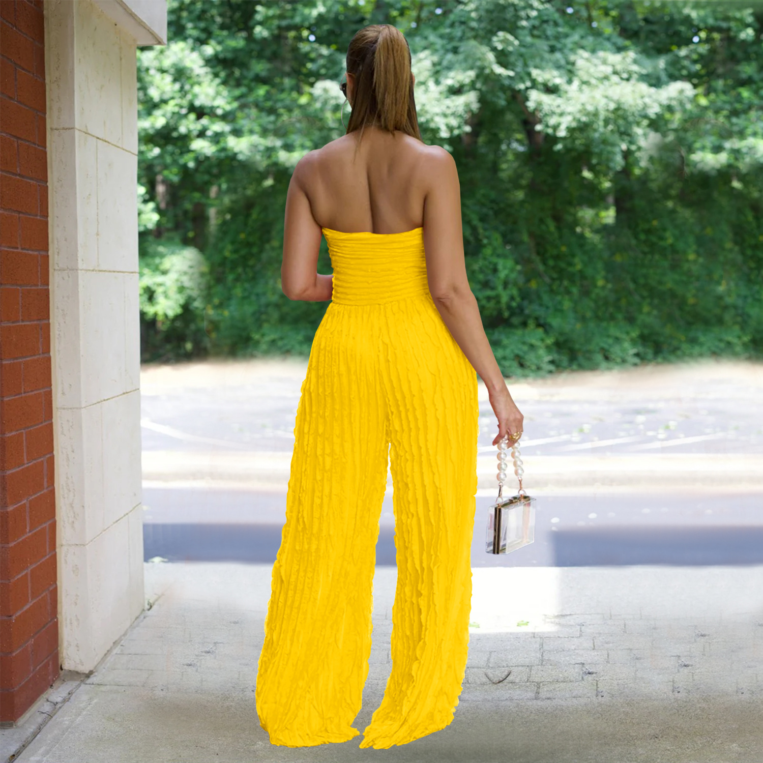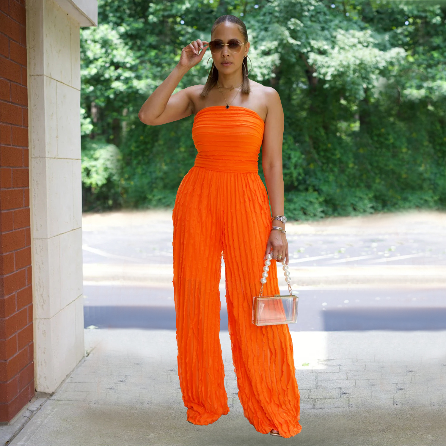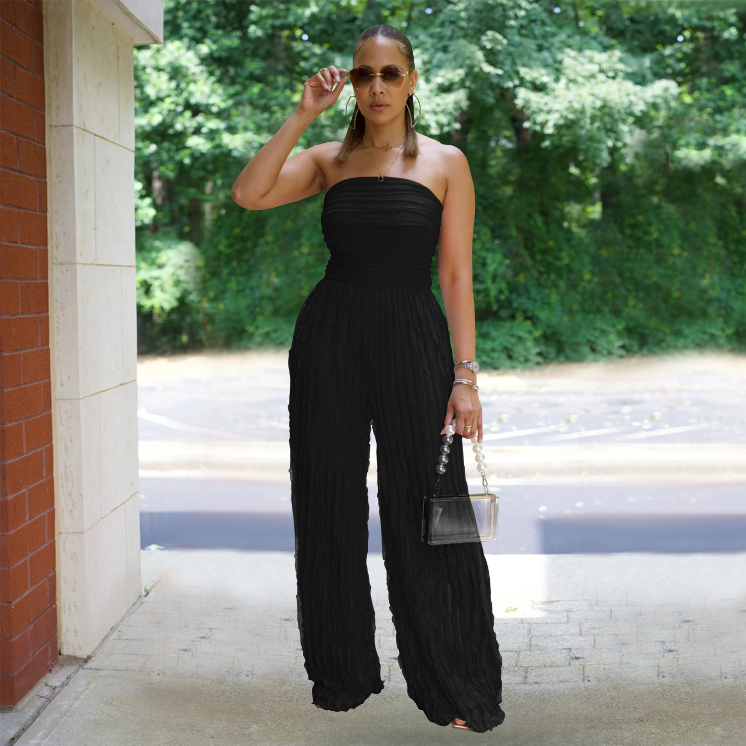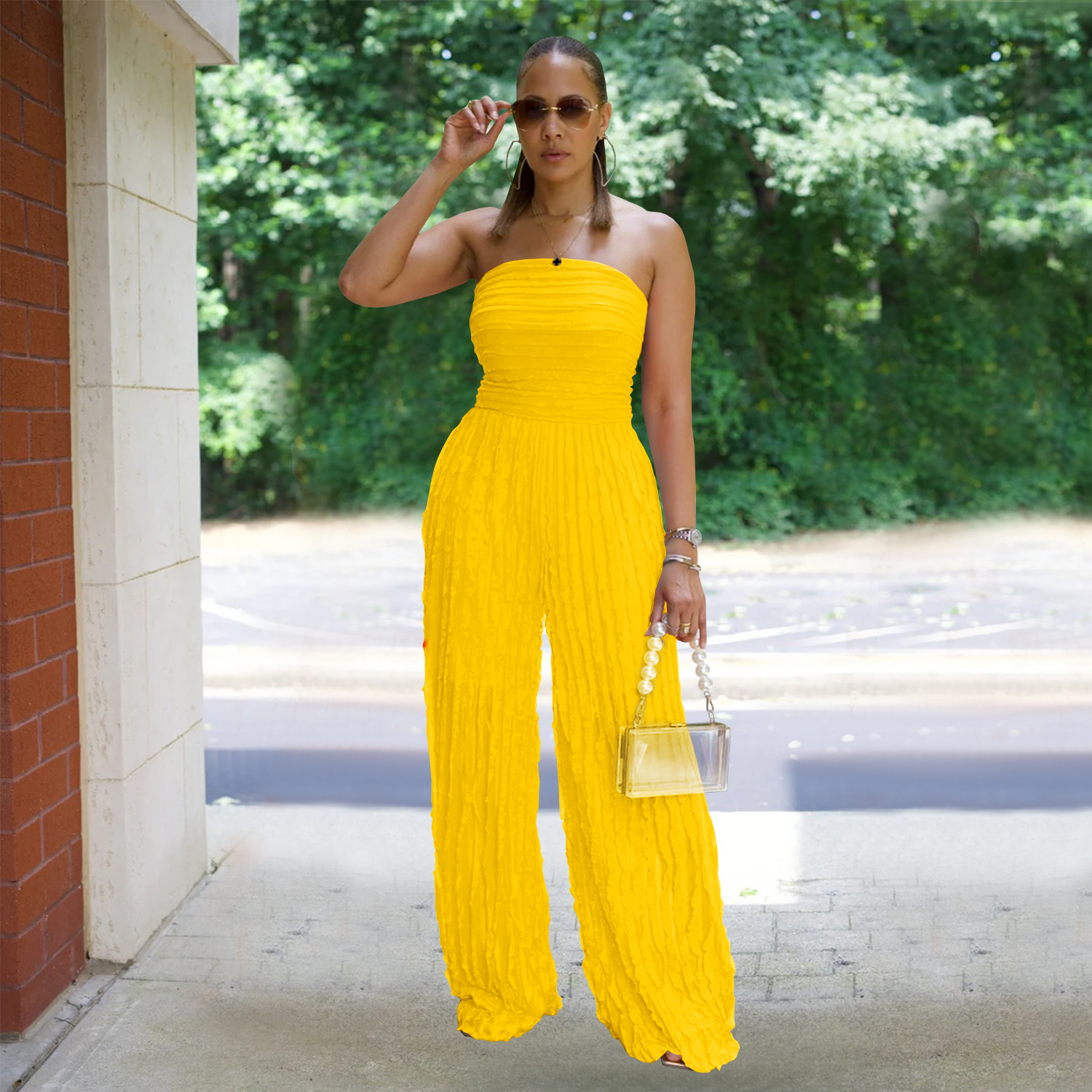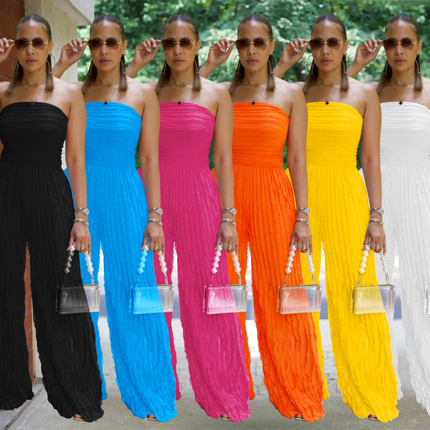 This Women Solid Casual Wave Pattern Jumpsuit Design Made Of High Quality Polyster And Spandex Material. It Is Stretchy, Durable And Comfortable. Affordable Sexy Jumpsuits For Women Has Long Been a Party Favorite. BamBam provides a Rich selection Of Sequin, Beaded, See Through Mesh, Leopard, Floral Lace, Leather, Velvet, Tight And Fitted retail Jumpsuit Without Moq Limit.