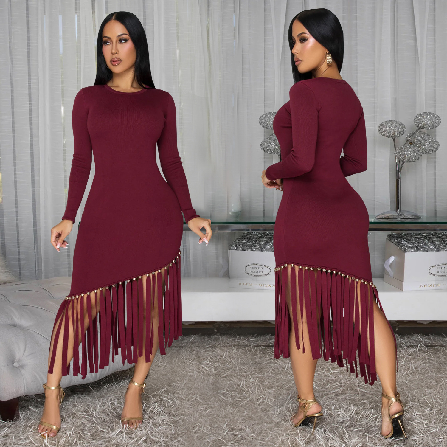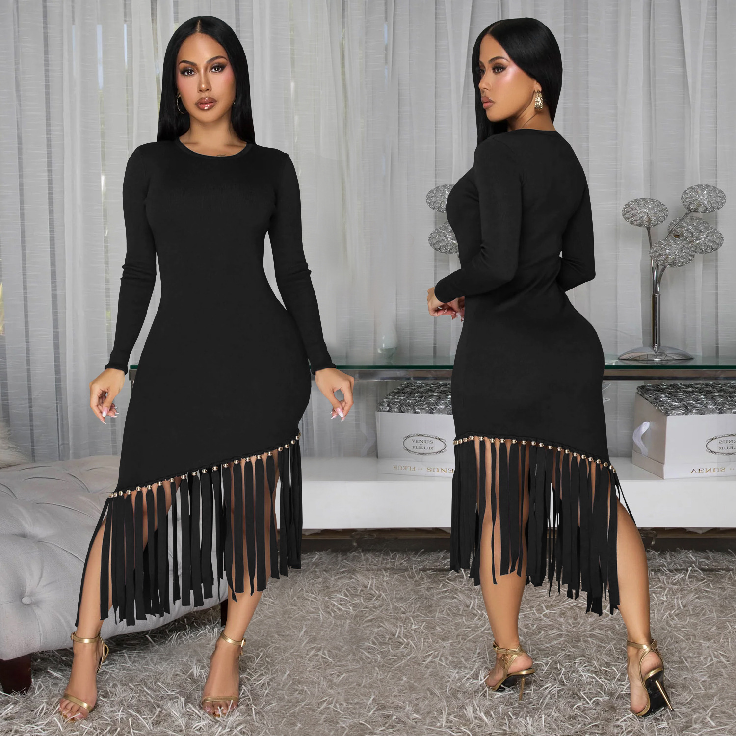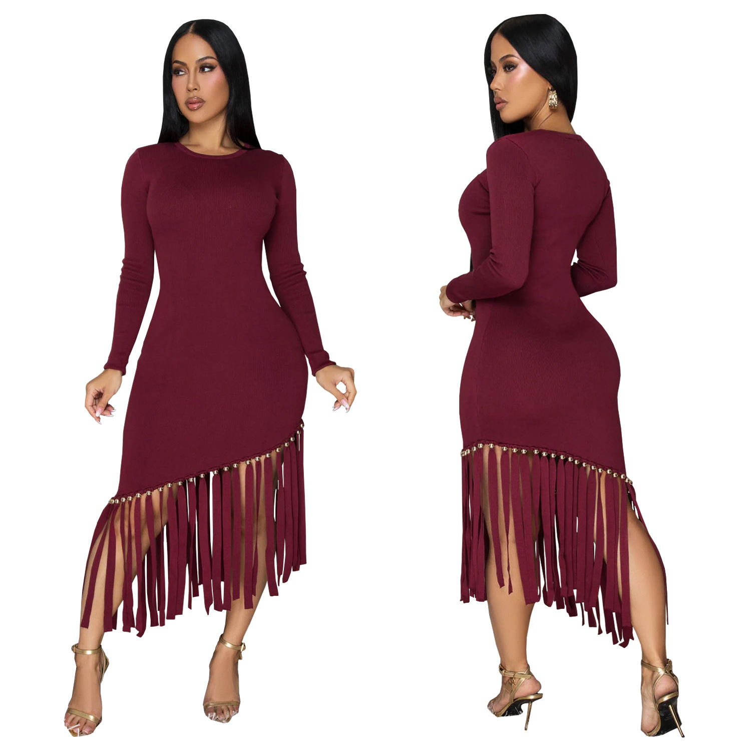 This Women Solid Round Neck Tassel Dress Design Made Of High Quality polyester And Spandex Material. It's nice and stretchy, feels and wears comfortably on your body. Women’s Midi dresses suits all Kinds Of Occasions - Daily Wear, Go To The Church, Commuting And Events Occasion. Midi Dresses can't be Boring, Find Best Midi Dresses At BamBam With Trendy Styles.