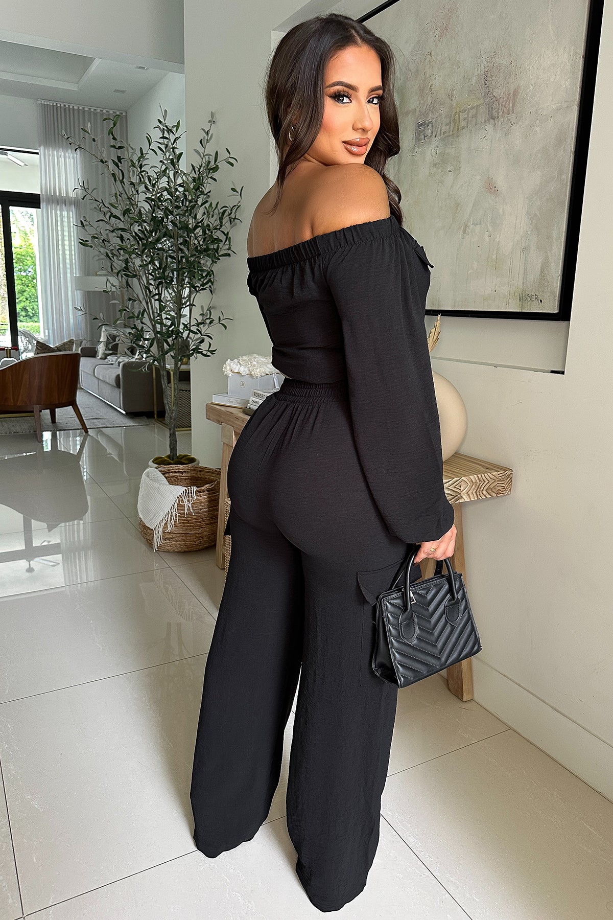 This Women Solid Sexy Off Shoulder Long-Sleeved Top And Wide-Leg Pants Two-Piece Set Design Made Of High Quality polyester And Spandex Material. It Is Stretchy, Durable And Comfortable. It Is a Must-Have Outfit For All Seasons. retail Two Piece Pant Sets Can Solve Your cloth selection Troubles. Explore More 2 Piece Pants Set On BamBam retail Women Clothing Online Store.