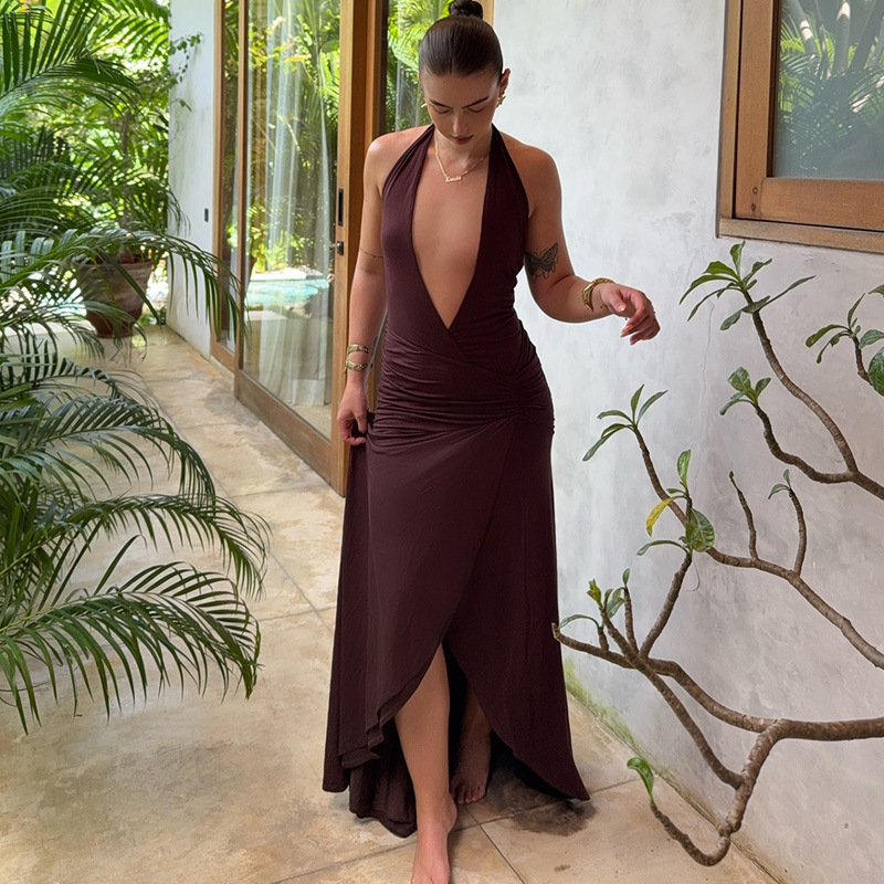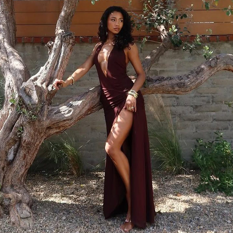 This Women Solid Sexy v Neck Sleeveless Hollow Slit Halter Neck Dress Design Made Of High Quality polyester And Spandex Material, Which Is Stretchy, Soft And Comfortable. It's Always On Trend. This Casual Maxi Dresses Is a Must-Have For Vocations And Dating Occasions. Maxi Dresses At BamBam Comes With Huge Selections Of Colors, Sizes, Material, And Designs. When You Need retail affordable Maxi Dresses, You Can Always Find Vary Collection And No Moq On Our retail Women Fashion Online Store.