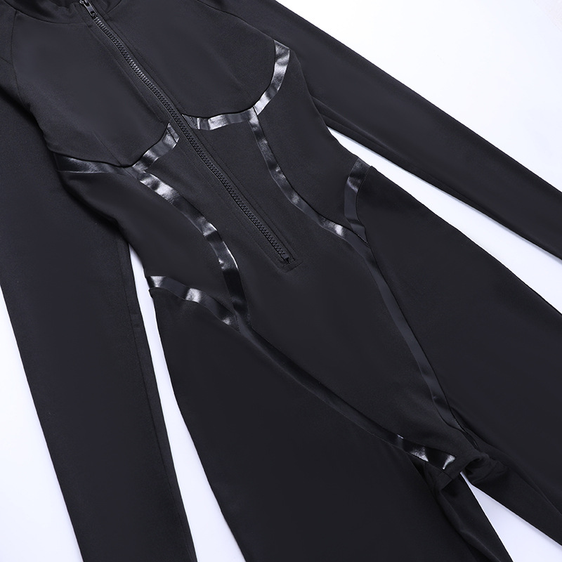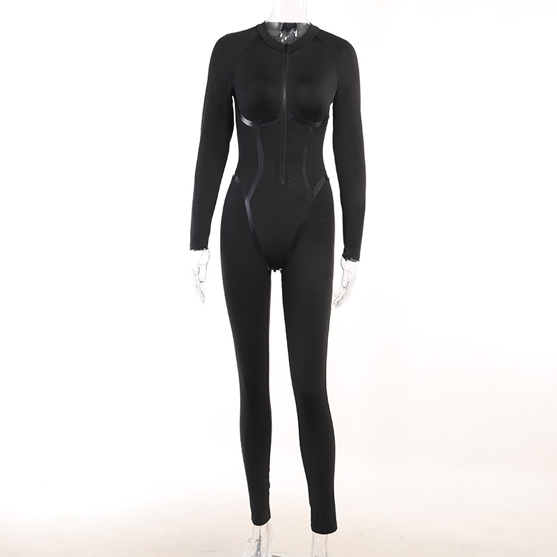 This Women Sport Leather Web Long Sleeve Zipper Butt Lift Jumpsuit Design Made Of High Quality Polyster And Spandex Material. It Is Stretchy, Durable And Comfortable. Affordable Sexy Jumpsuits For Women Has Long Been a Party Favorite. BamBam provides a Rich selection Of Sequin, Beaded, See Through Mesh, Leopard, Floral Lace, Leather, Velvet, Tight And Fitted retail Jumpsuit Without Moq Limit.