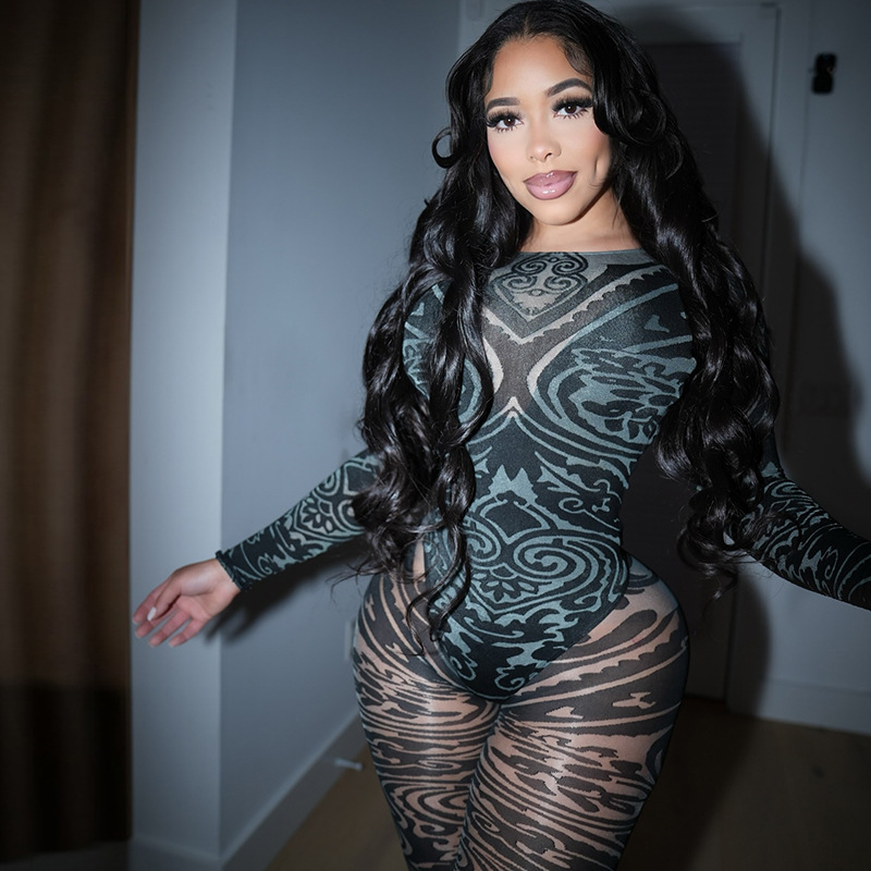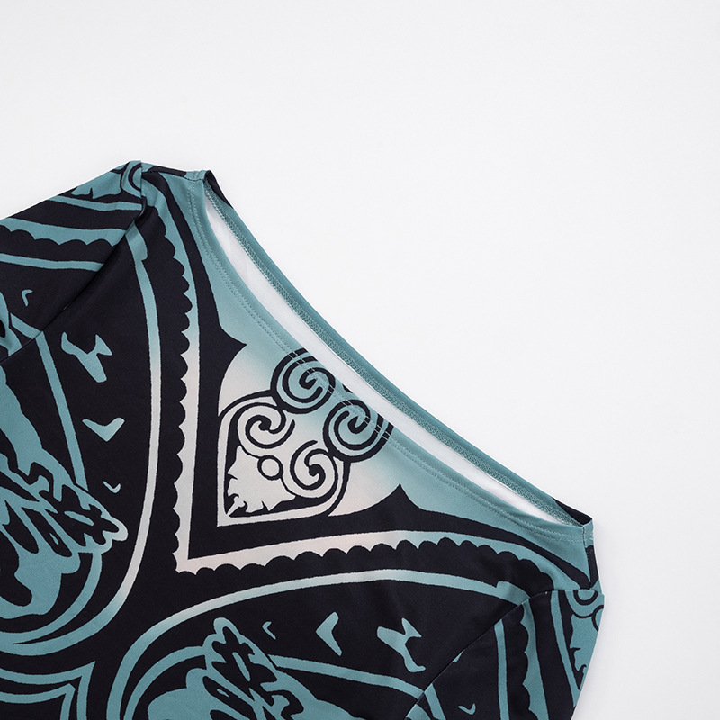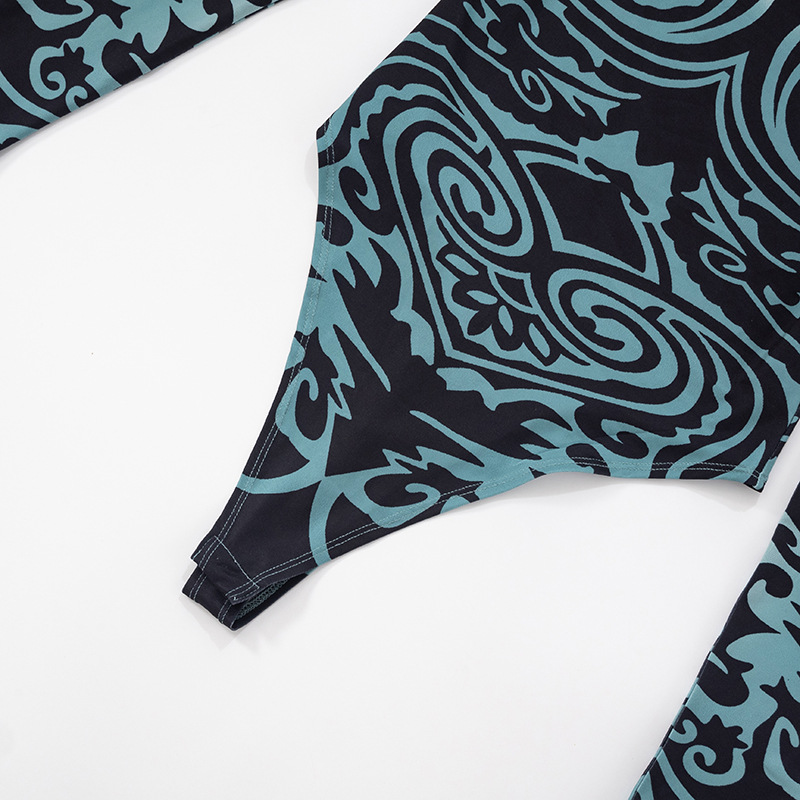 This Women Spring And Summer Off Shoulder Printed Long Sleeve Bodysuit Mesh See-Through Two-Piece Set Design Made Of High Quality polyester And Spandex Material. It Is Stretchy, Durable And Comfortable. It Is a Must-Have Outfit For All Seasons. retail Two Piece Pant Sets Can Solve Your cloth selection Troubles. Explore More 2 Piece Pants Set On BamBam retail Women Clothing Online Store.