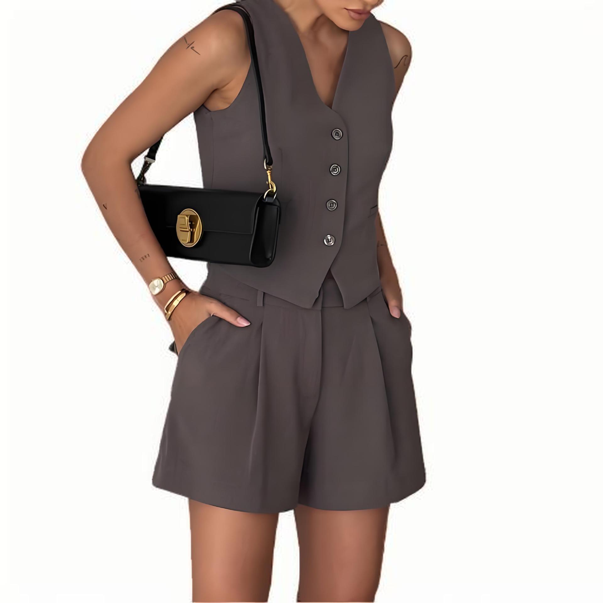 This Women Spring Solid Sleeveless v-Neck Tank Top And Shorts Two-Piece Set Design Made Of High Quality polyester And Spandex Material. It Is Stretchy, Durable And Comfortable. It Come With The Top And Shorts. retail Short Sets Saves Some People From The Trouble Of Matching. And For Matchmakers It Is More Flexible Than One-Piece Outfit. Two Piece Short Set Can Be Worn Together Or Individually, Ladies Can Match Them According To Different Occasions. Grab Different Two Piece Short Sets For This Spring And Summer.